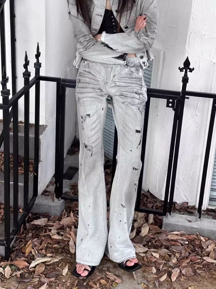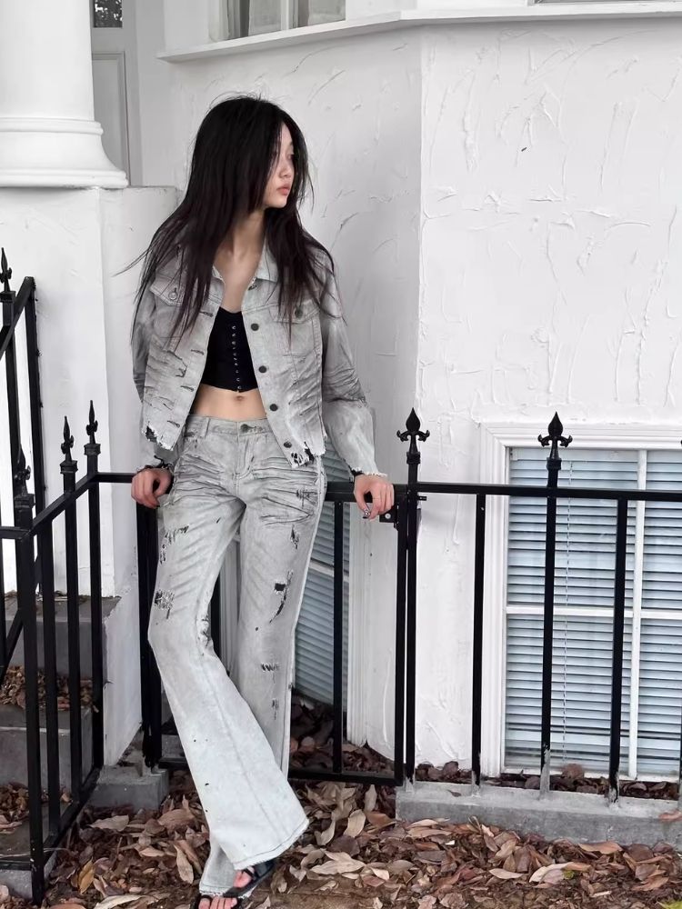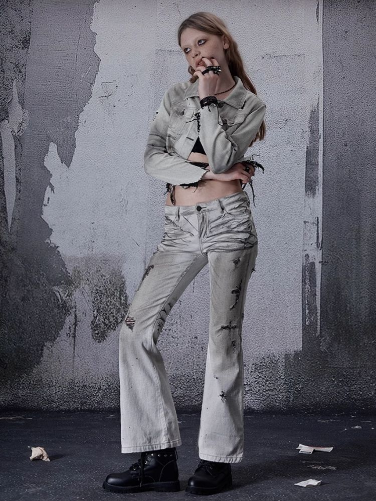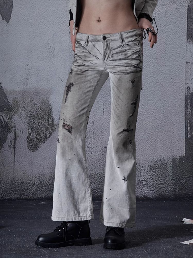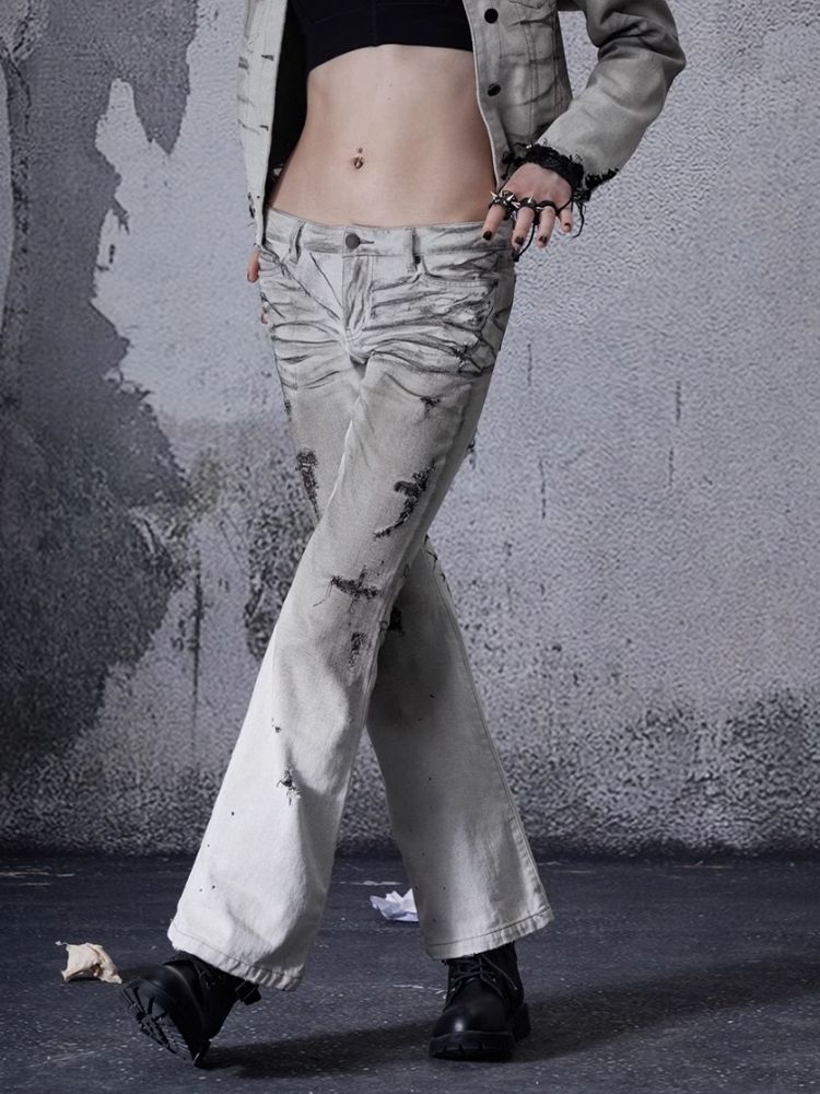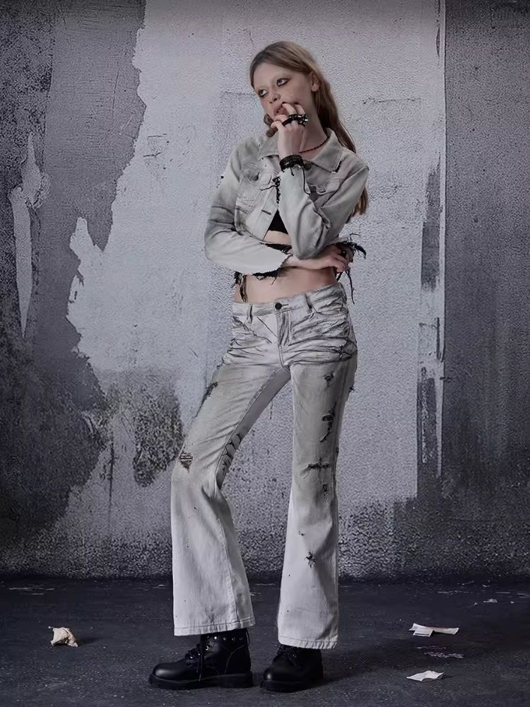 Low-rise wide-legged bare-ear jeans【s0000006693】