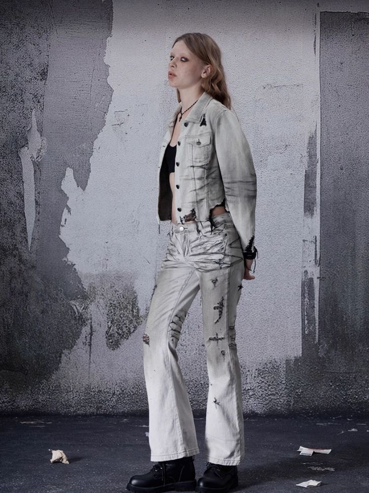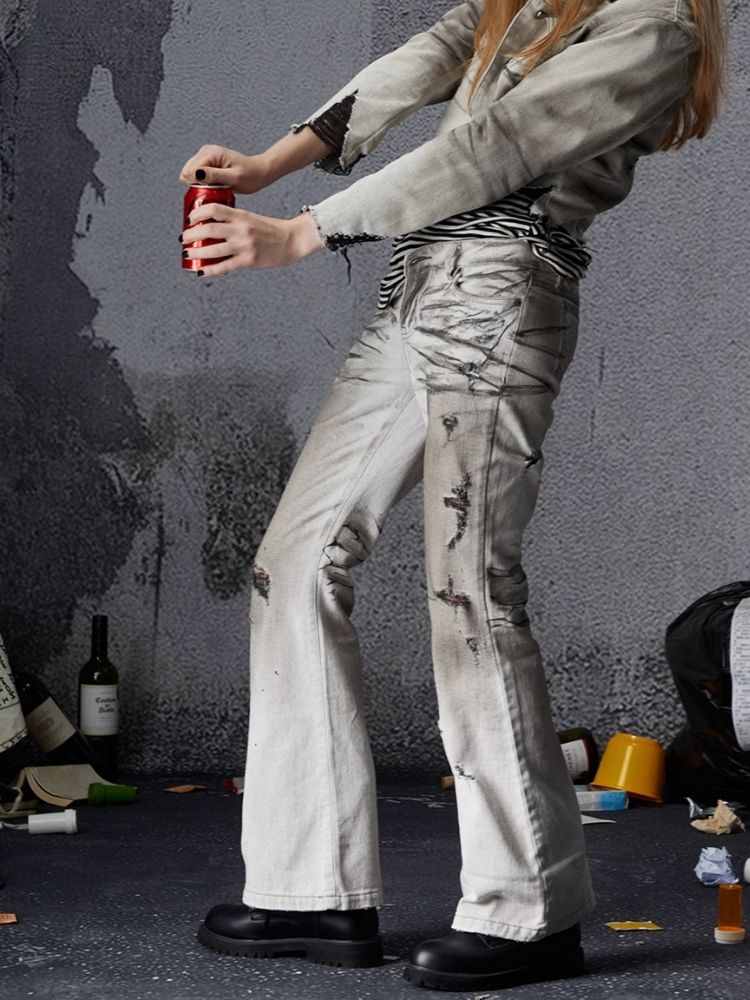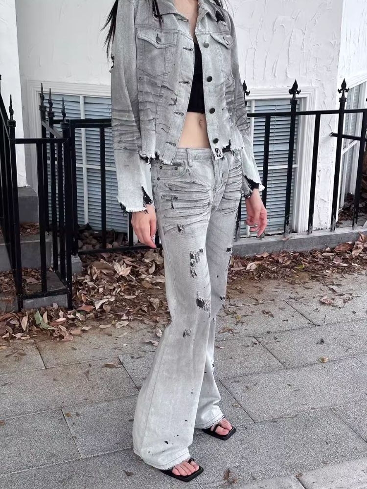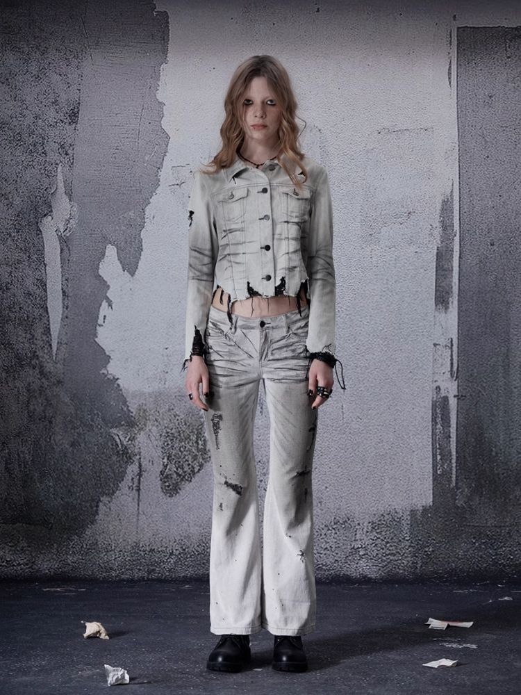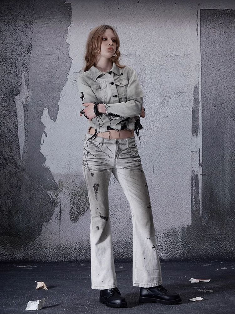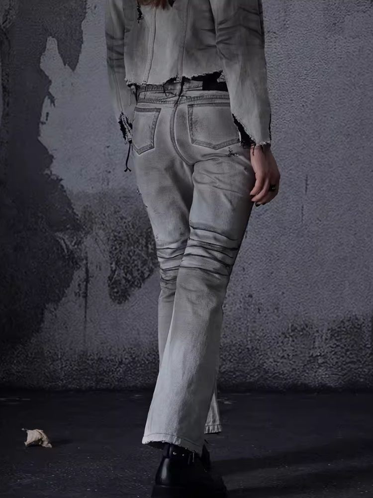 Low-rise wide-legged bare-ear jeans【s0000006693】