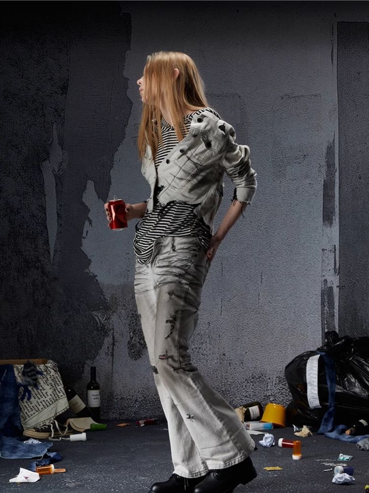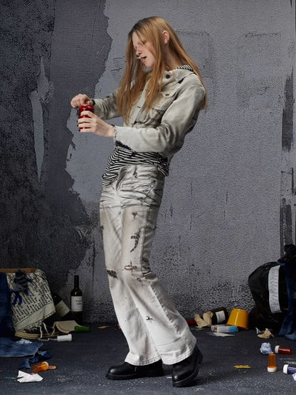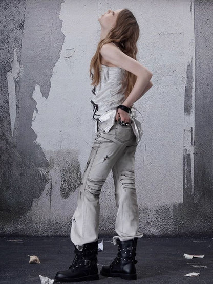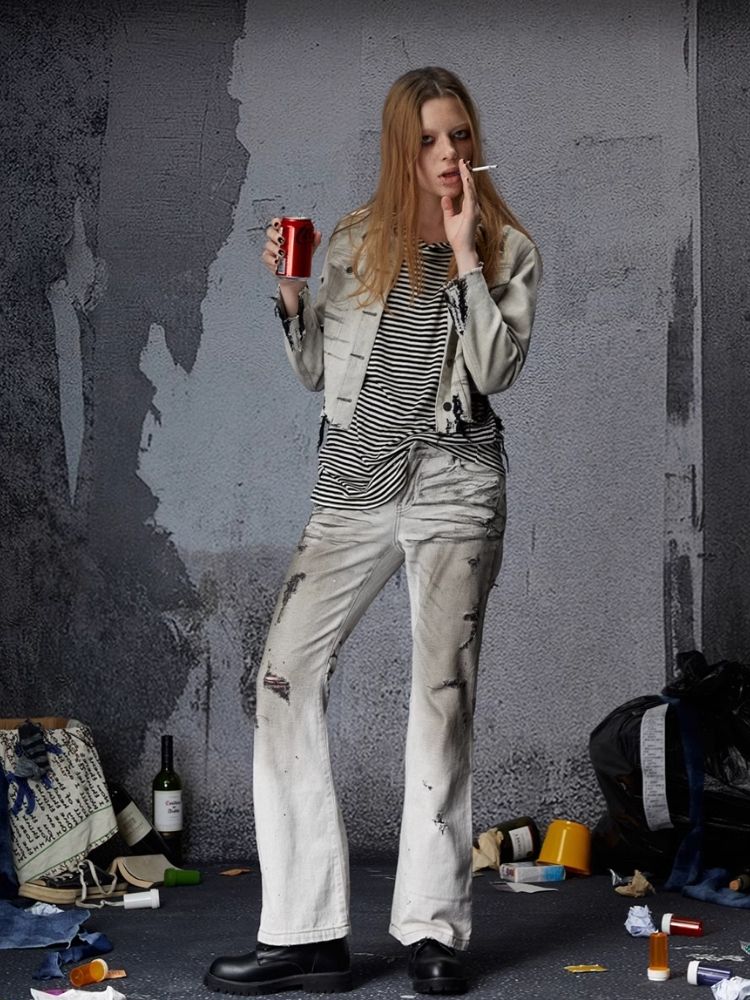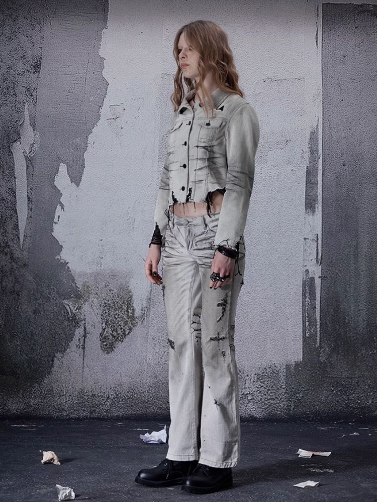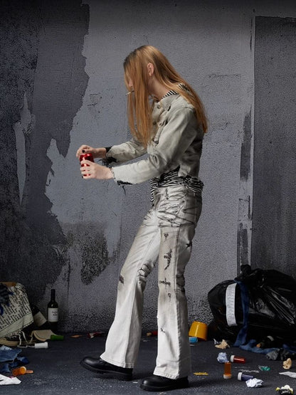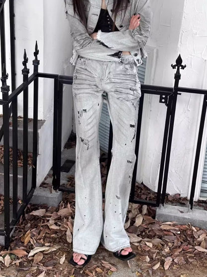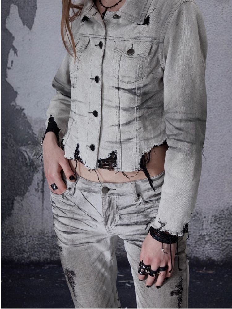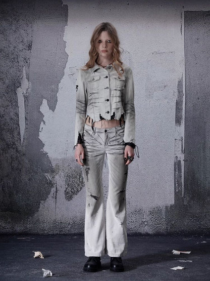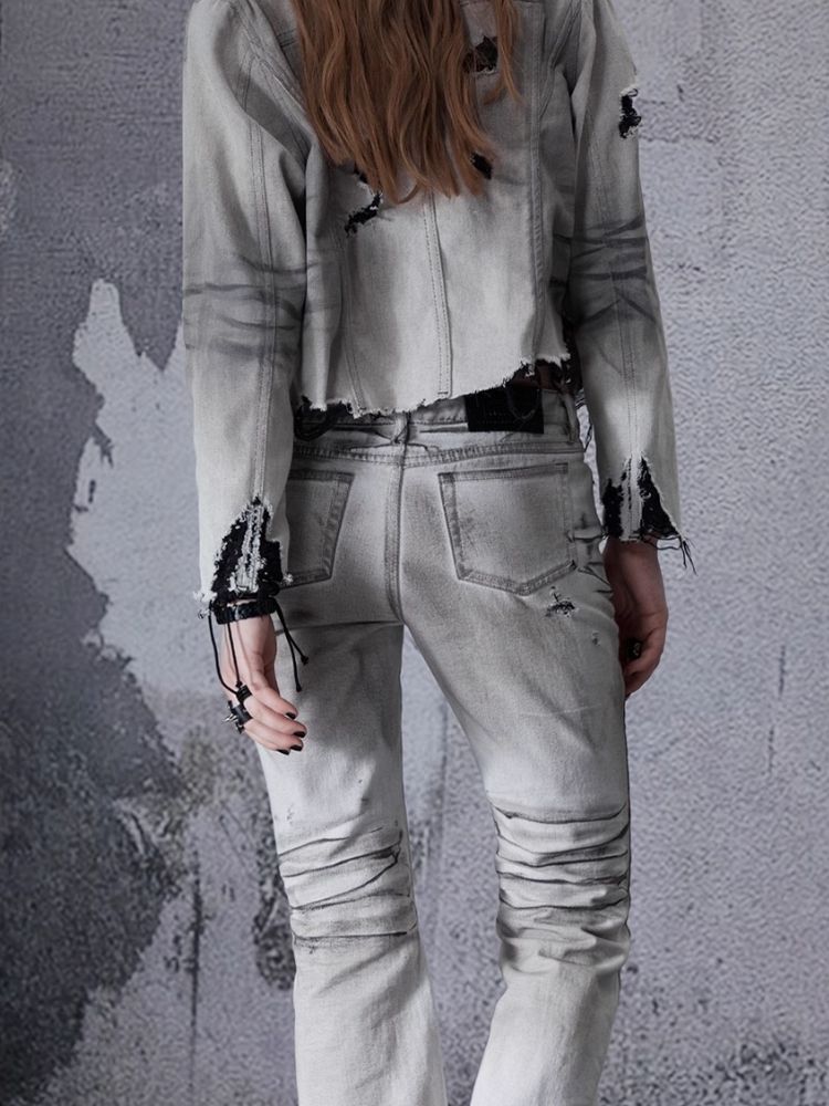 Low-rise wide-legged bare-ear jeans【s0000006693】