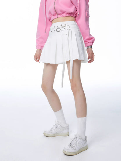 College style white pleated skirt【s0000006725】