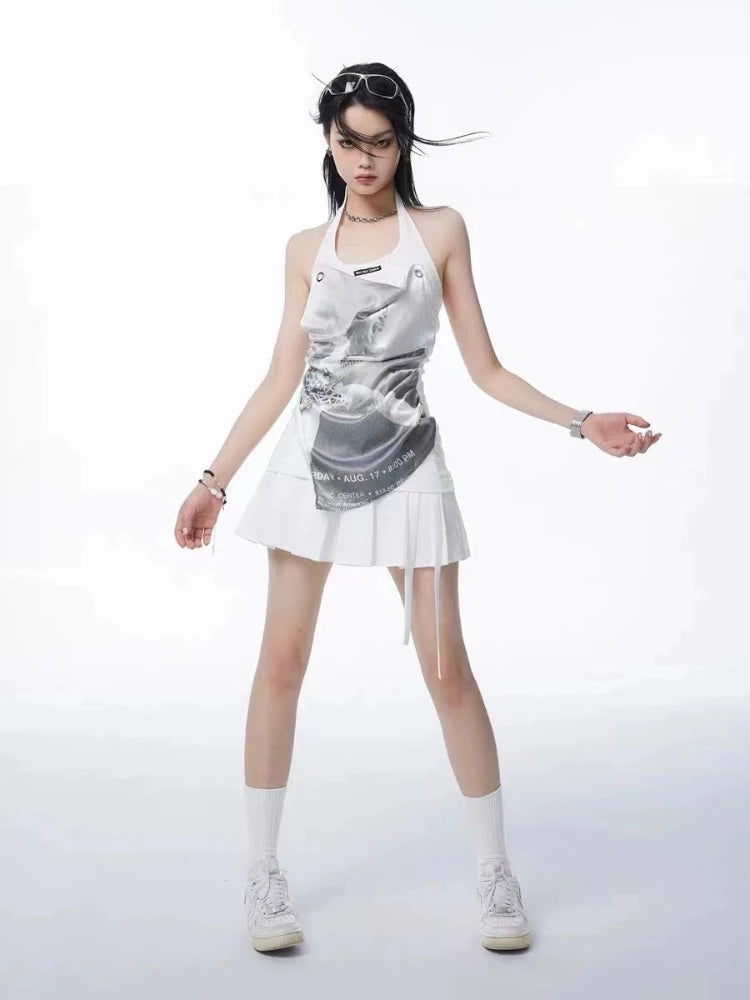 Hot Girl Suspender Skirt + Pleated Skirt + Shirt【s0000006726】