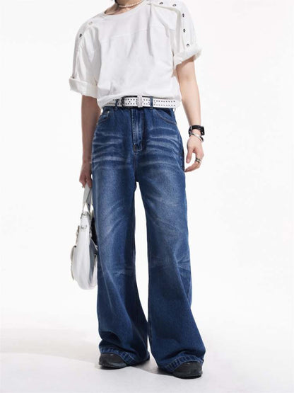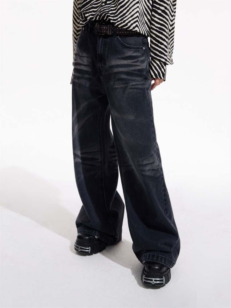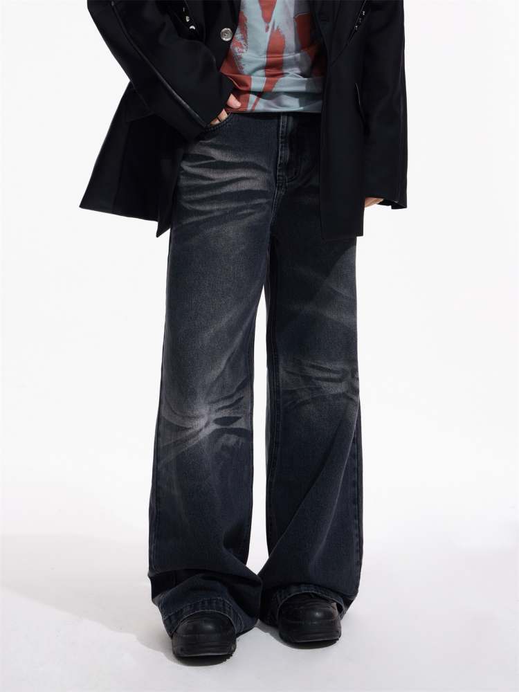 Wrinkle Processing Wide Washed Jeans【s0000006729】