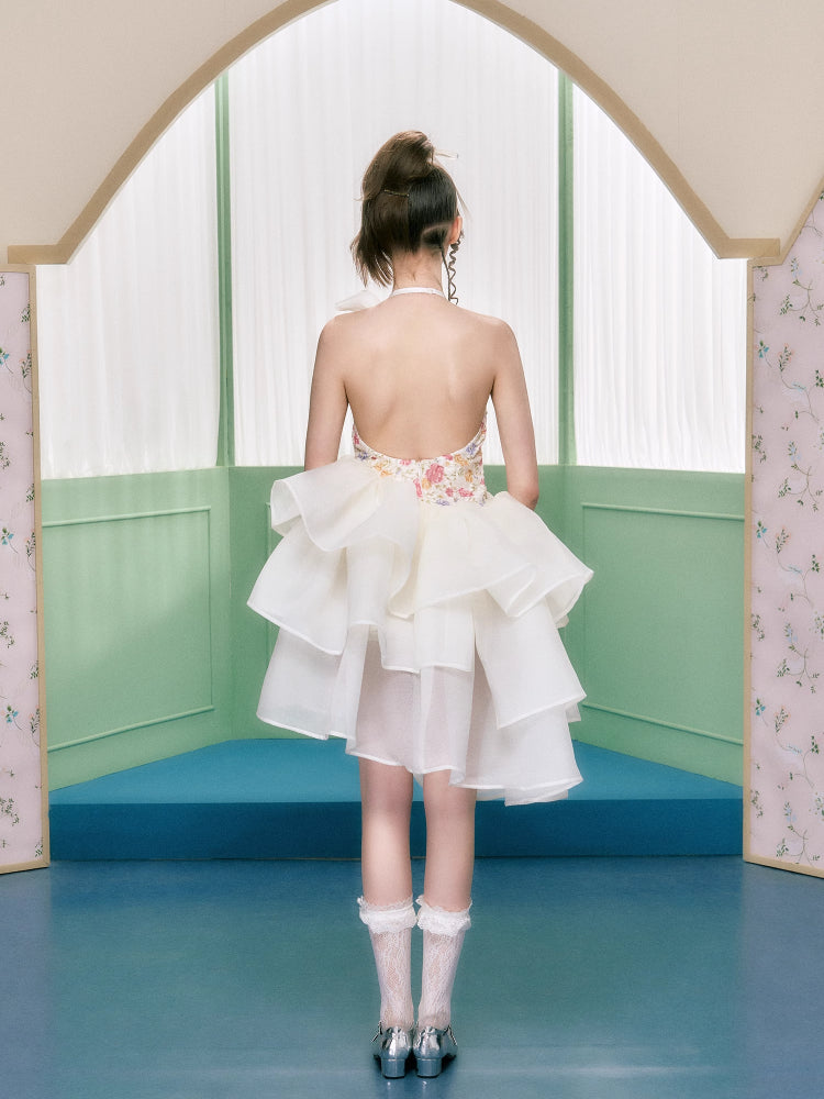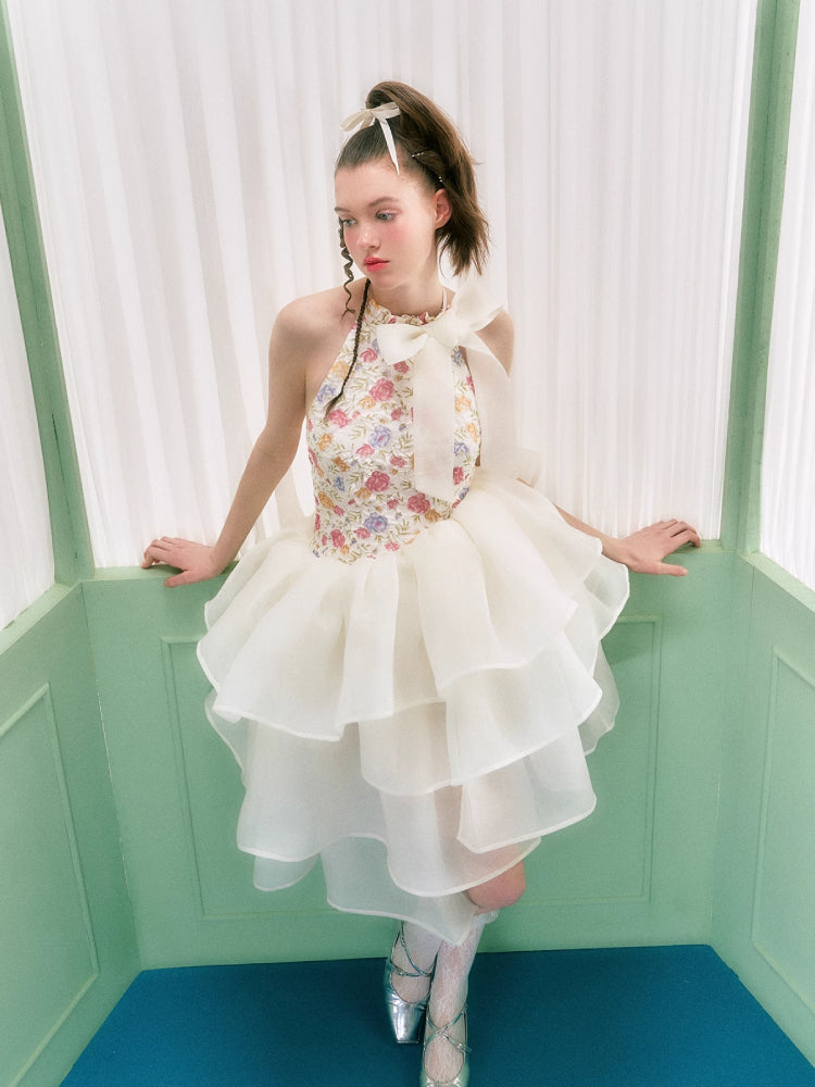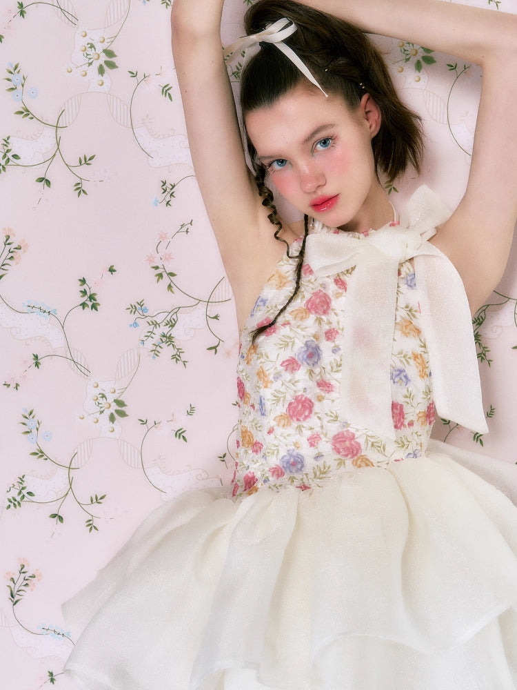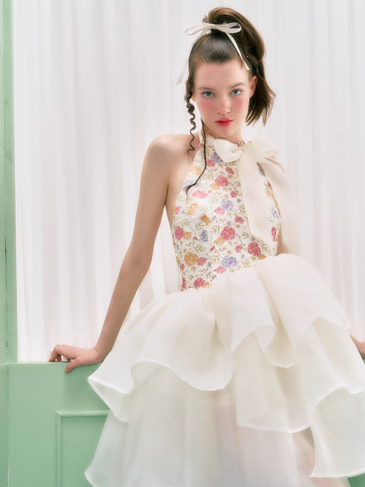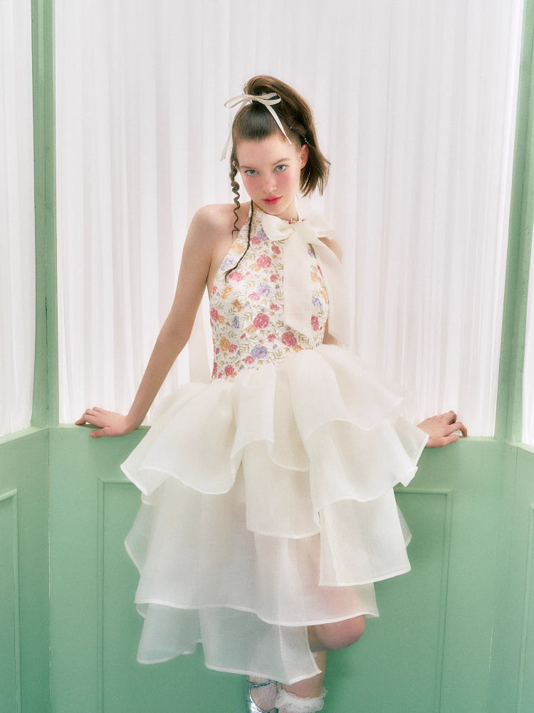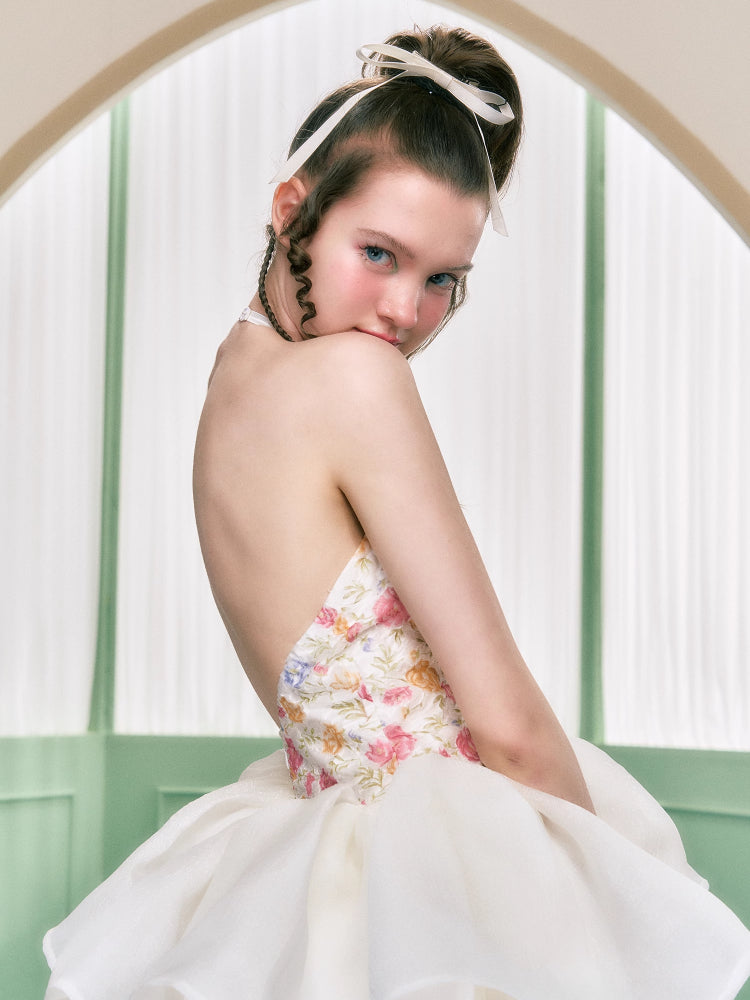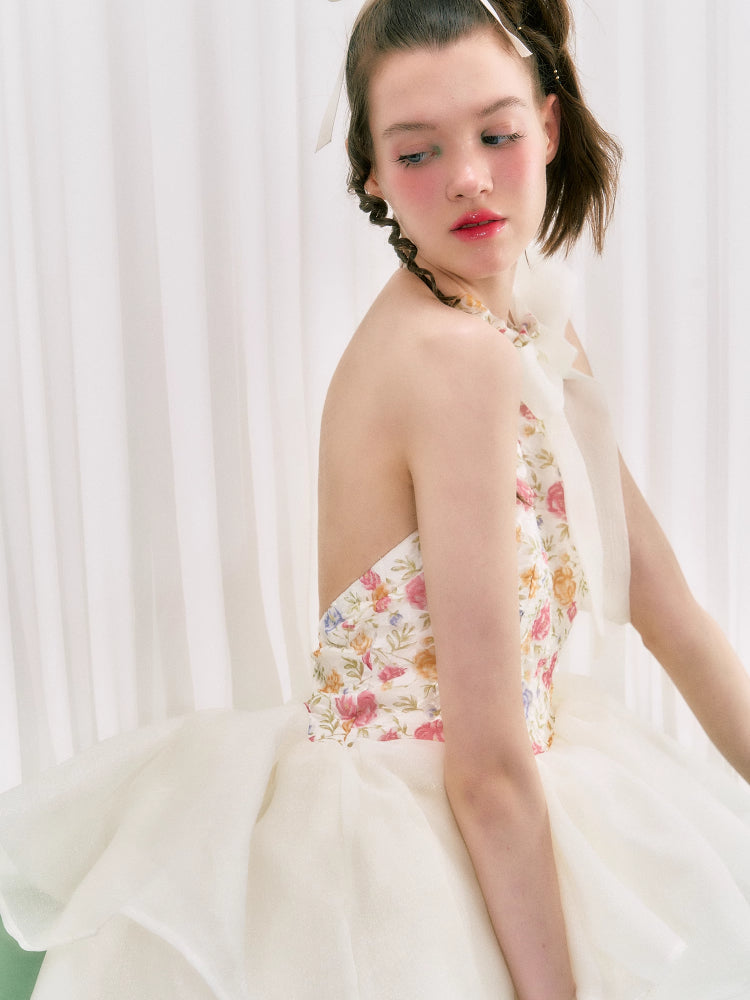 Floral halter neck dress【s0000006763】