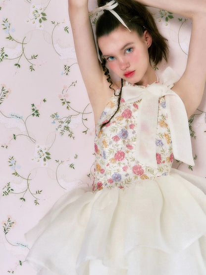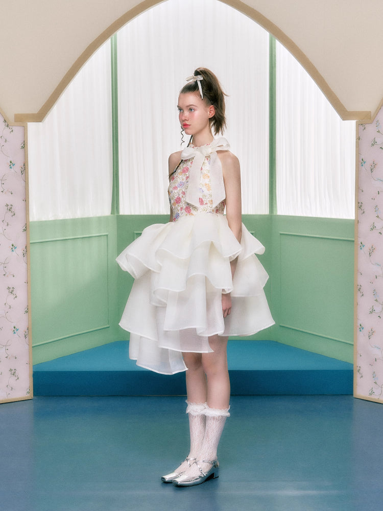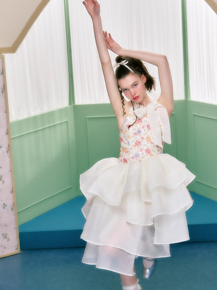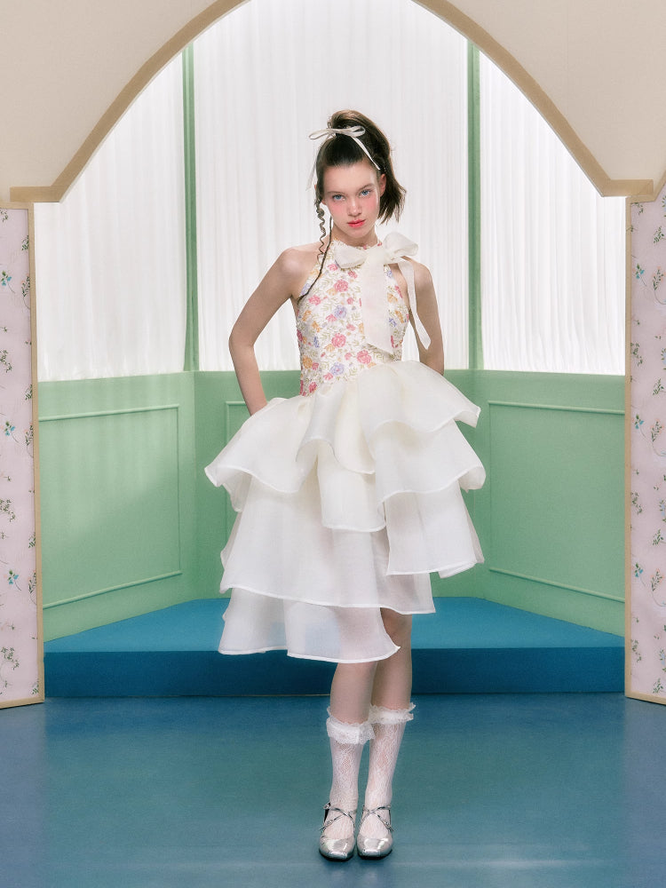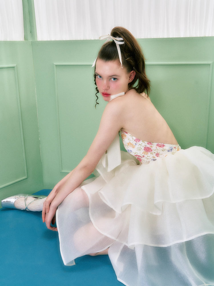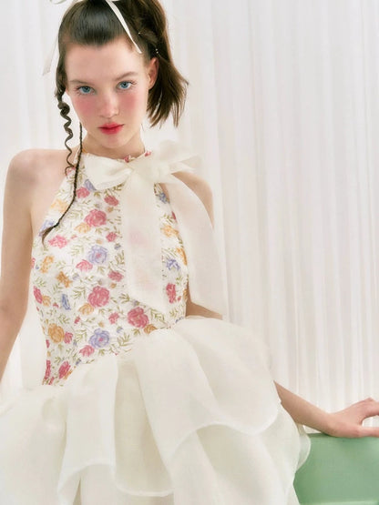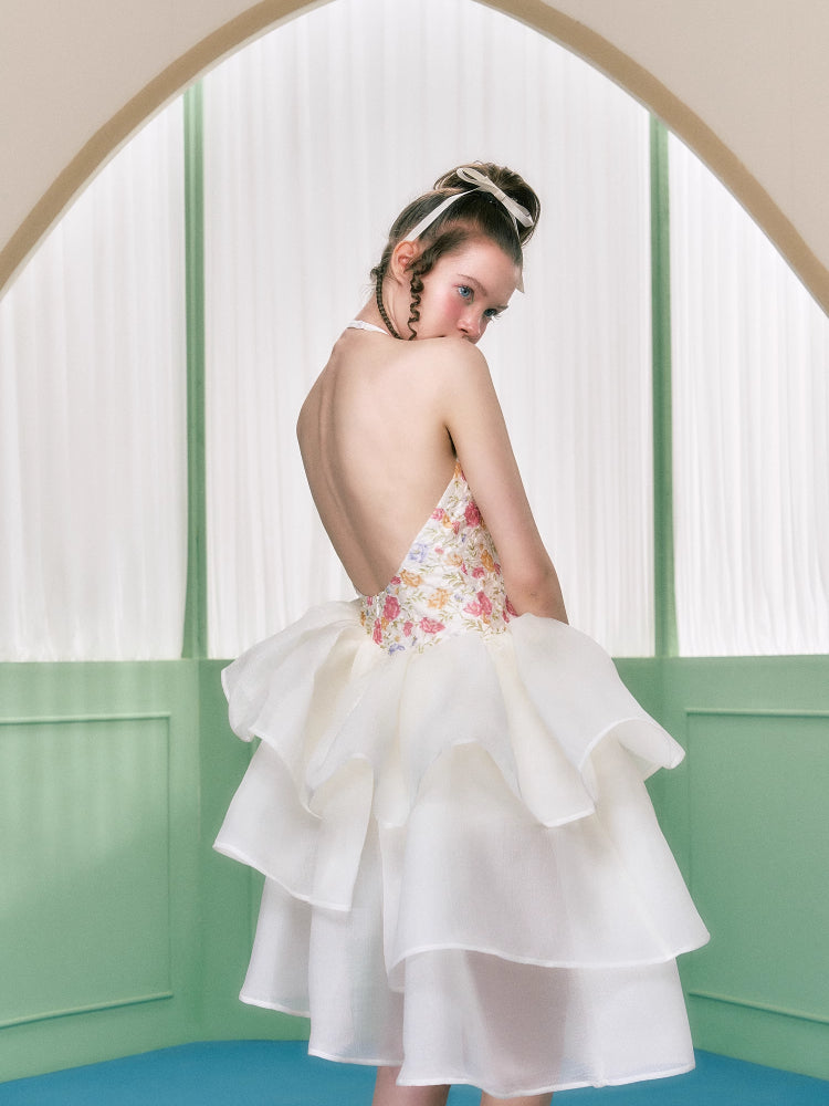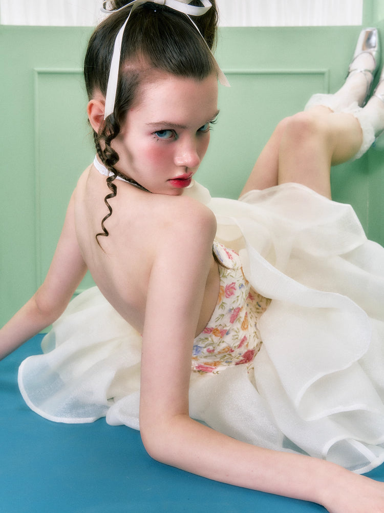 Floral halter neck dress【s0000006763】