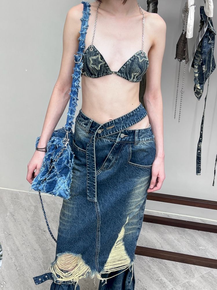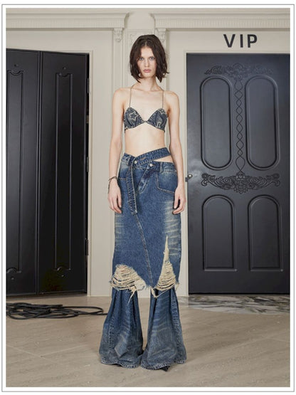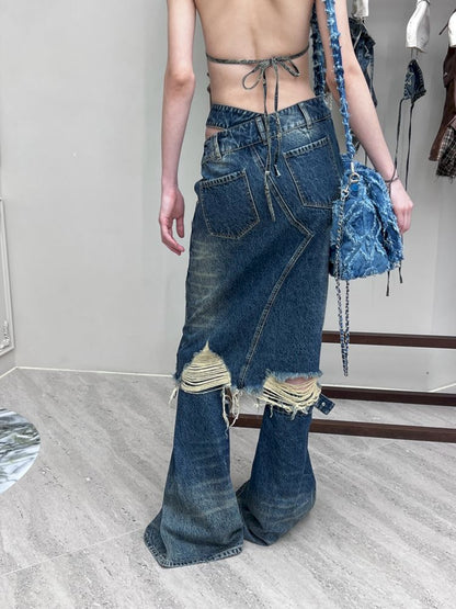 Washed Old Vintage Women's Half Skirt【s0000006805】