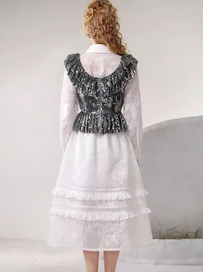 Heavy beaded vest hollowed embroidery dress【s0000006820】
