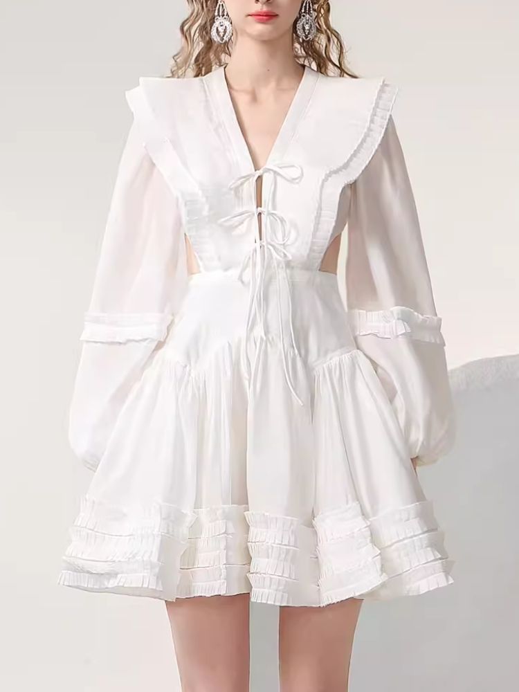 Lantern Sleeve Hollow Out Strappy Dress【s0000006822】