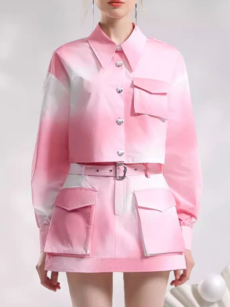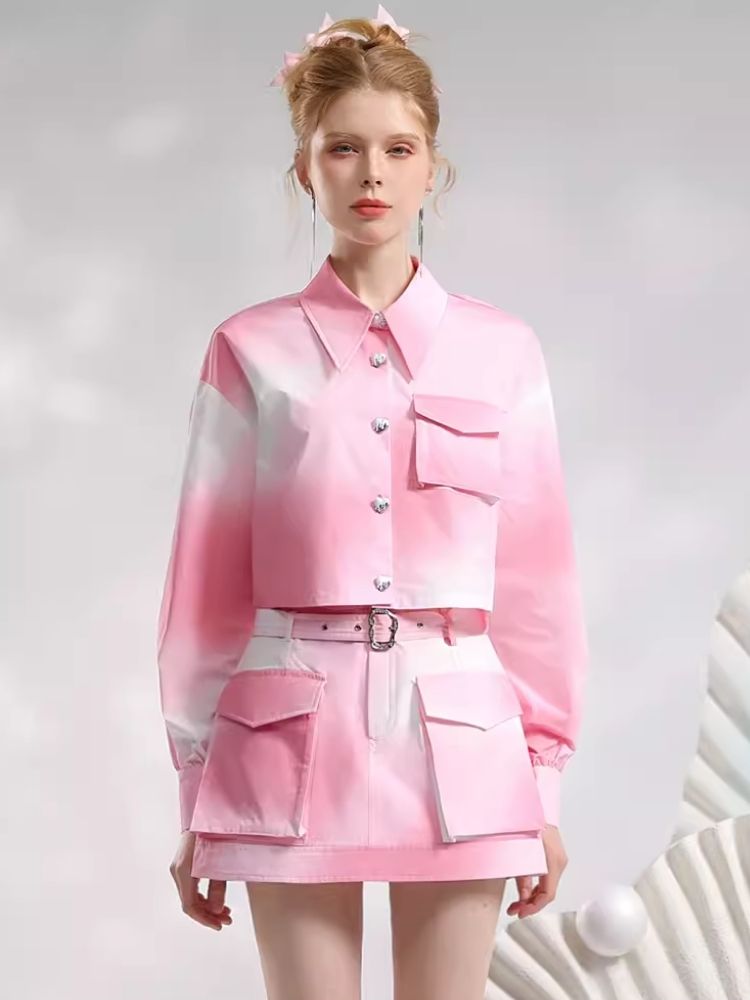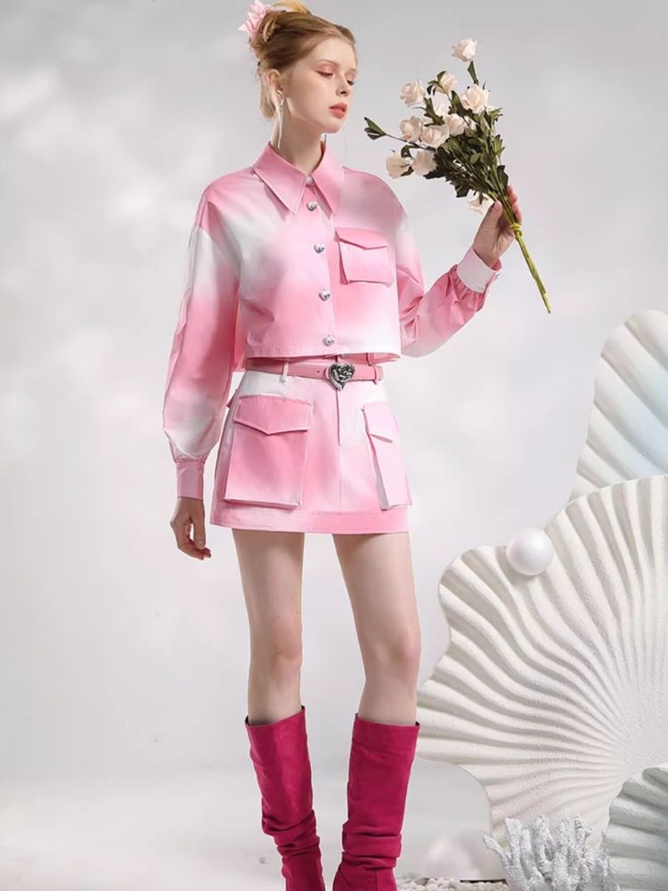 Gradient Pink Printed Pocket Short Jacket【s0000006829】