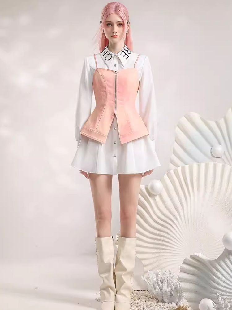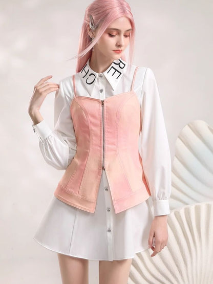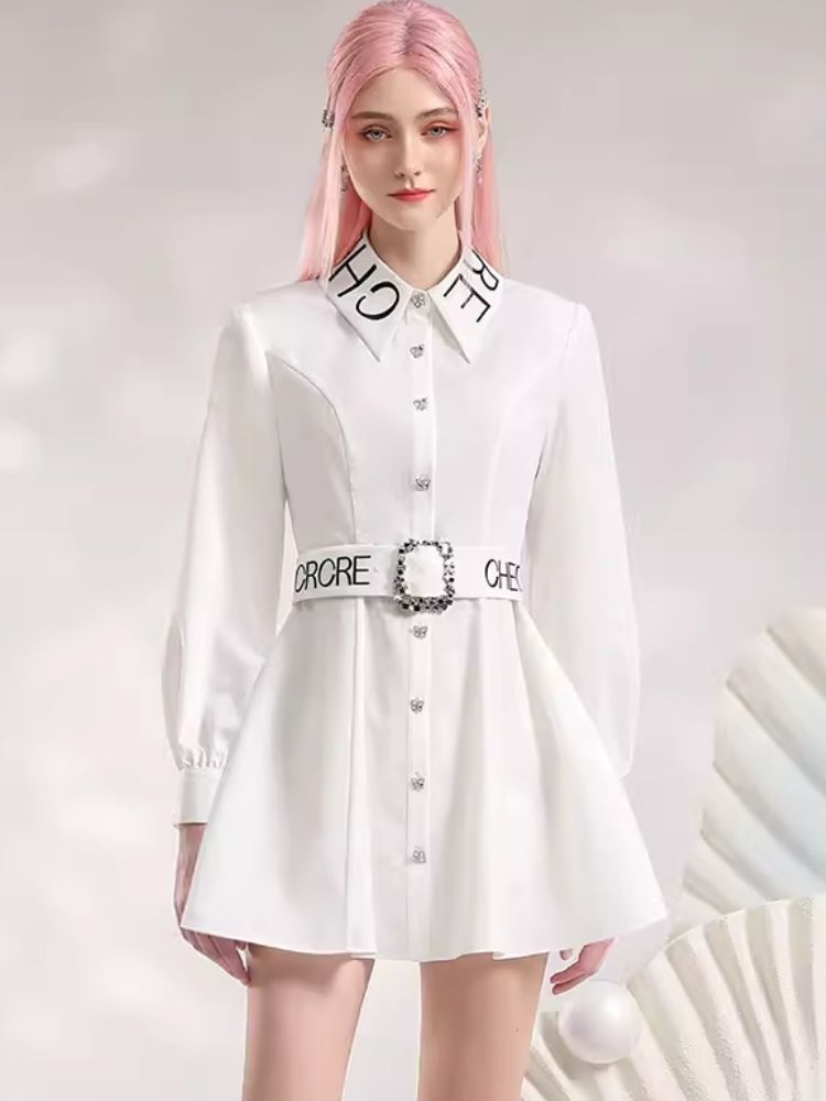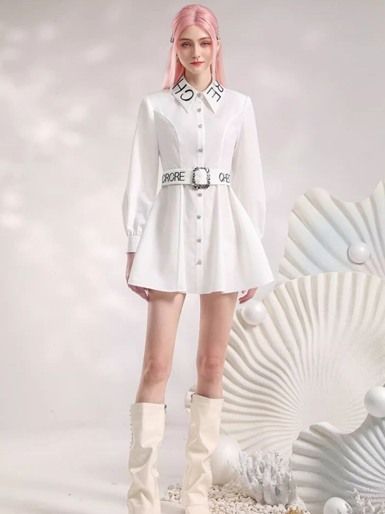 Halter Inner Long Sleeve Shirt Dress【s0000006837】