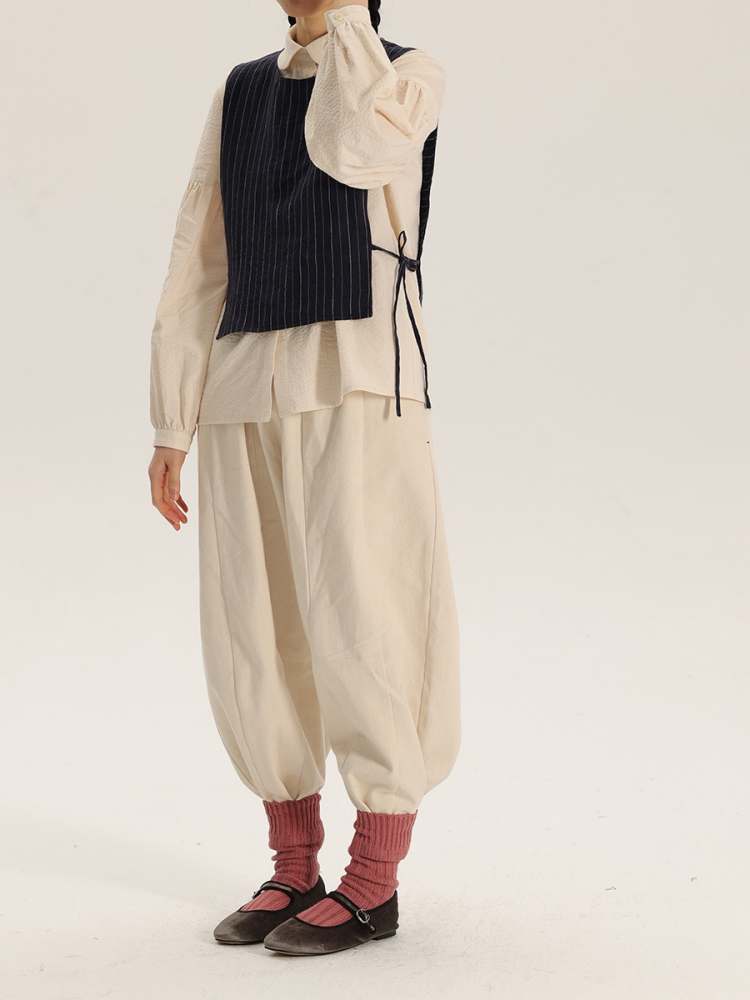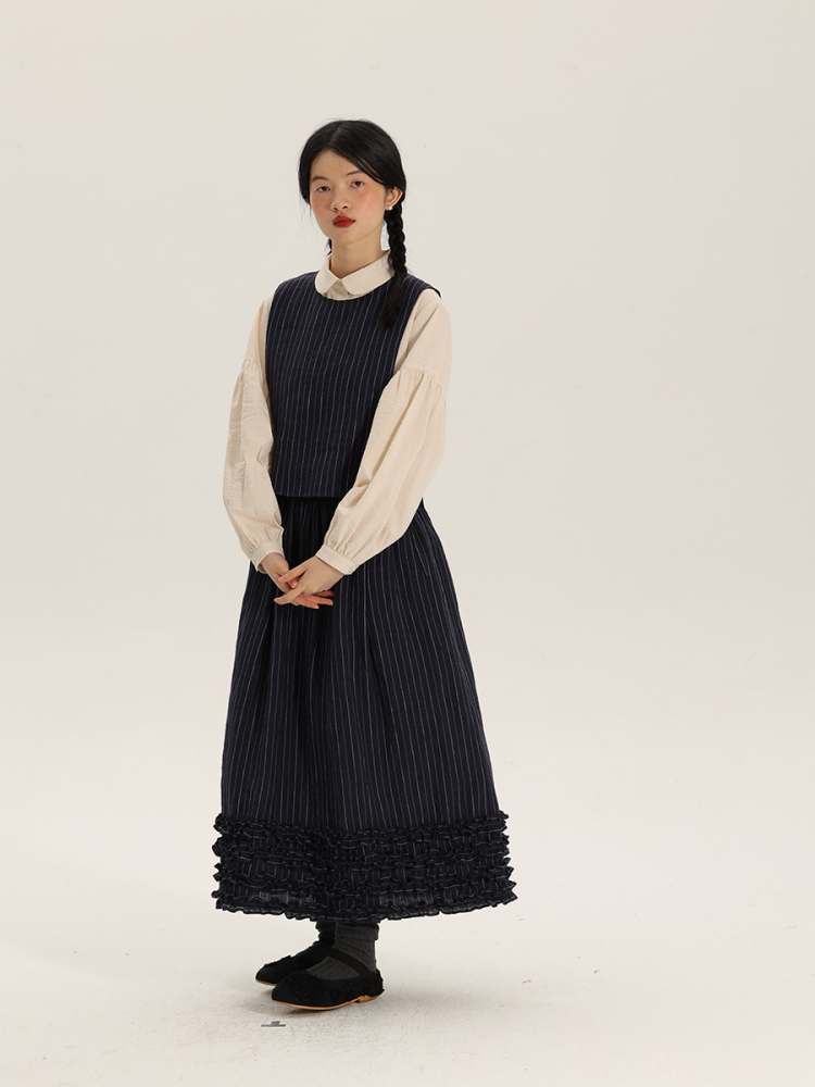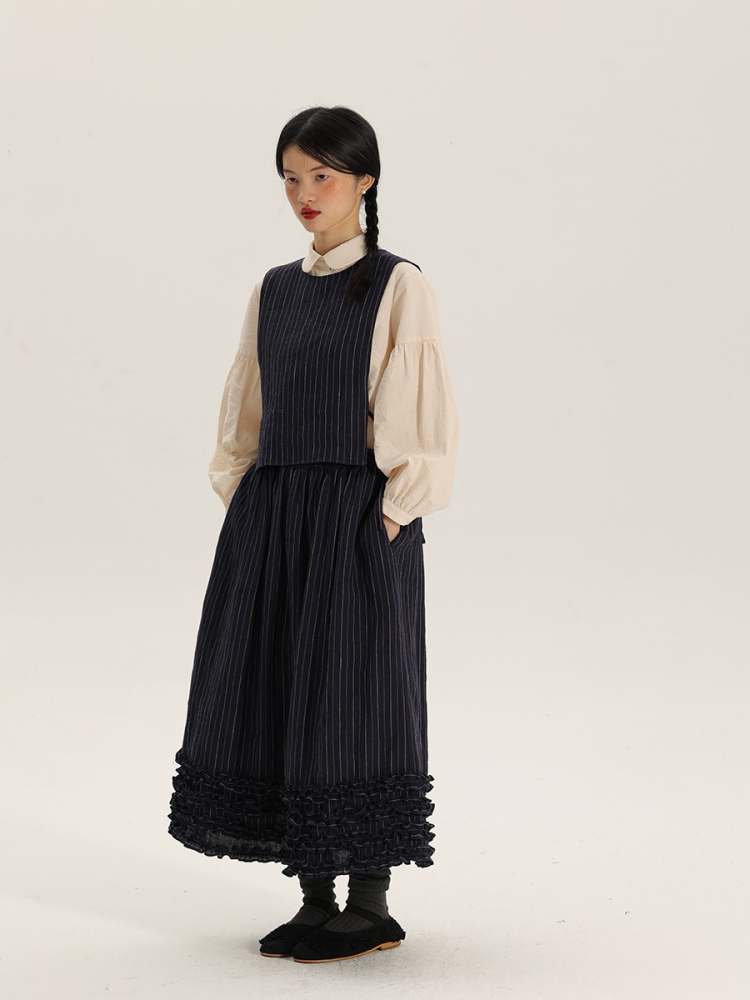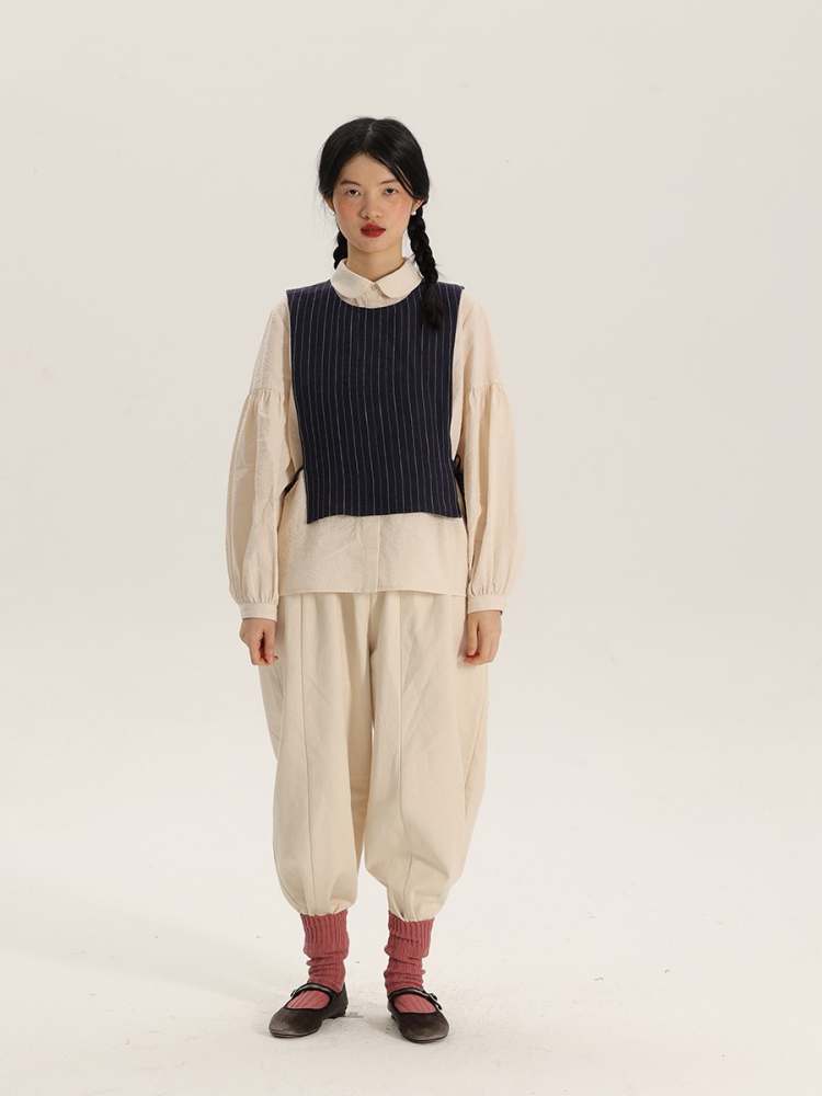 Retro Round Neck Stripe Linen Vest【s0000006902】