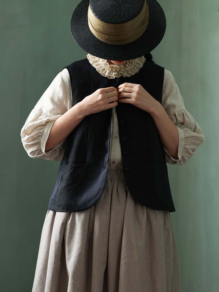 Yarn-Dyed Pocket Button Vest【s0000006907】