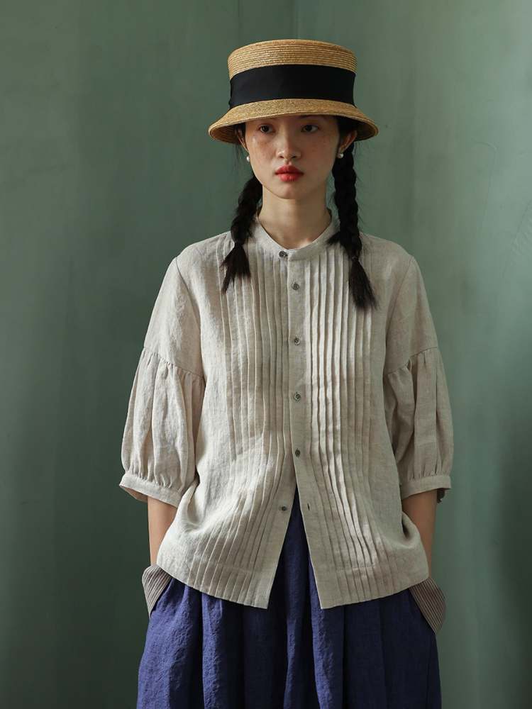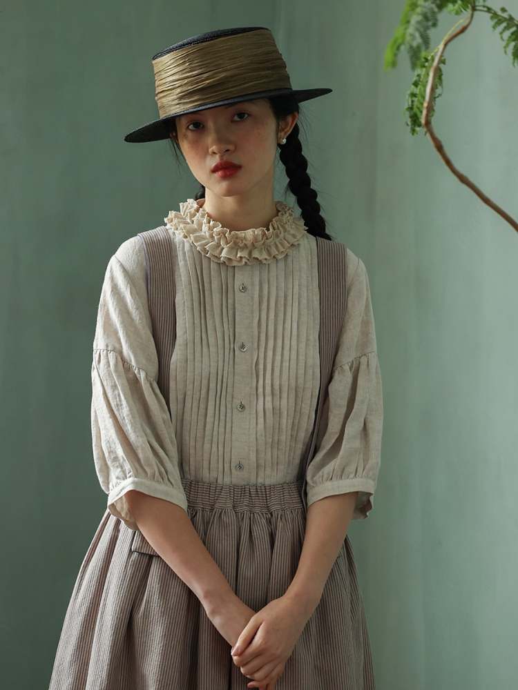Retro Pleated Collar Loose Shirt【s0000006911】