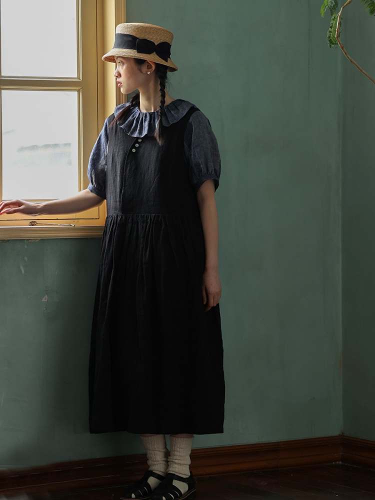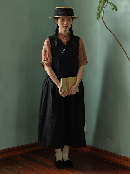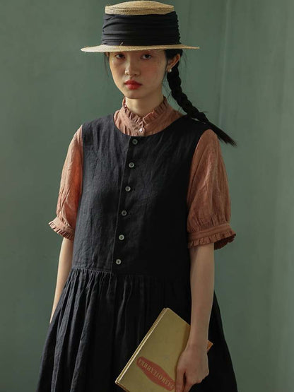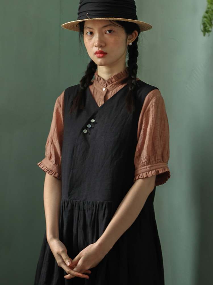 Retro 2way Sleeveless Linen Long Dress【s0000006914】