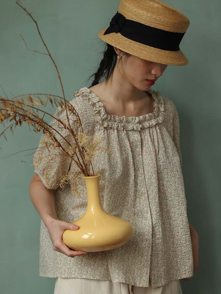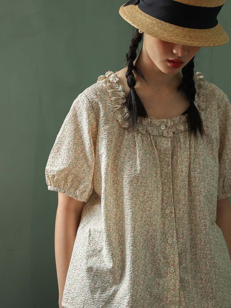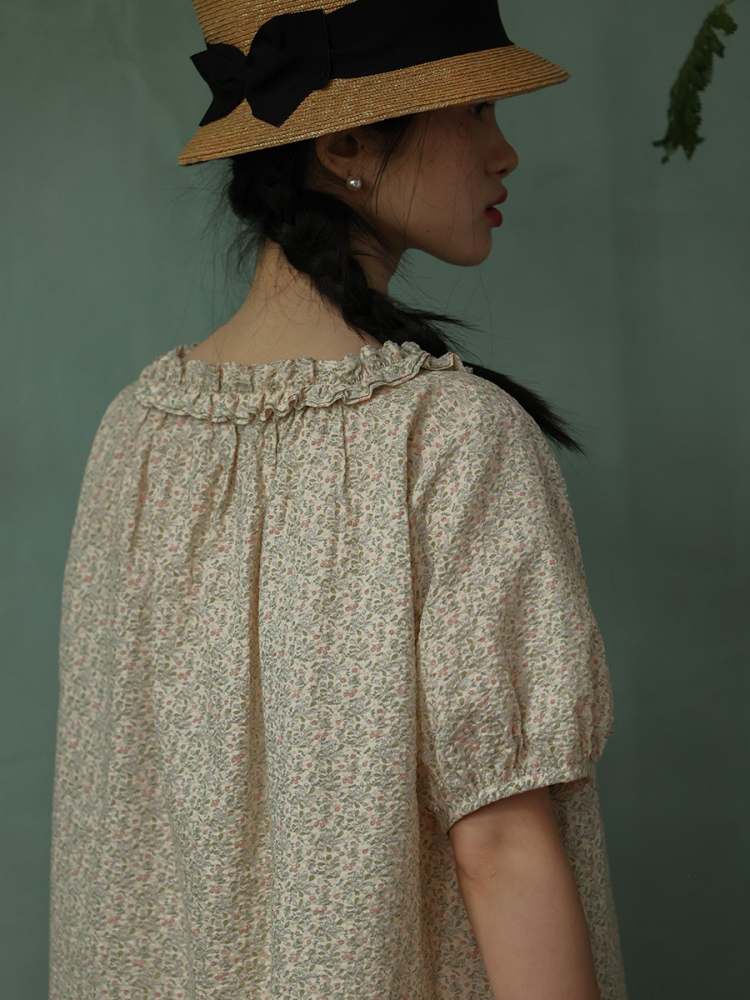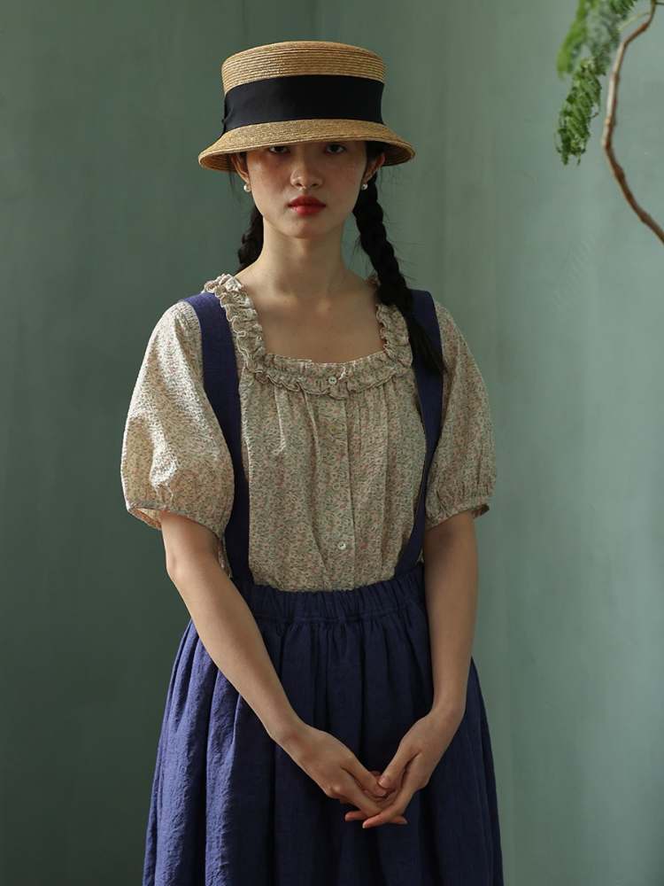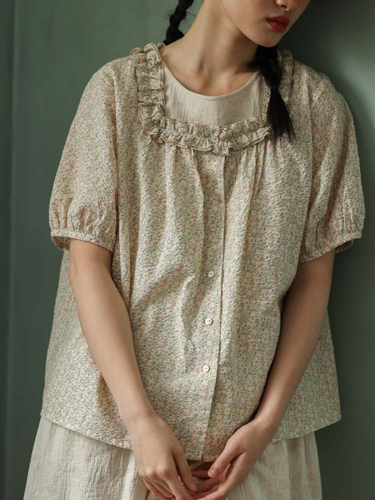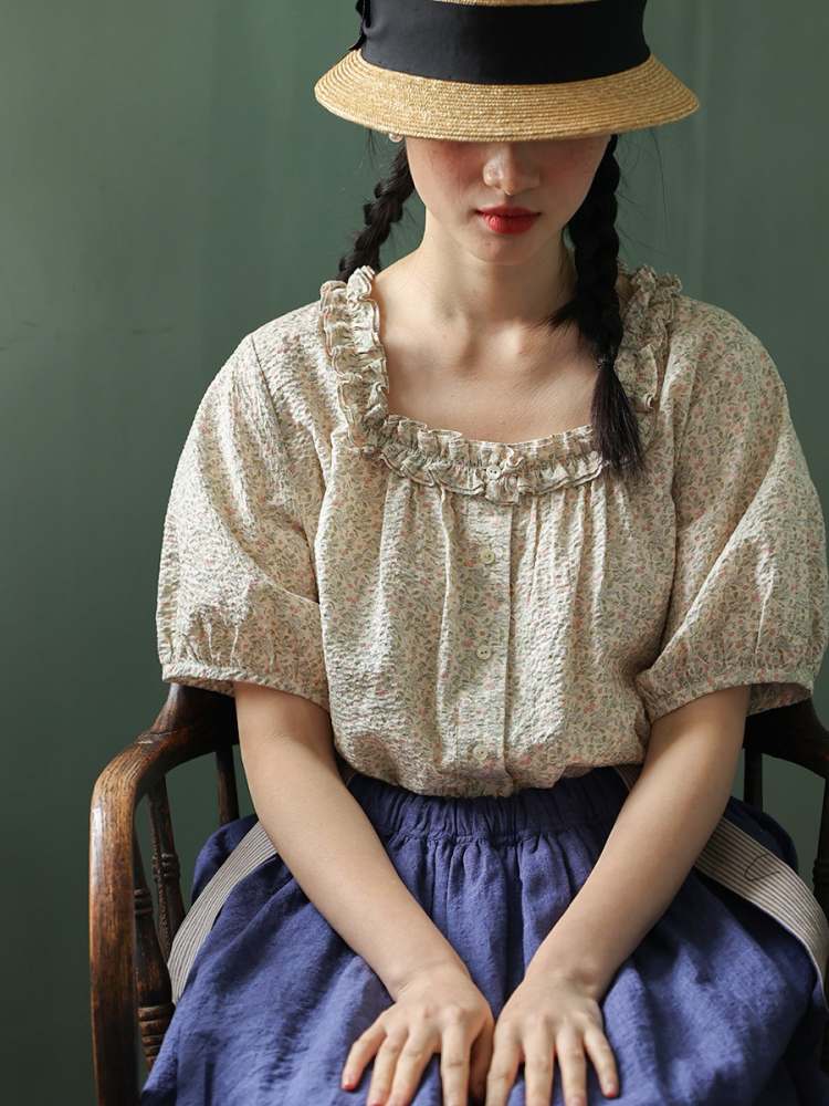 Puff Sleeves Square Neck Floral Tops【s0000006918】