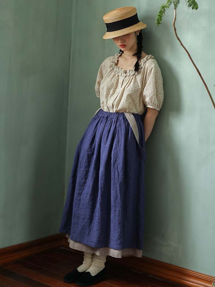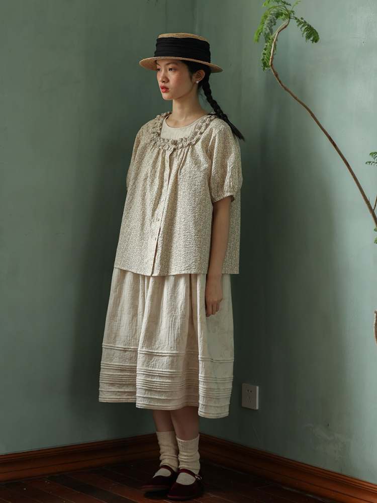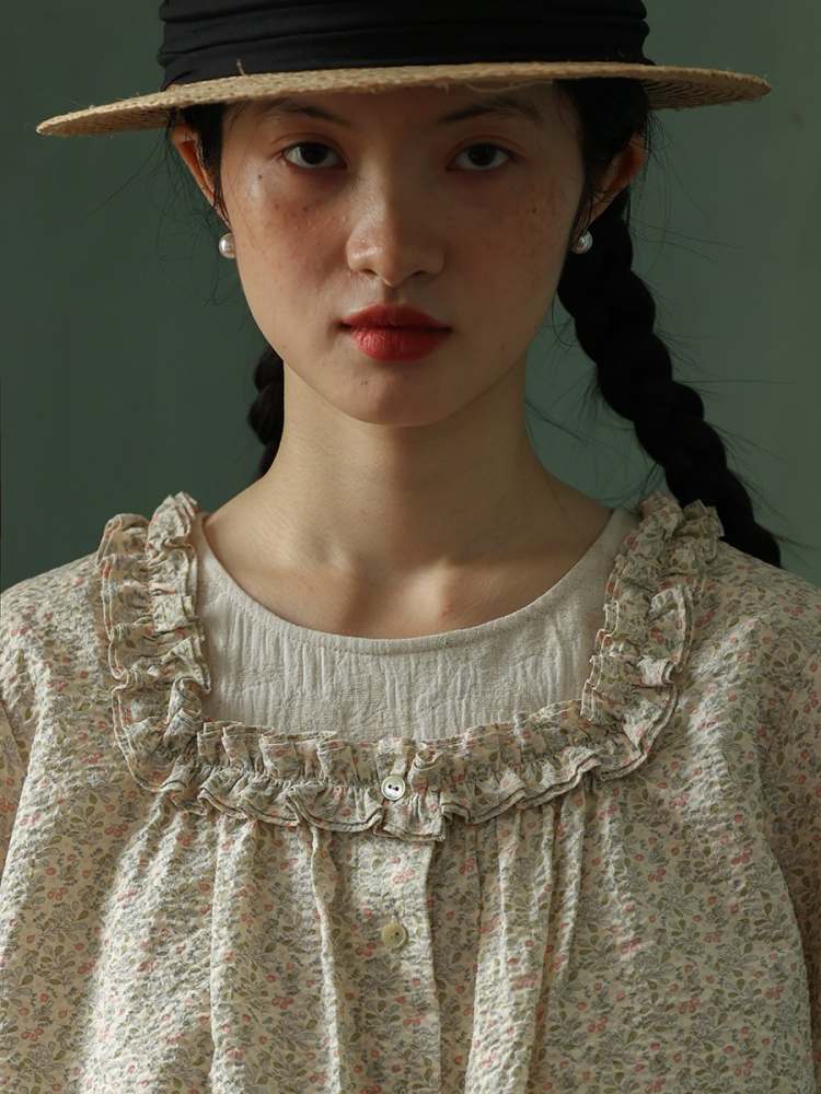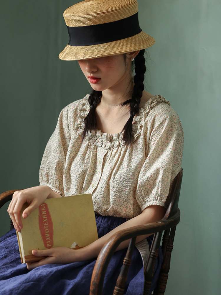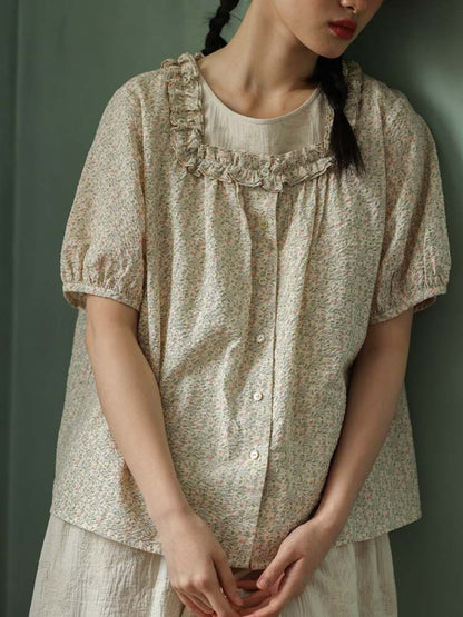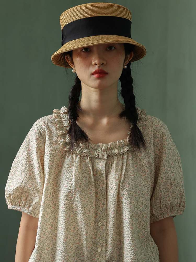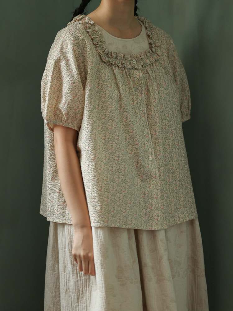 Puff Sleeves Square Neck Floral Tops【s0000006918】