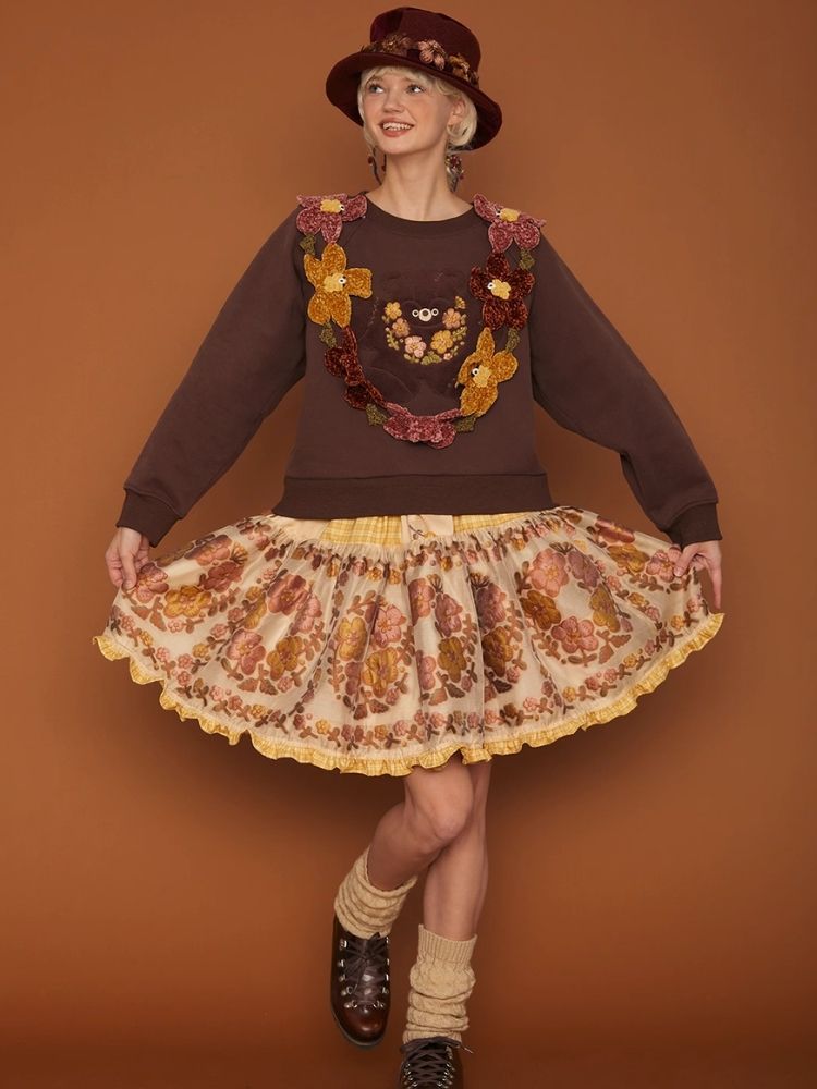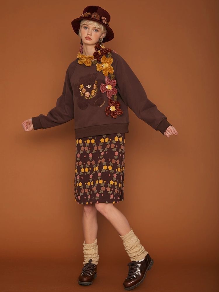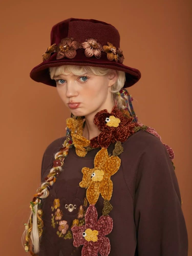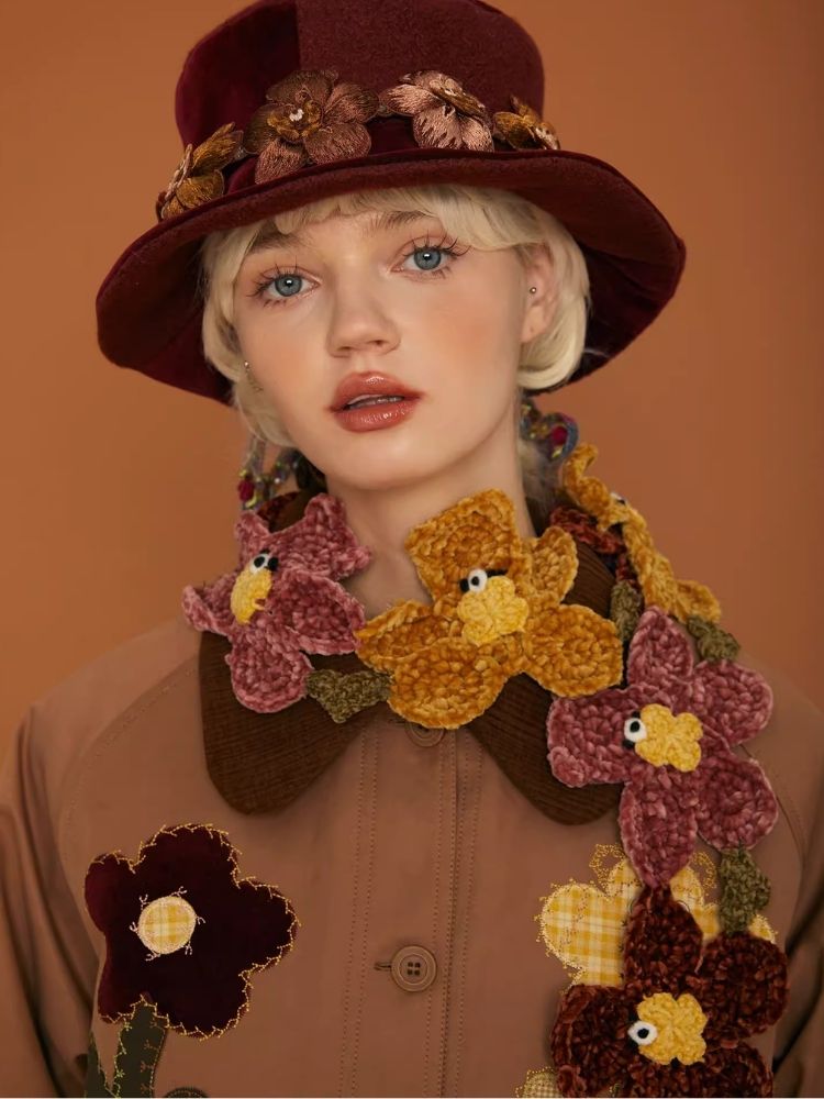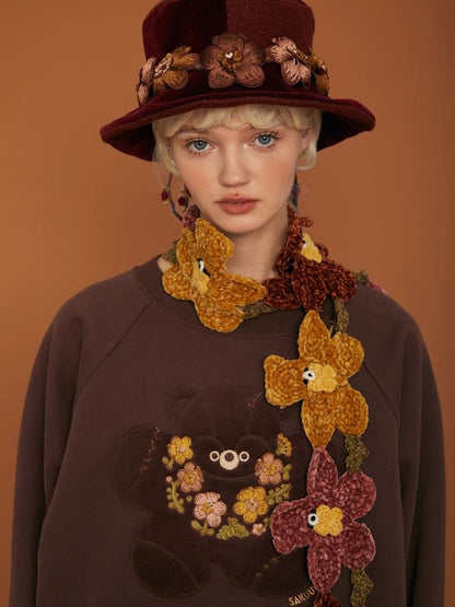 Crocheted Chenille Flower Bear Dancing Scarf【s0000006936】