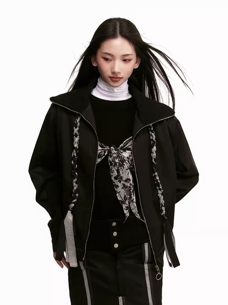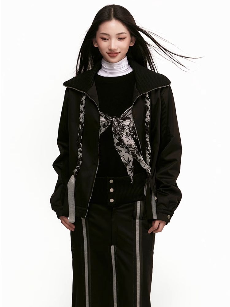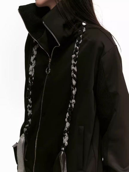 Patchwork Removable Braid Sweatshirt Jacket【s0000006939】