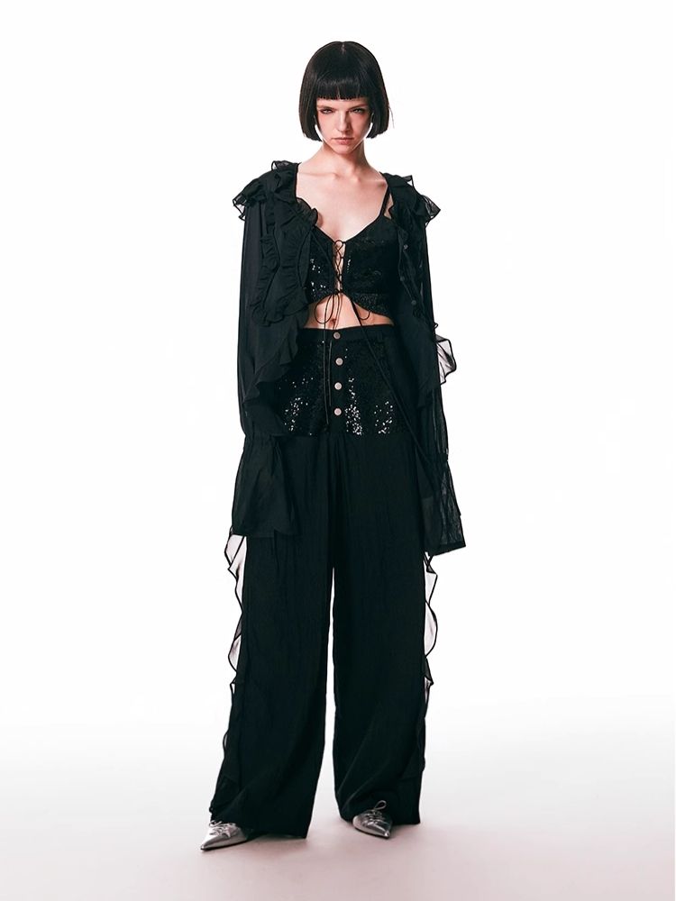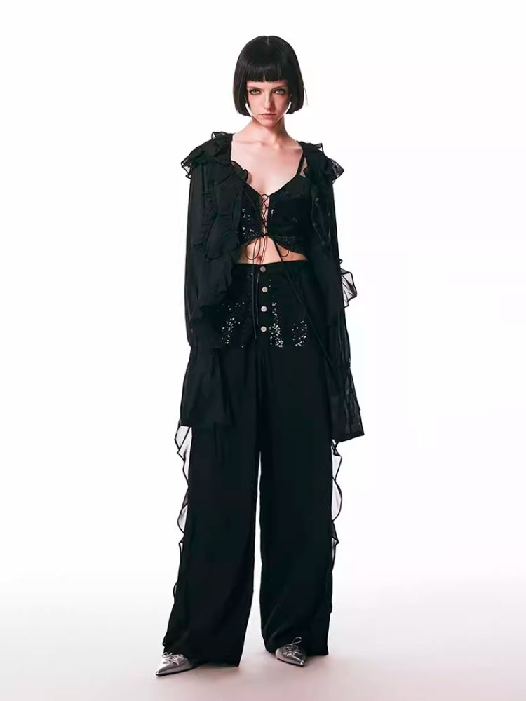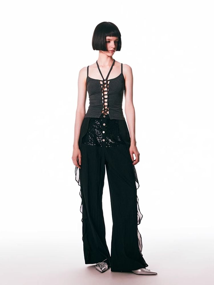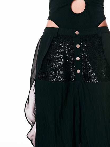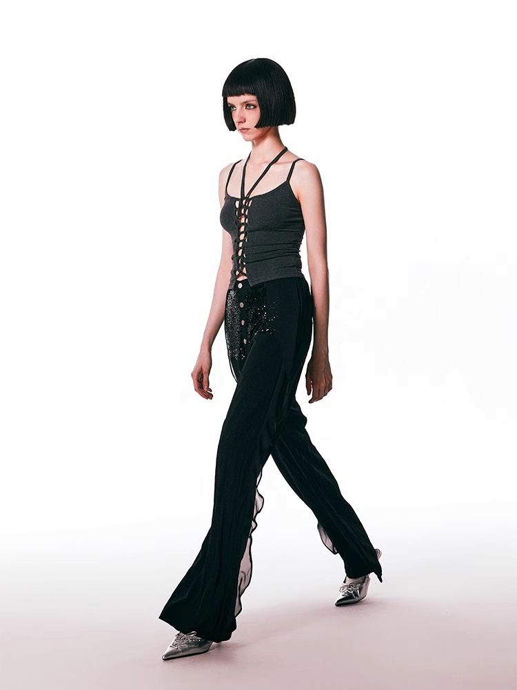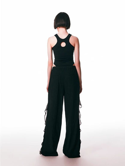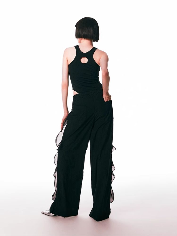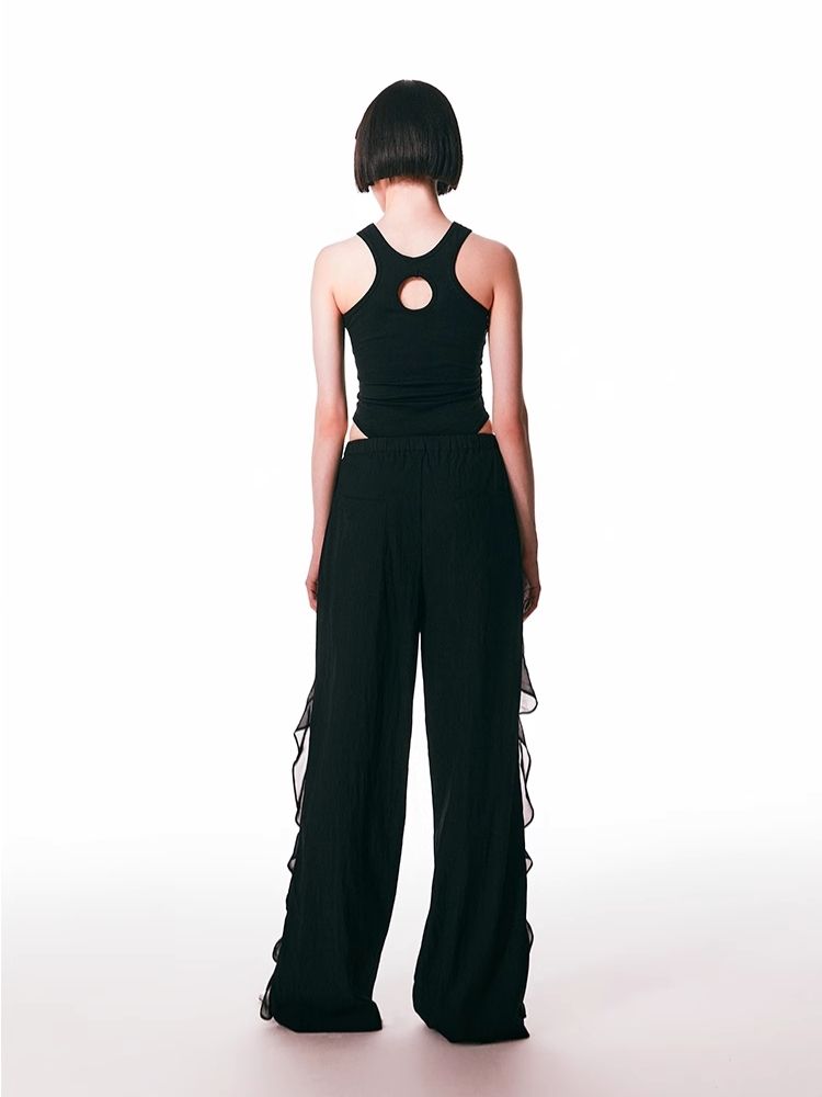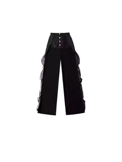 Black Spliced Lace Breathable Trousers【s0000006950】