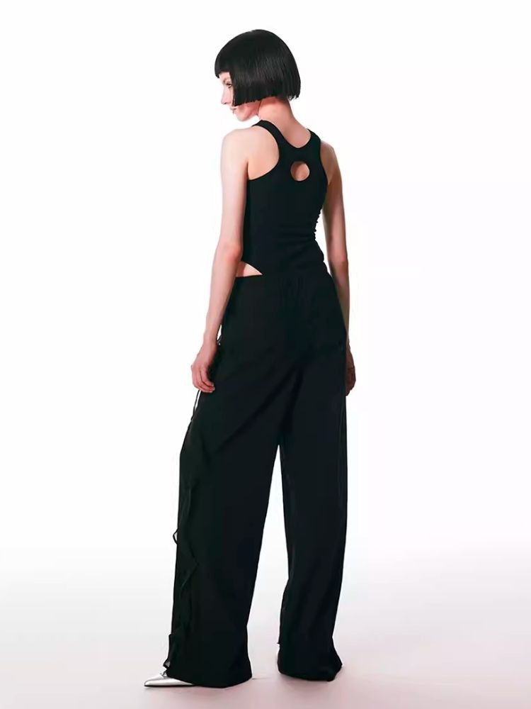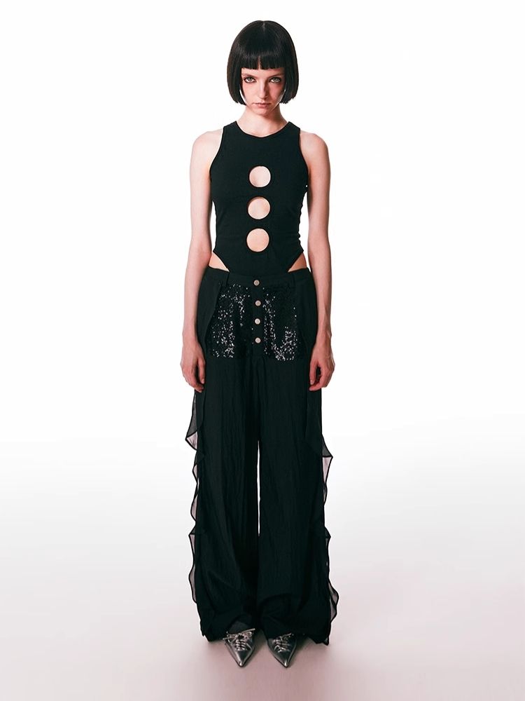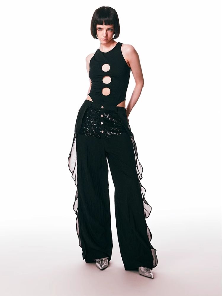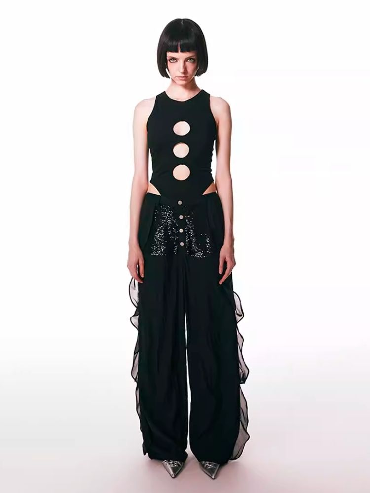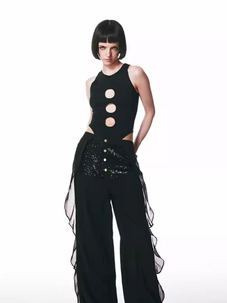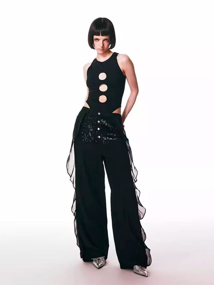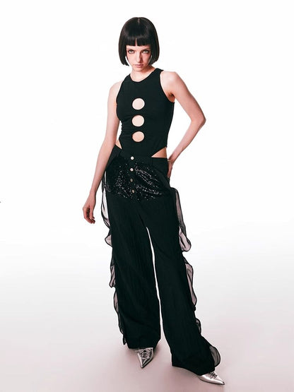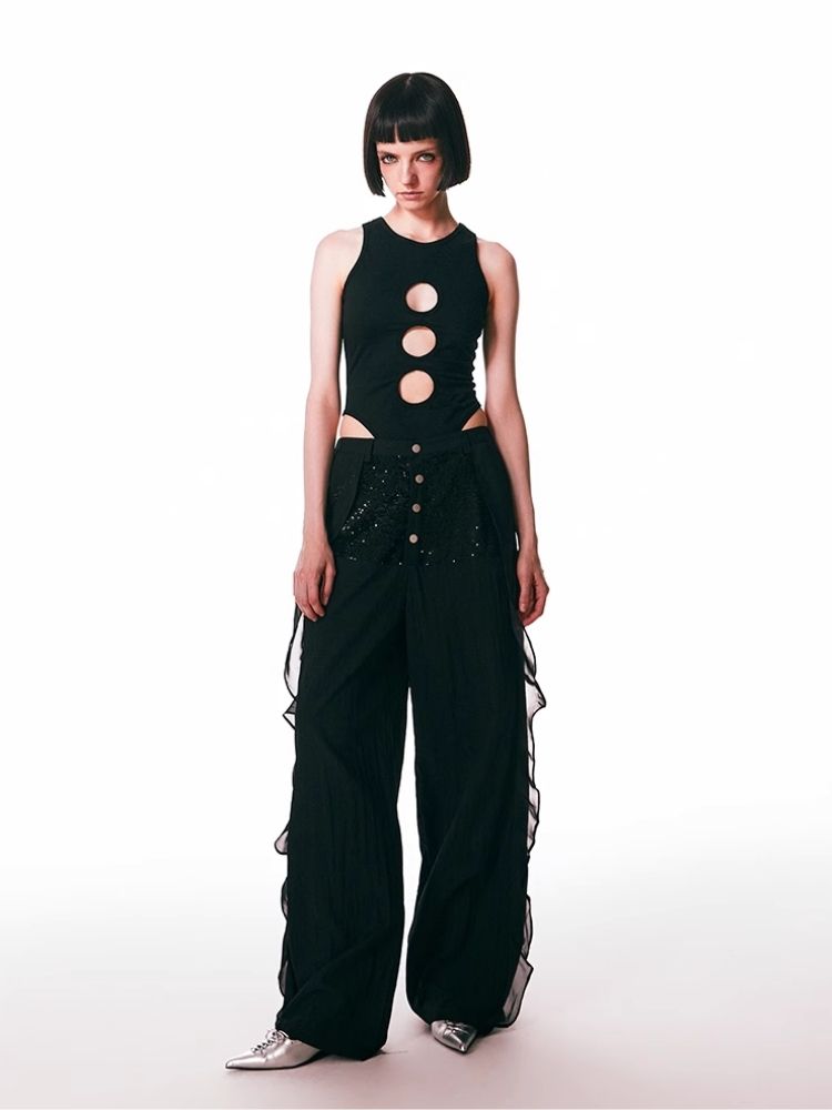Black Spliced Lace Breathable Trousers【s0000006950】