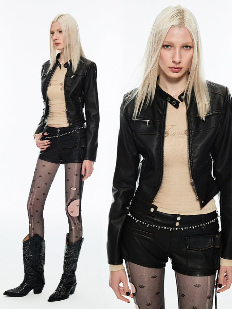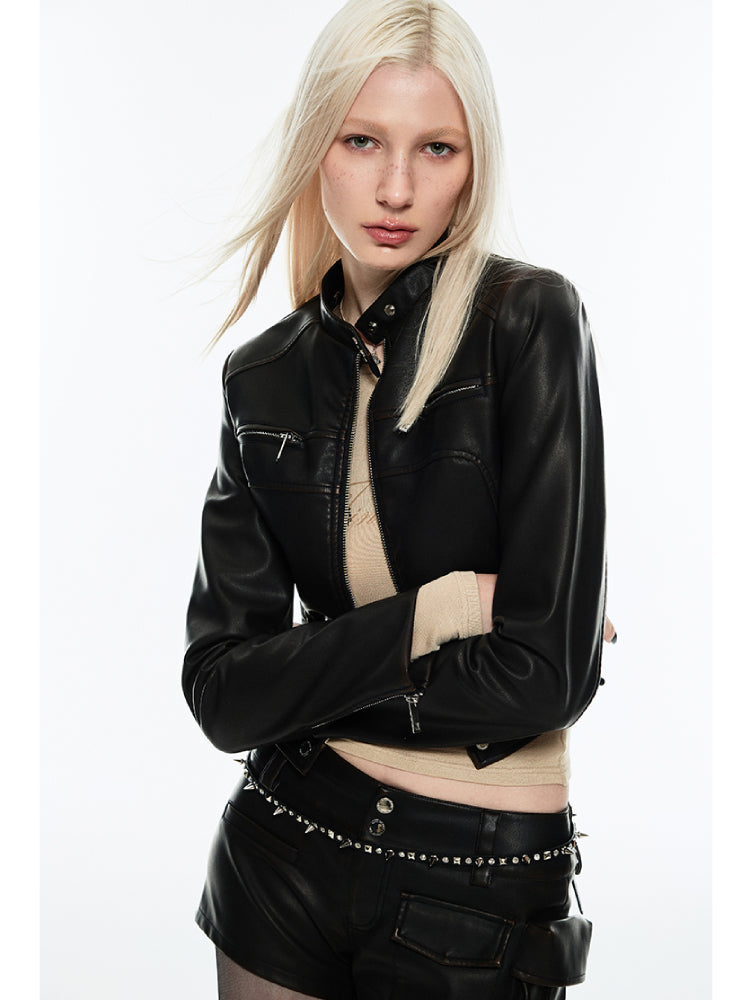 Punk retro leather jacket【s0000007038】