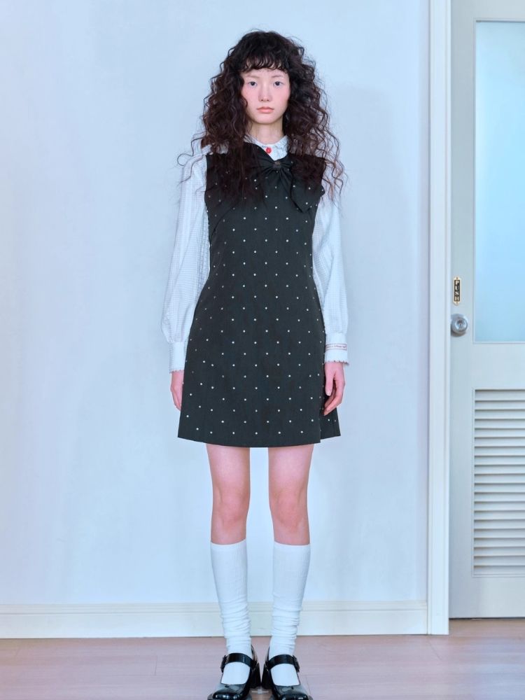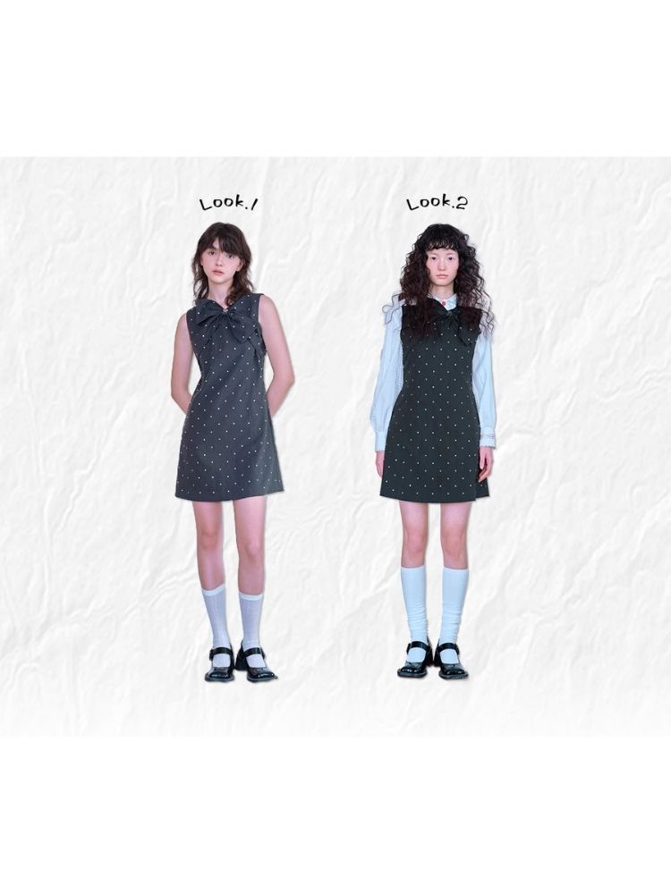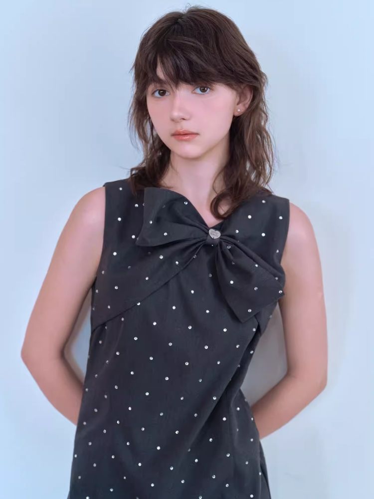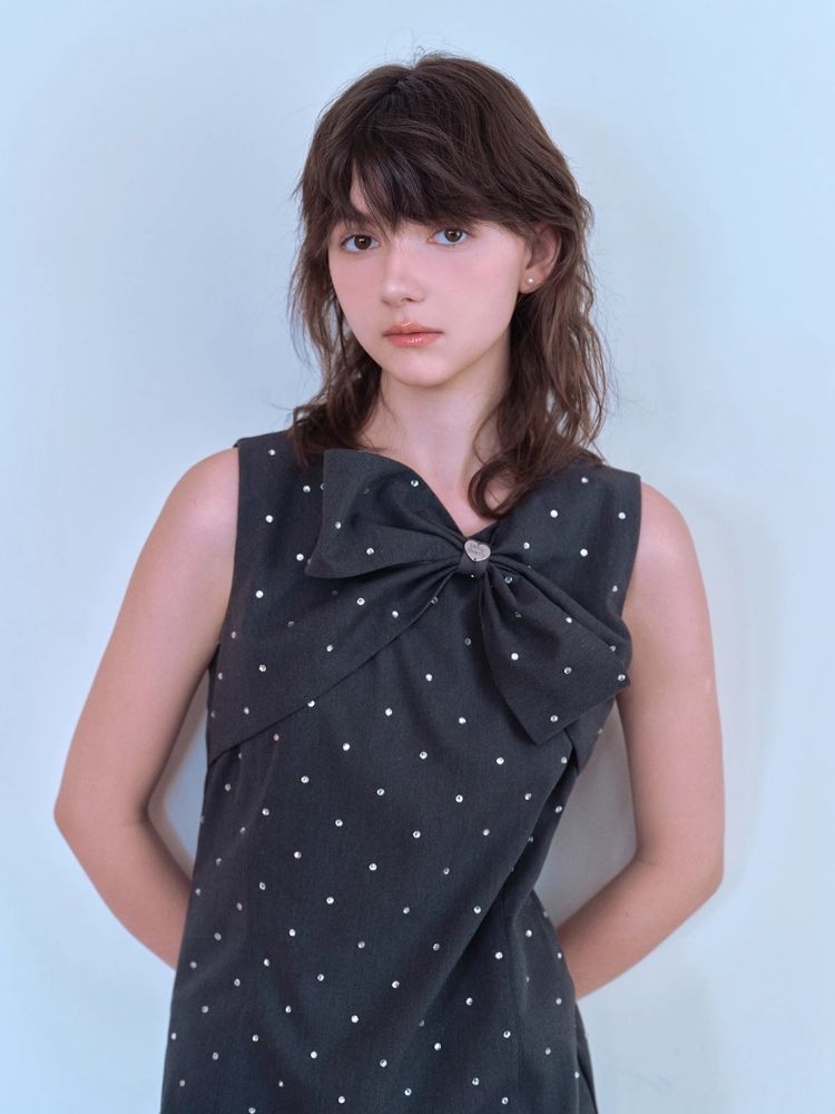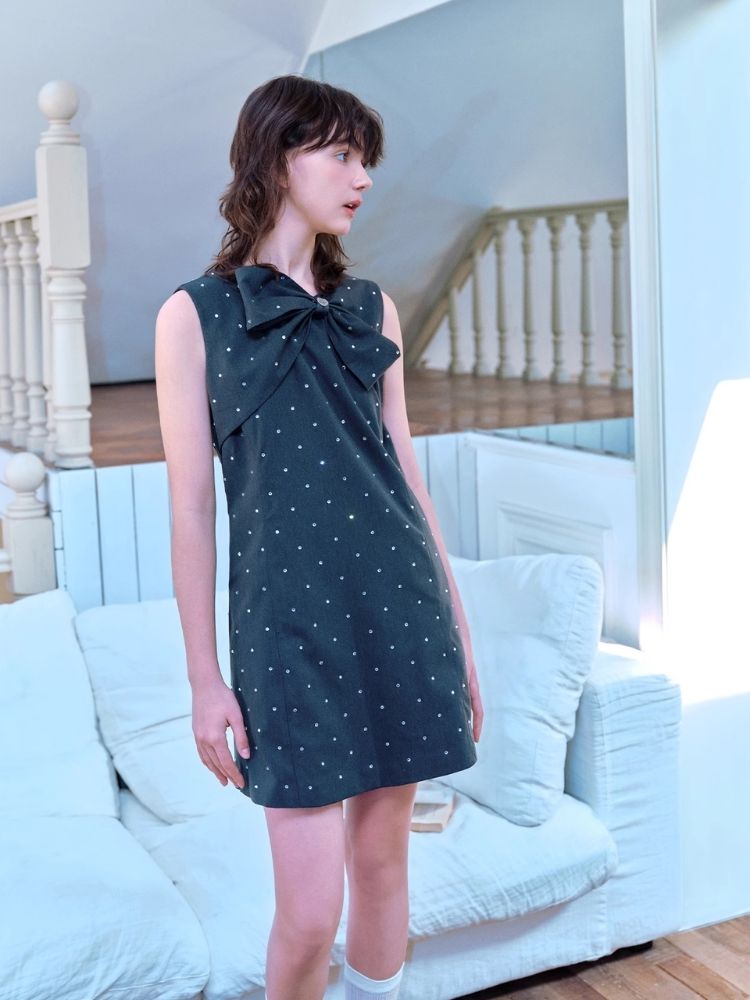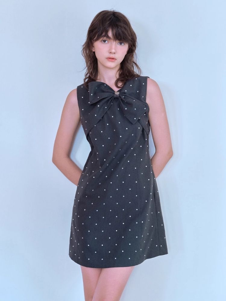 Rhinestone Bow Sleeveless Dress【s0000007057】