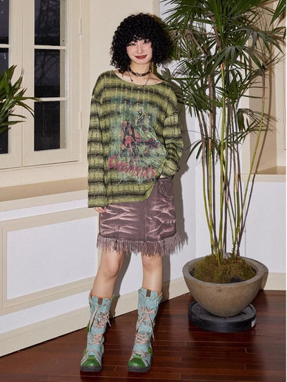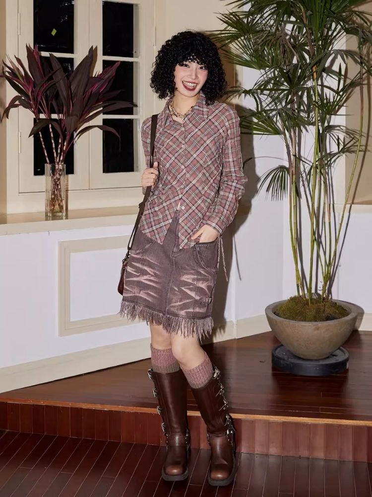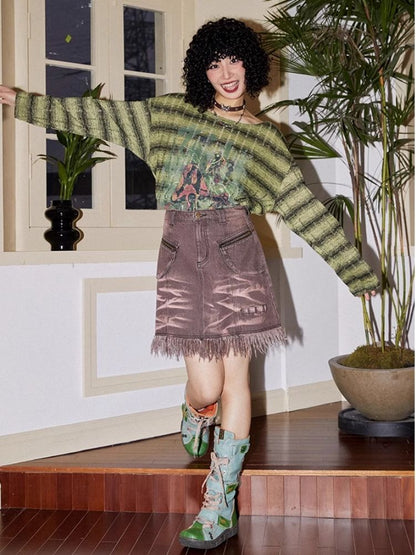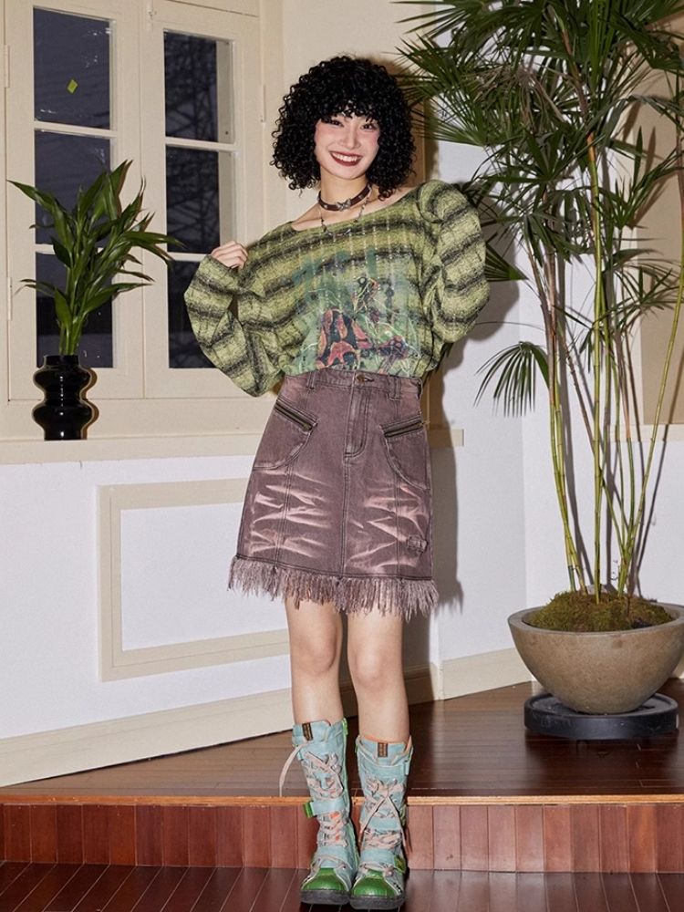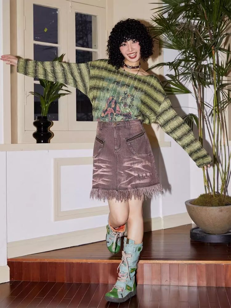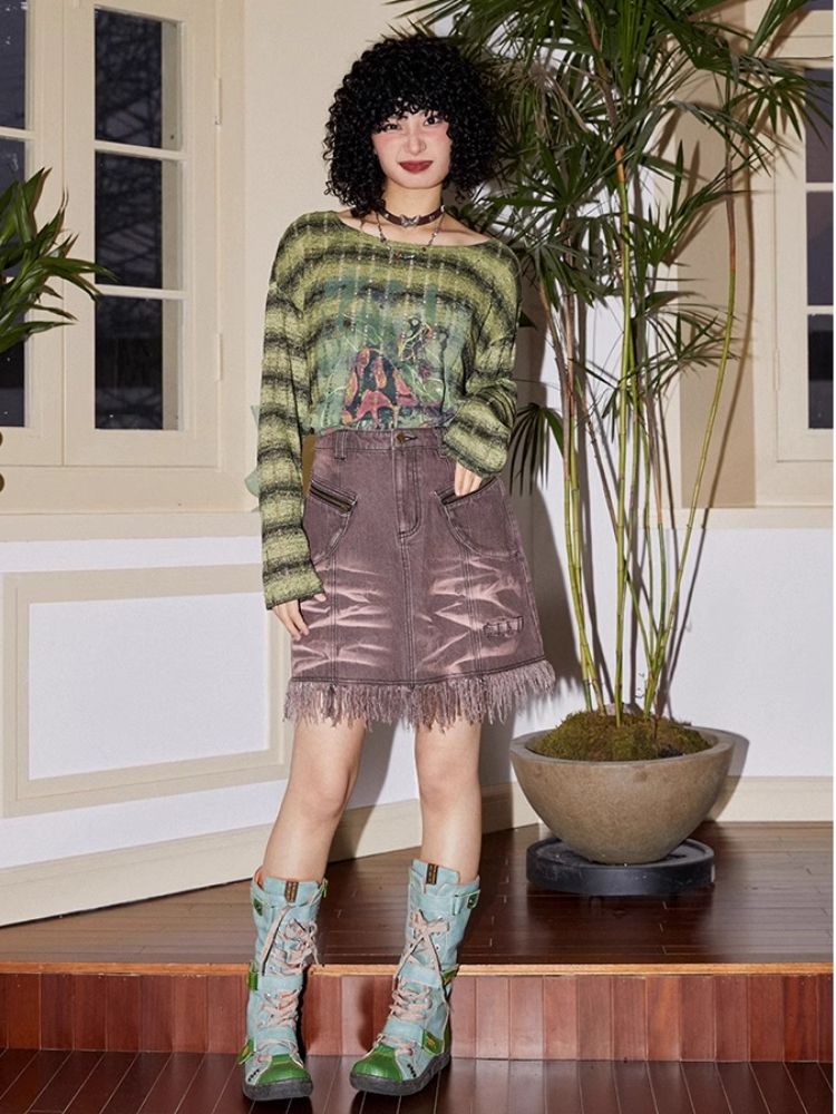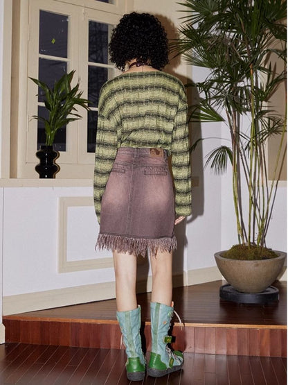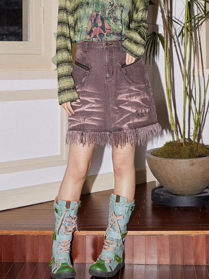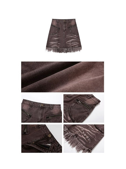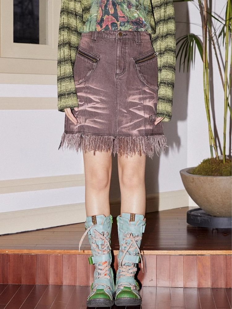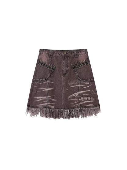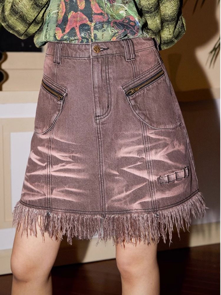 Fringe short section denim A-line half-body skirt【s0000007116】