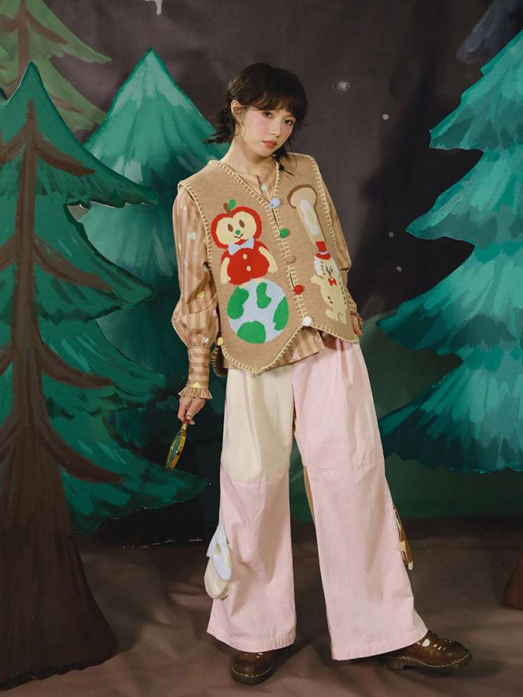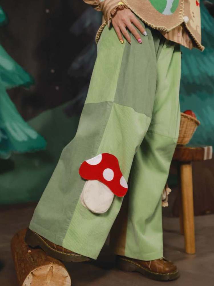 Mushroom Mole 3D Pocket Corduroy Contrast Flare Wide Pants【s0000007126】