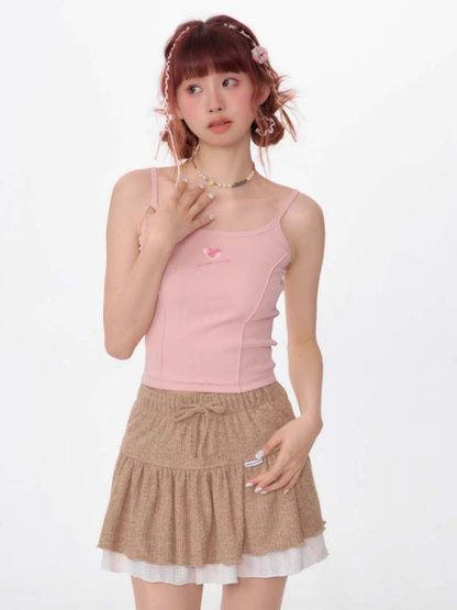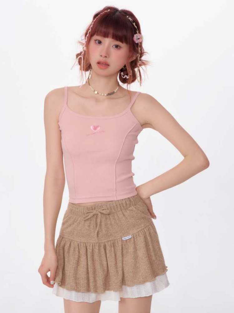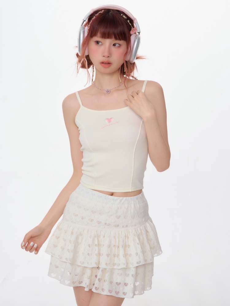 Slim Fit Heart Embroidery Knit Camisole【s0000007133】