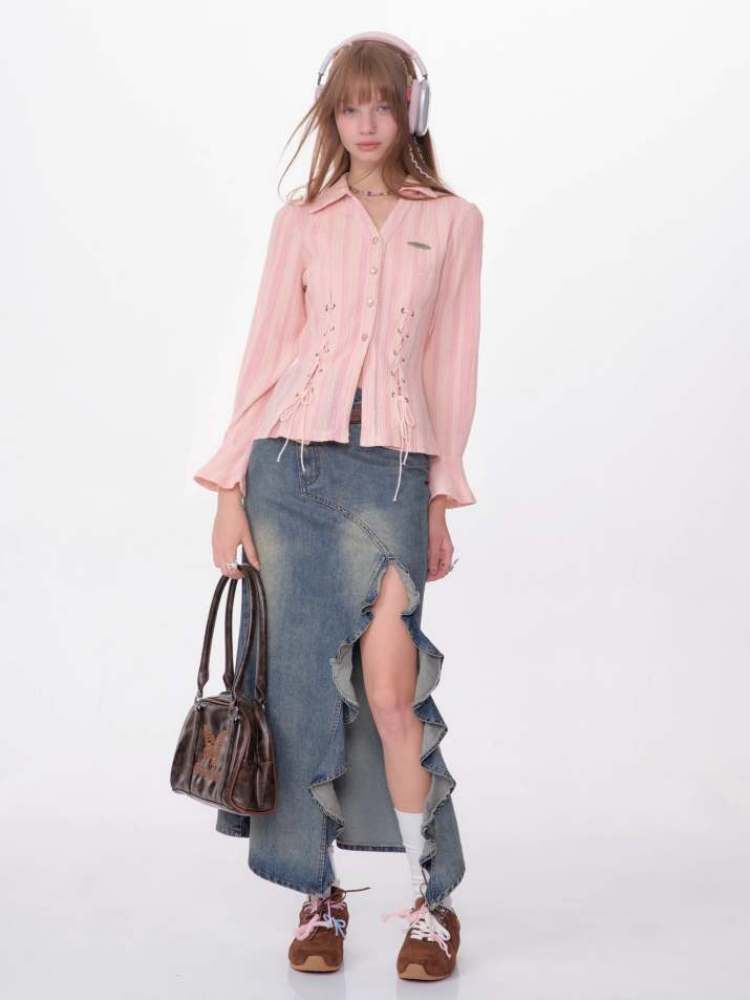 Slim Fit Side Lace Up Shirt【s0000007148】