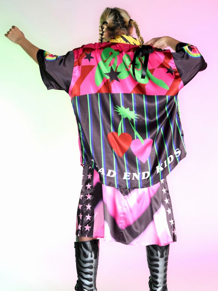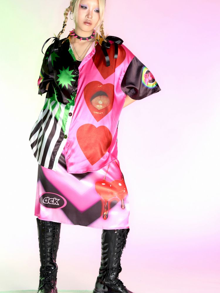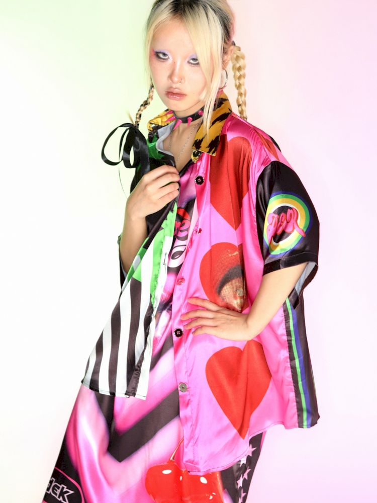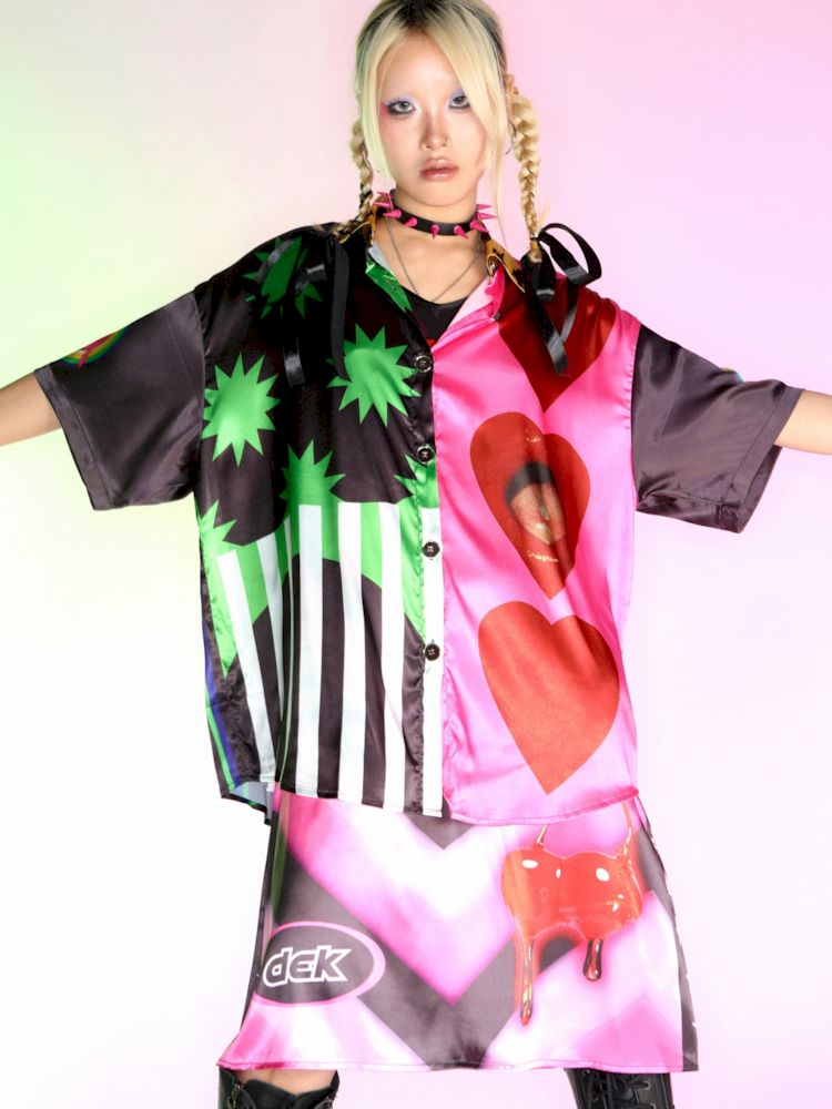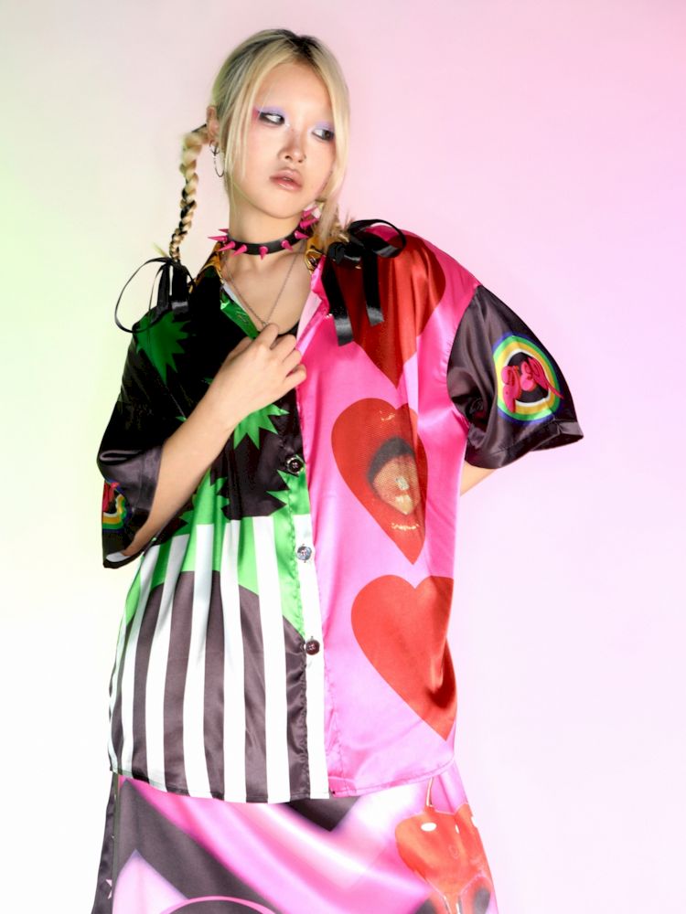 Clashing Stripe Printed Silk Blouse【s0000007156】
