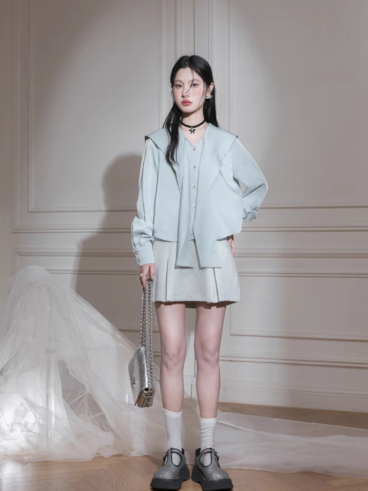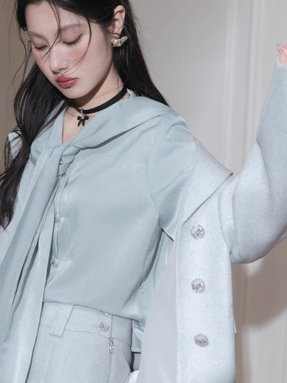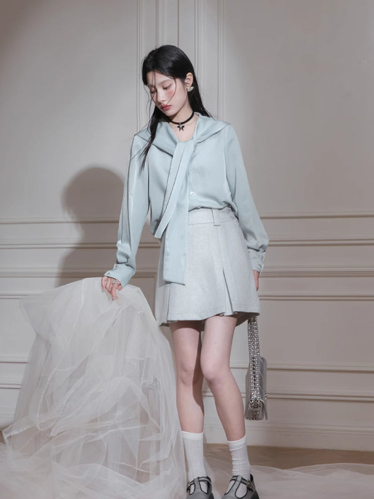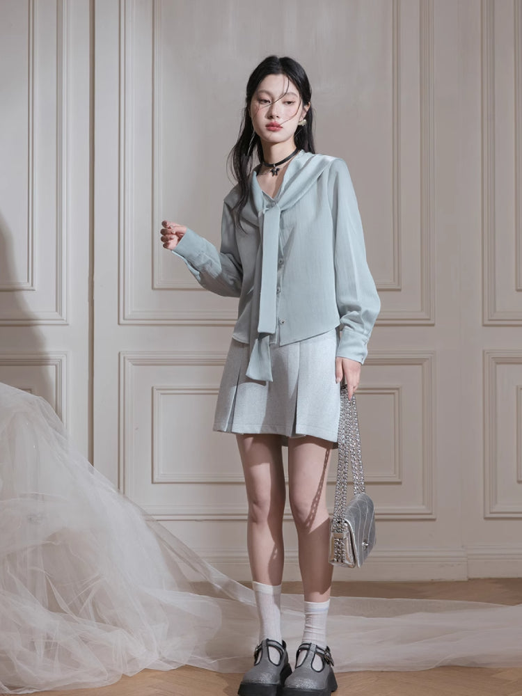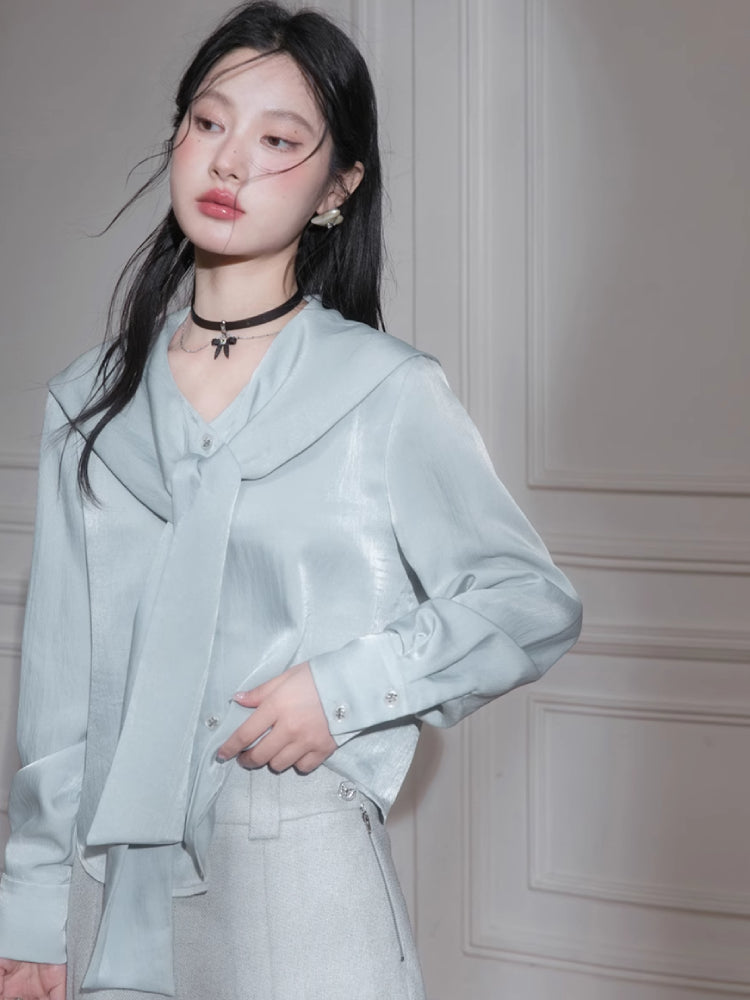 Tie neck long sleeve shirt【s0000007206】