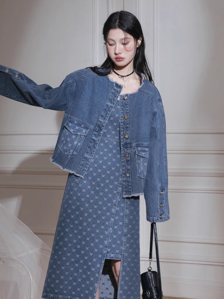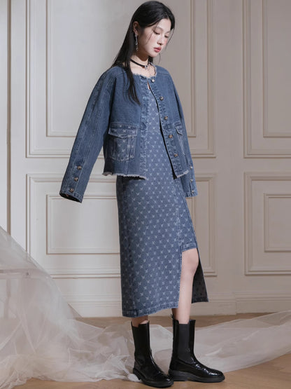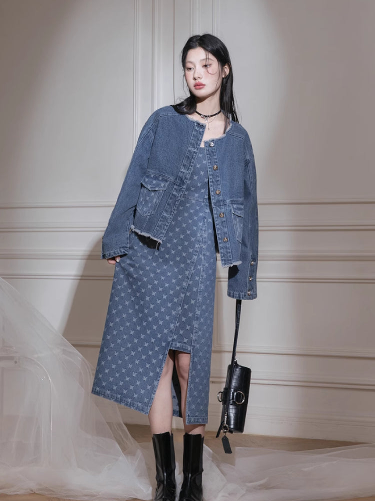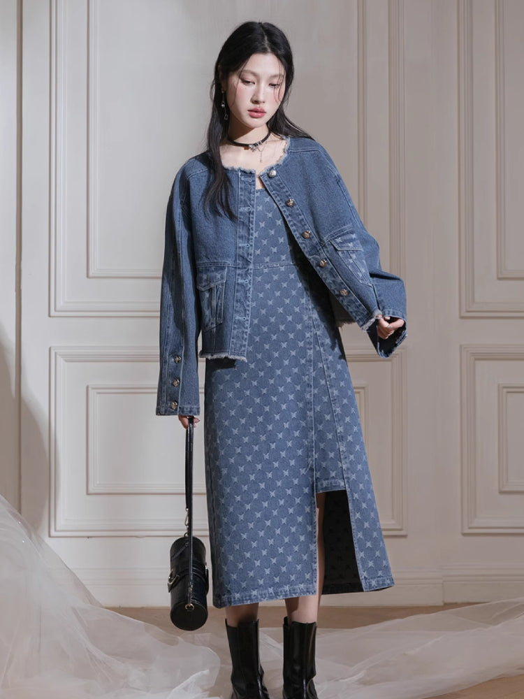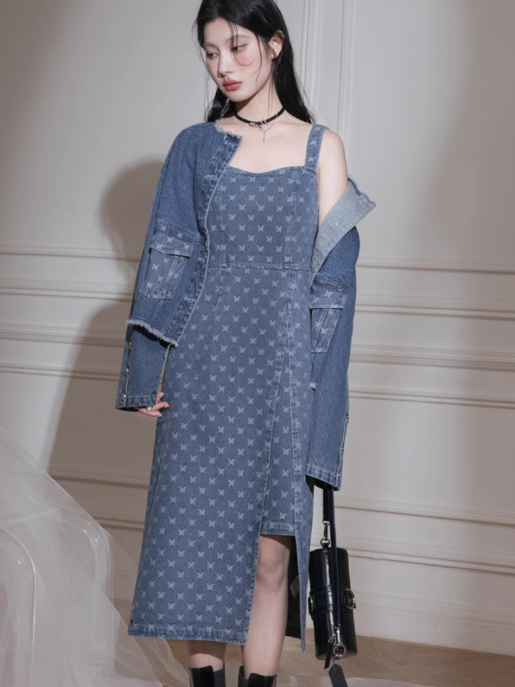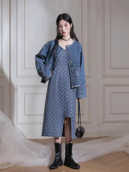 Denim jacket + suspenders skirt【s0000007213】