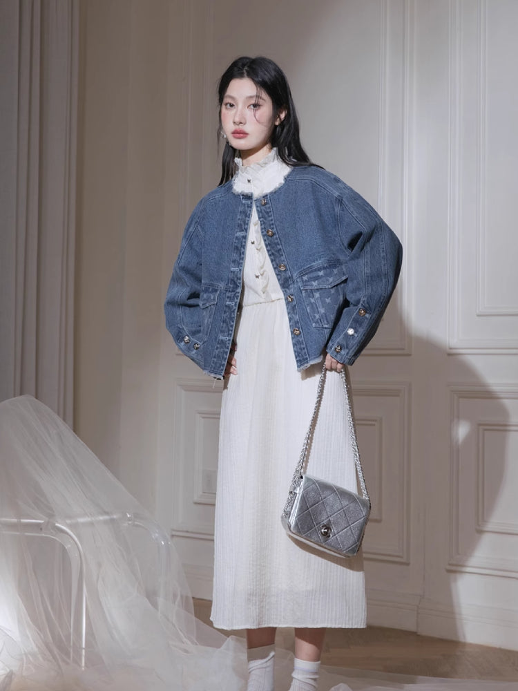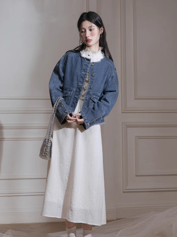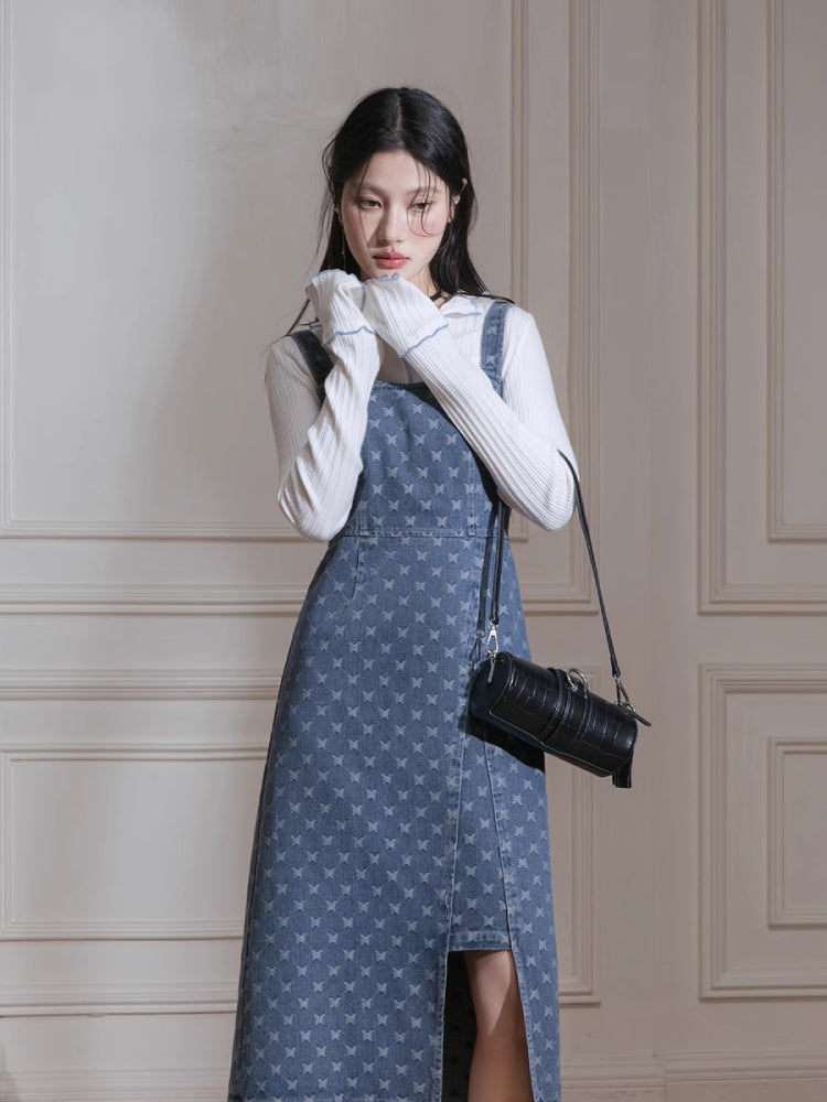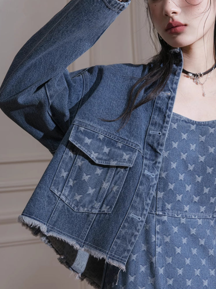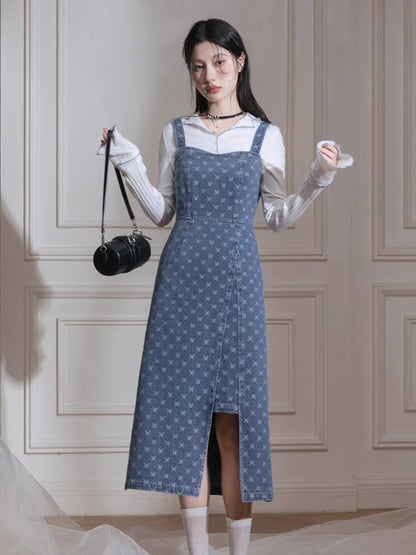 Denim jacket + suspenders skirt【s0000007213】