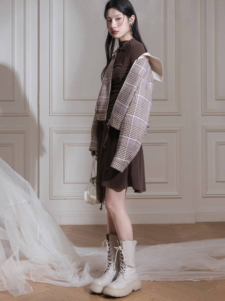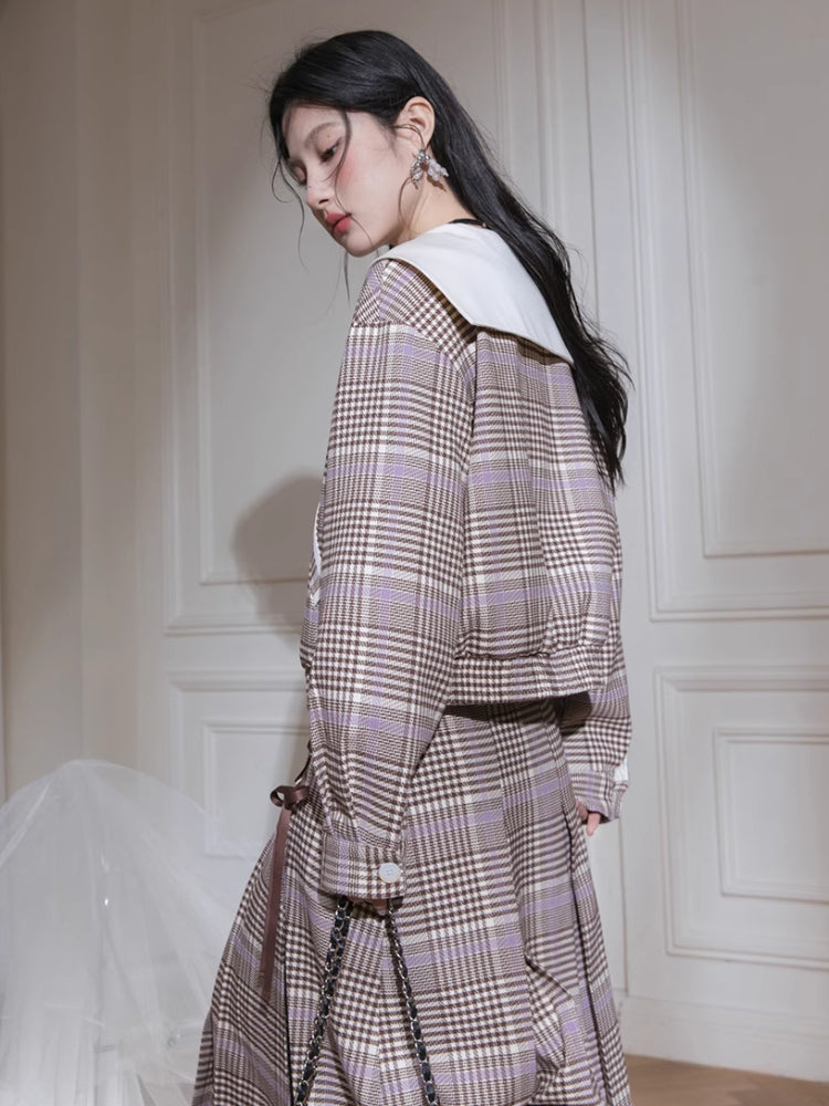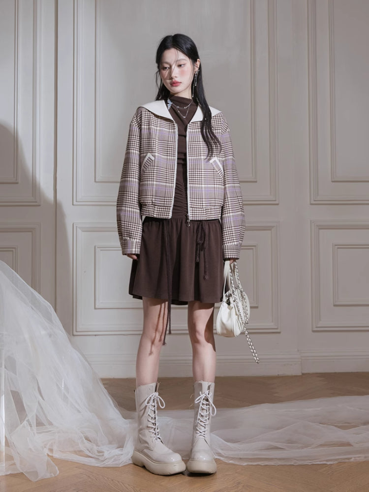 - Model :163cm/42kg 着用サイズ:S(jacket) 、XS(skirt)