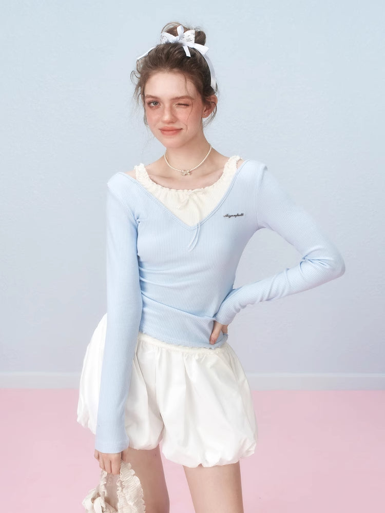Fake two piece long sleeve t-shirt【s0000007238】