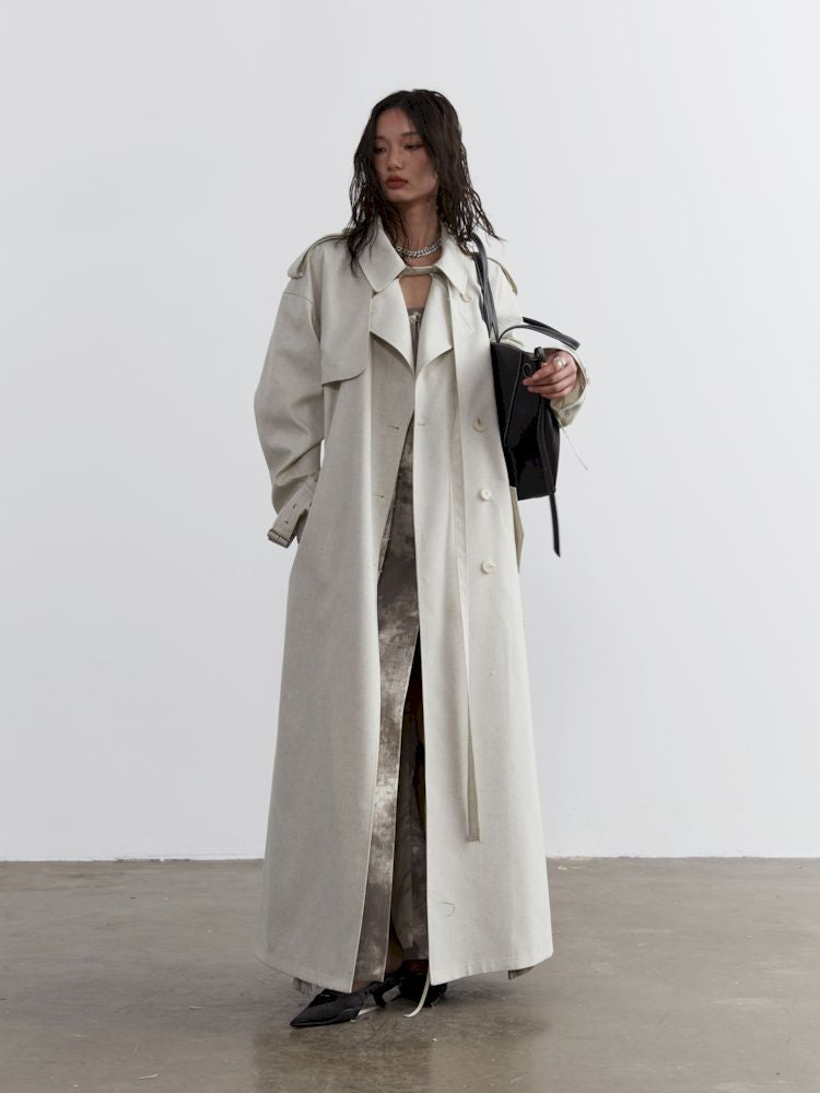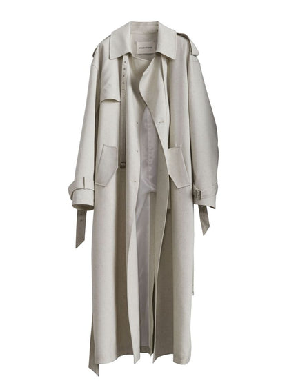 Tie Trim Genderless Long Trench Coat【s0000007269】