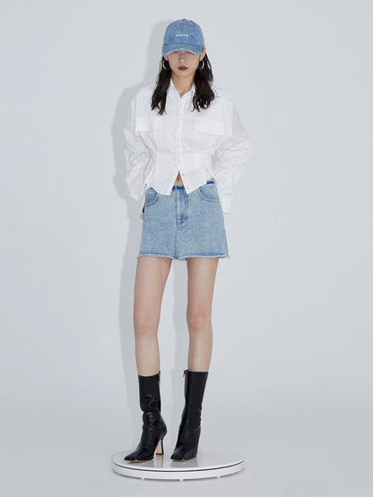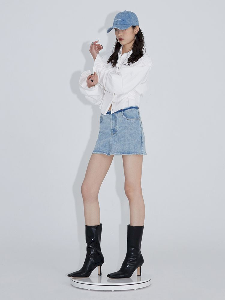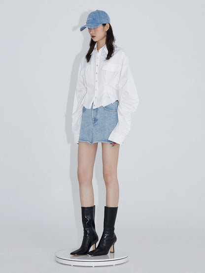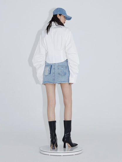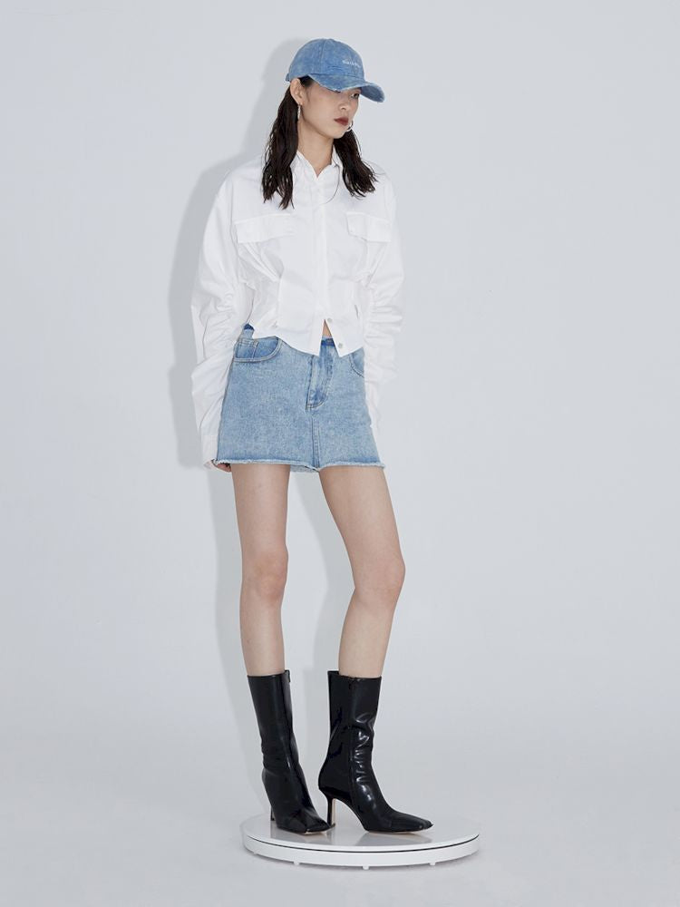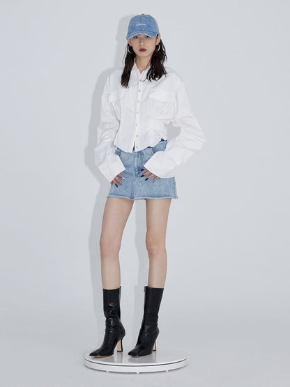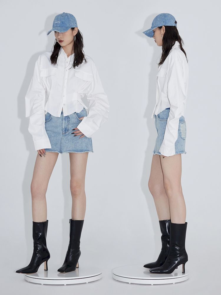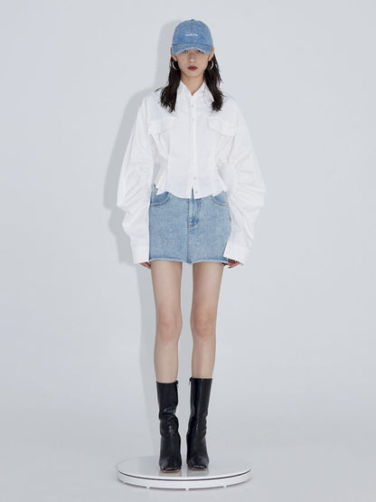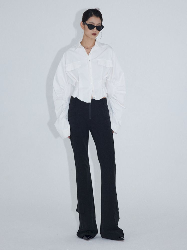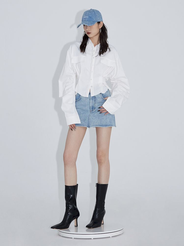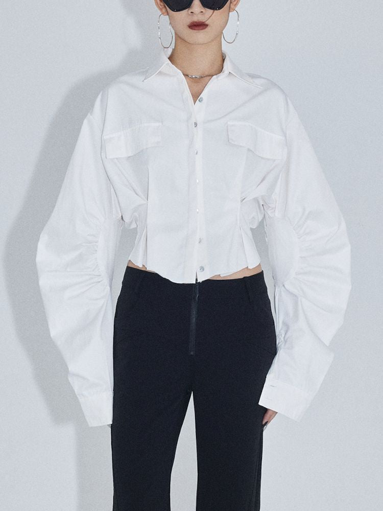 Pinch Pleated Curved Sleeve Short Shirt【s0000007351】