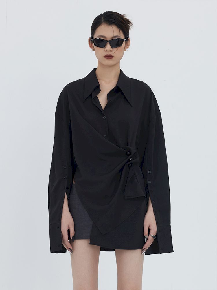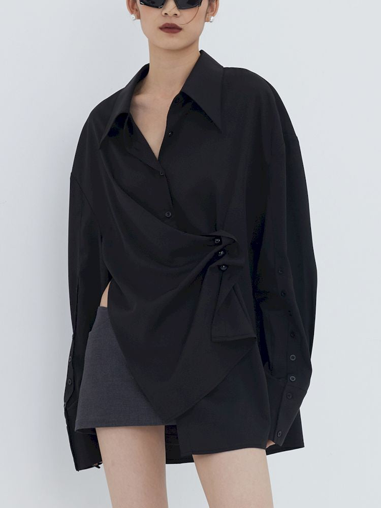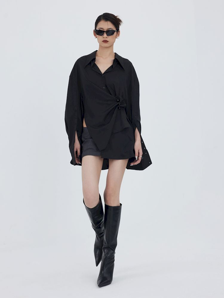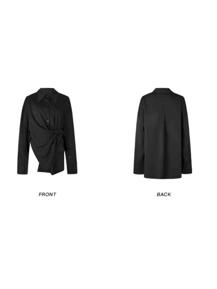 Asymmetric Hem Pleated Loose Pointed Collar Shirt【s0000007357】