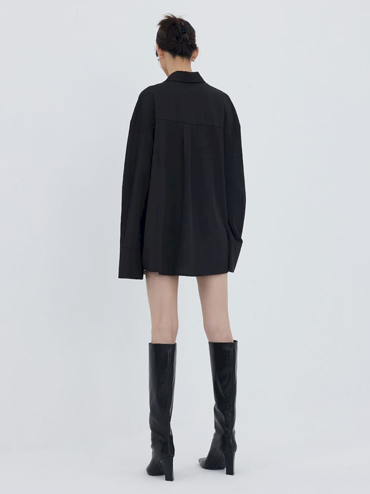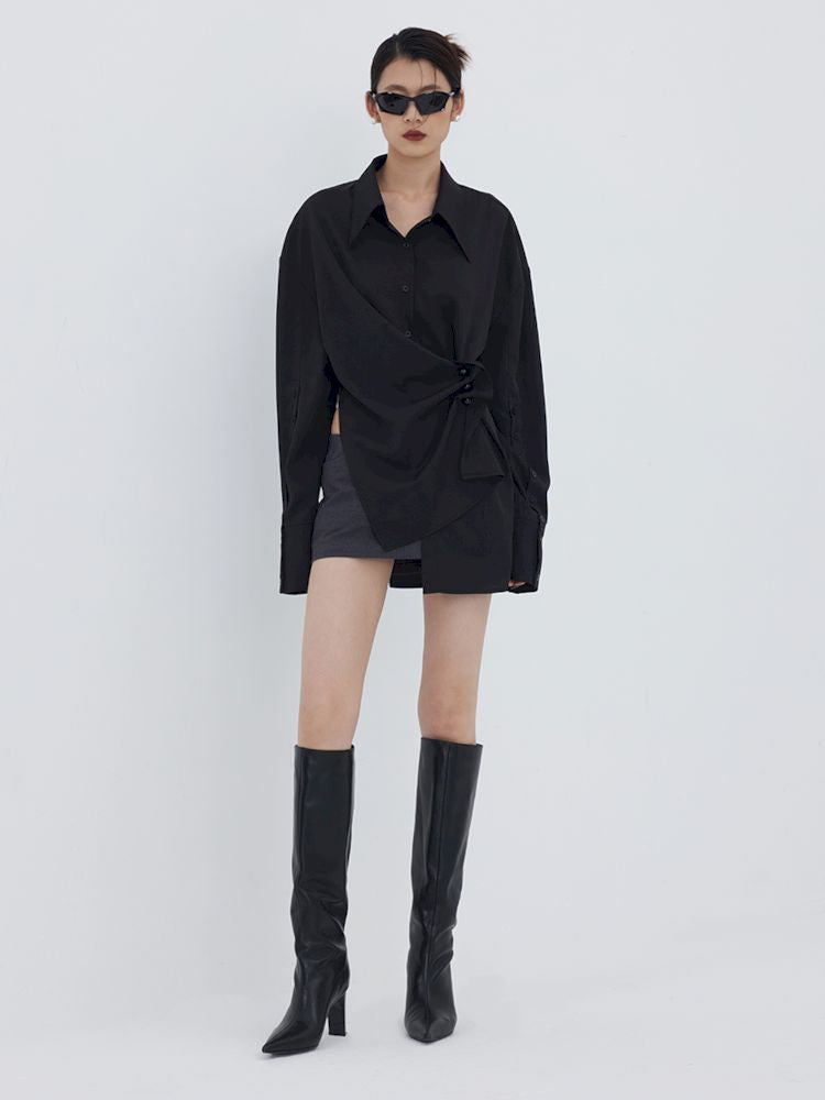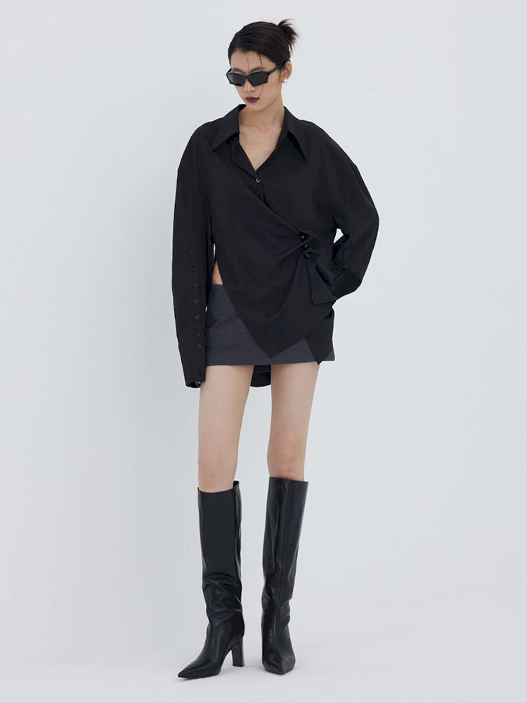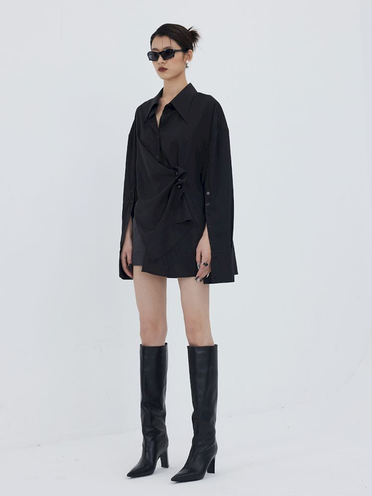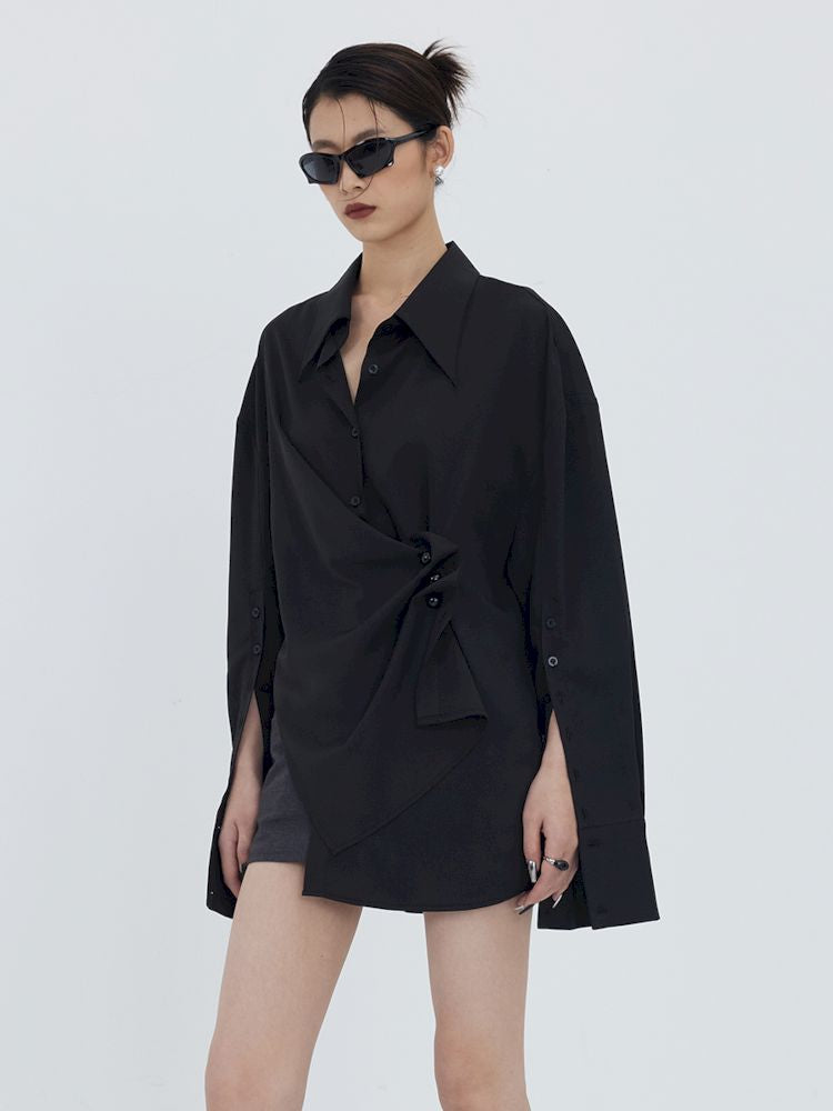 Asymmetric Hem Pleated Loose Pointed Collar Shirt【s0000007357】