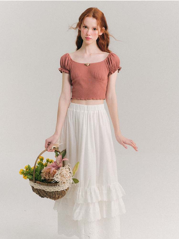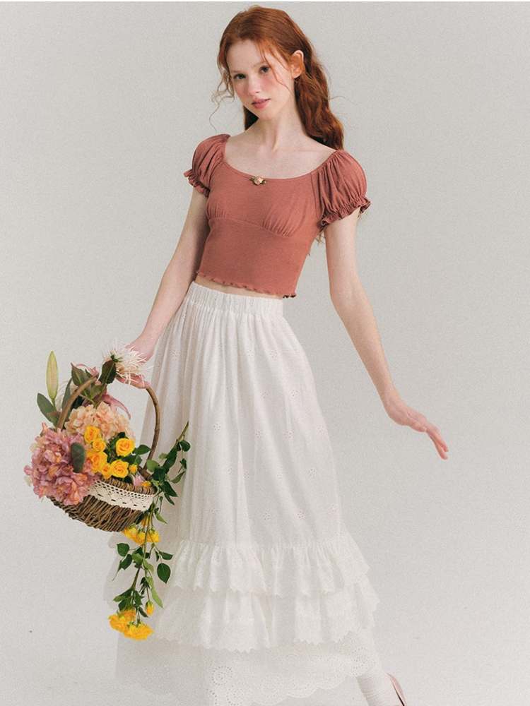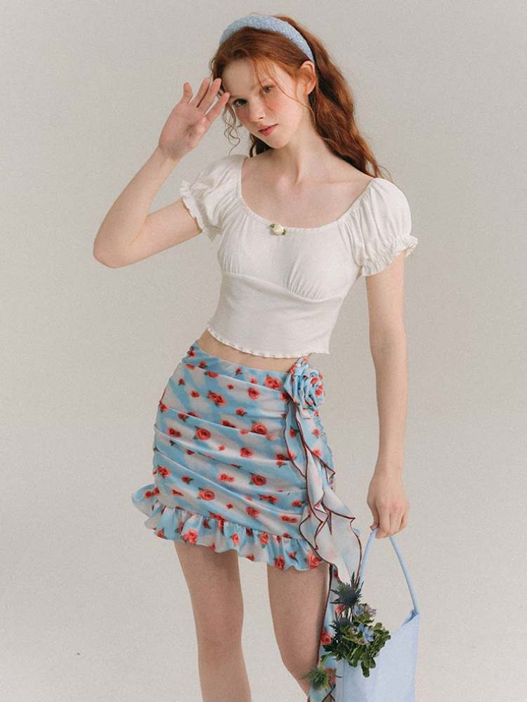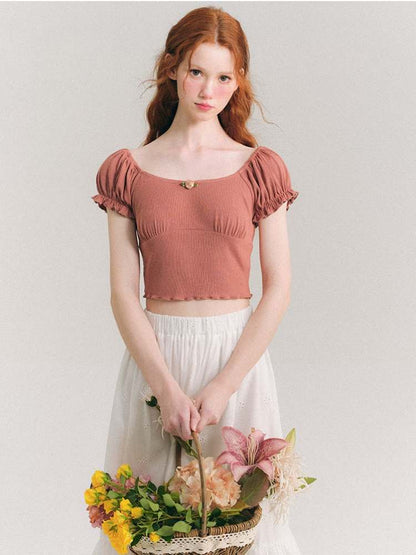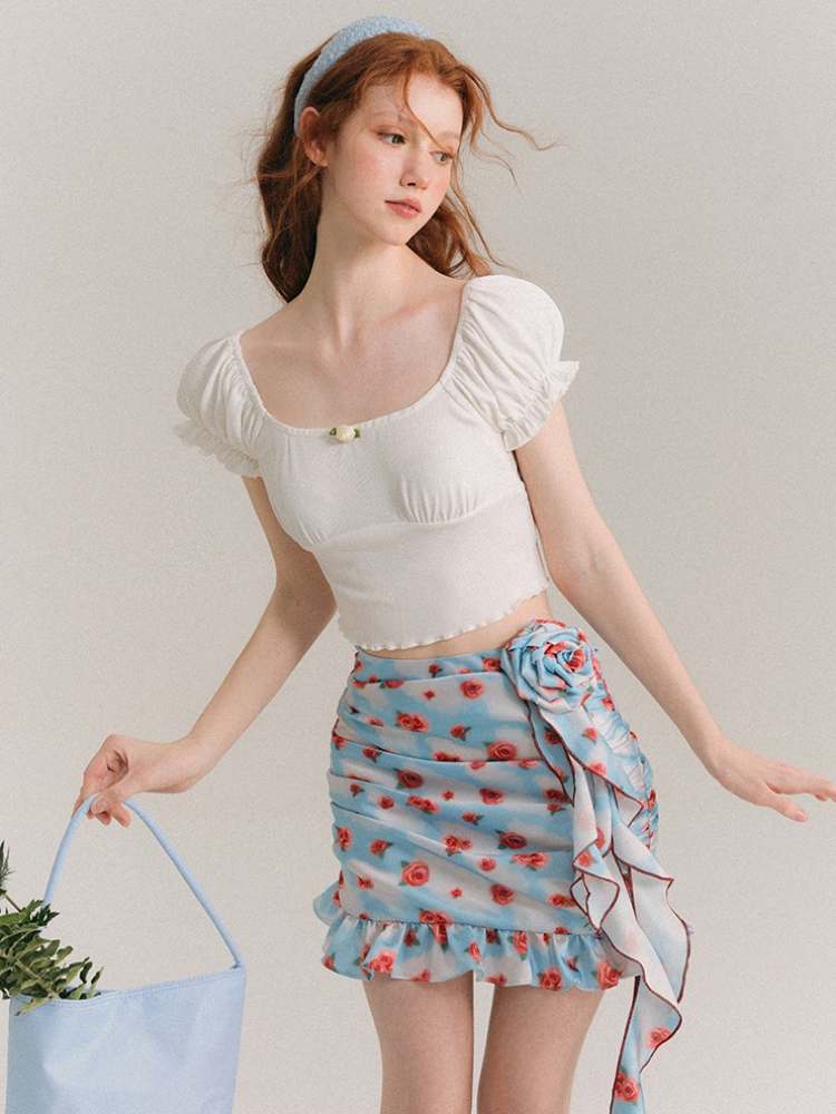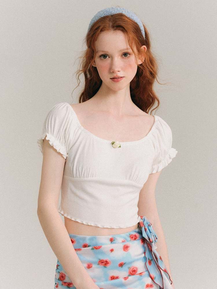 Rose Corsage Puff Sleeves Ballet T-Shirt【s0000007380】