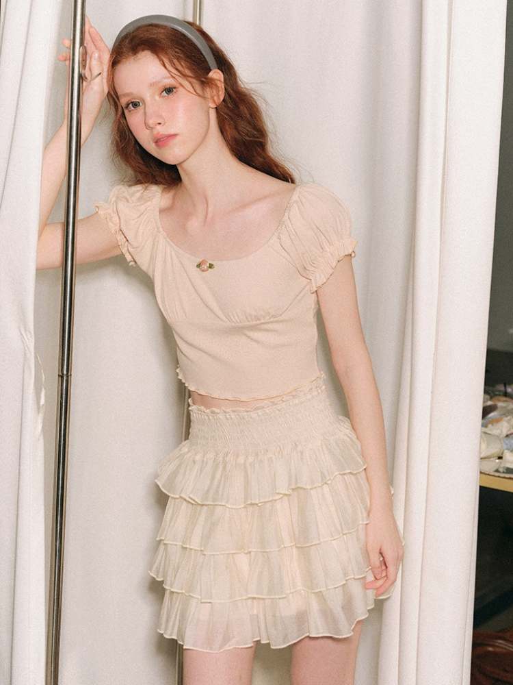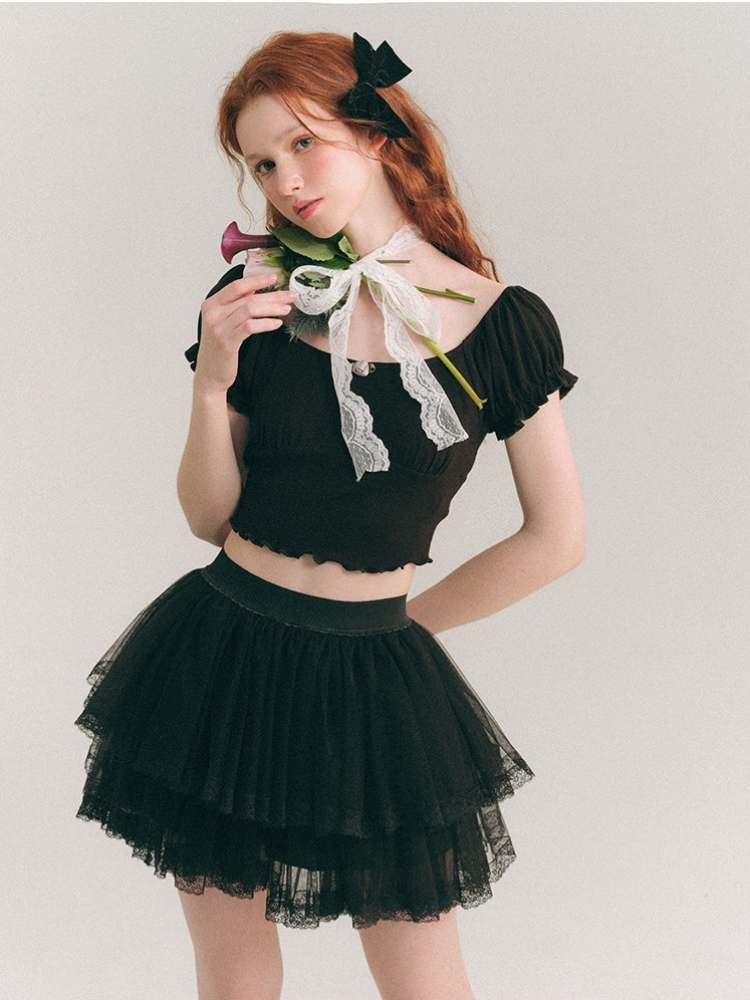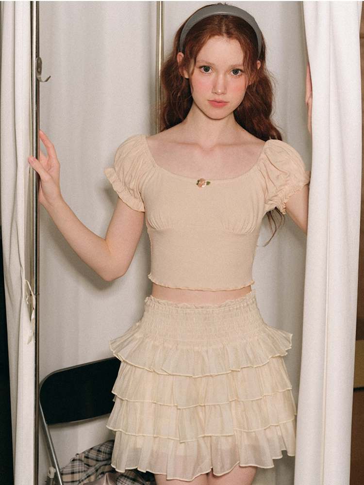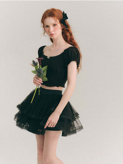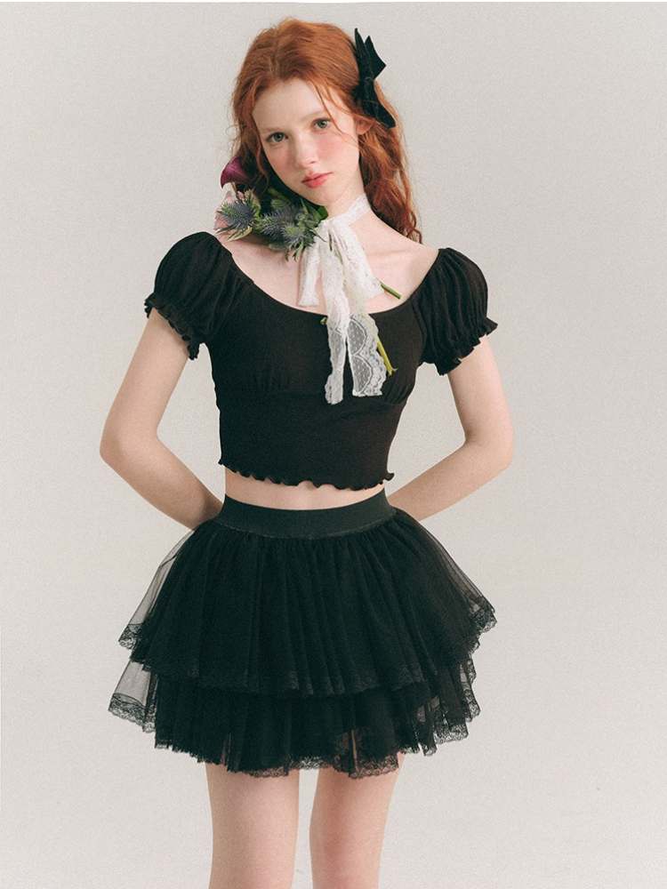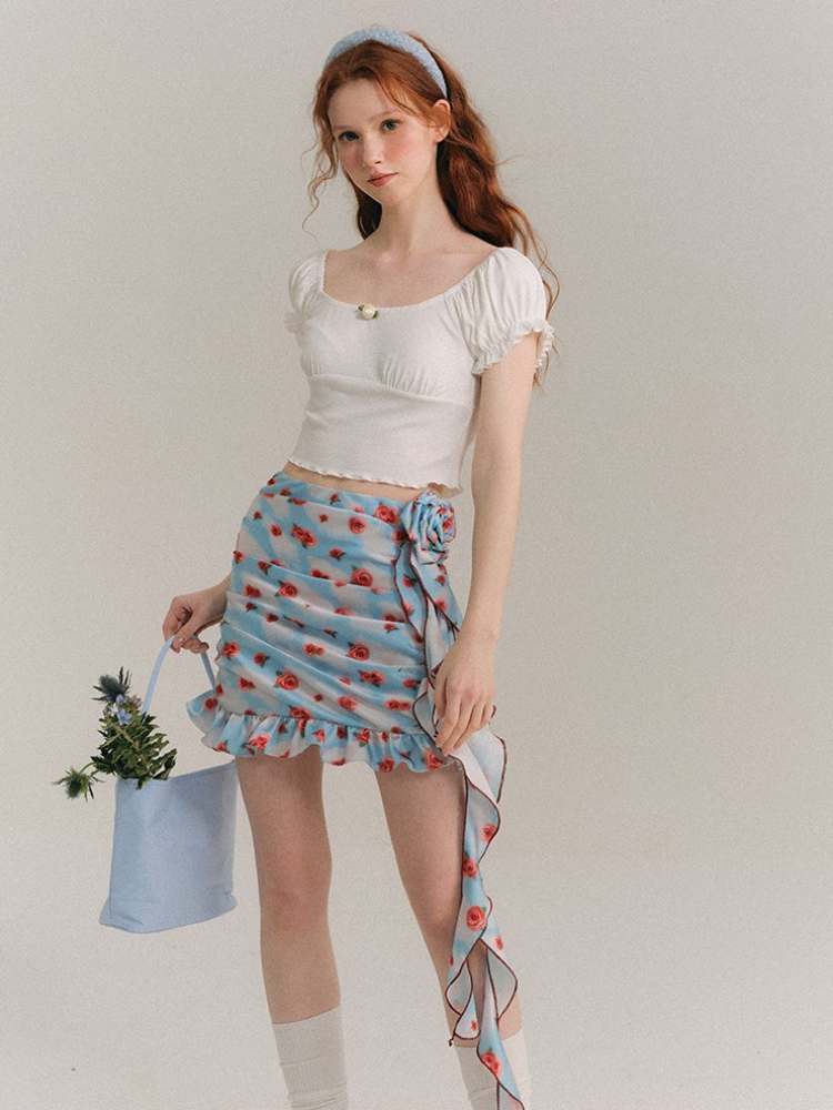 Rose Corsage Puff Sleeves Ballet T-Shirt【s0000007380】