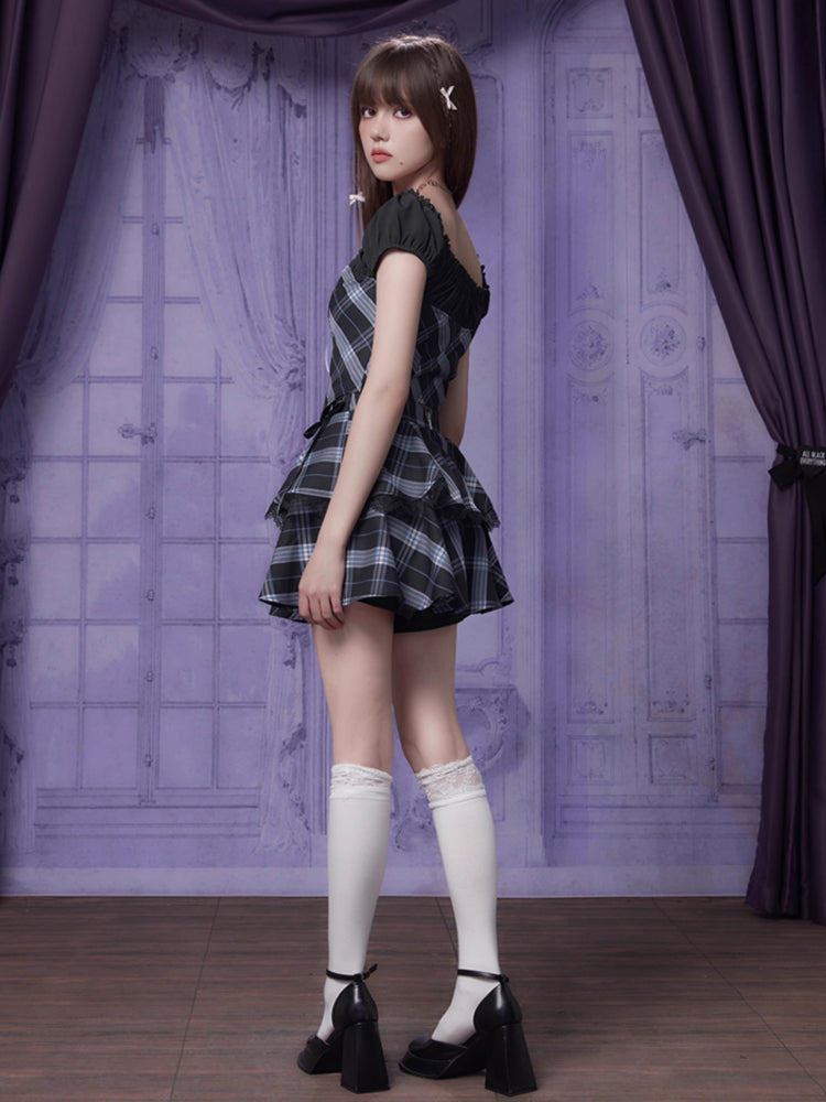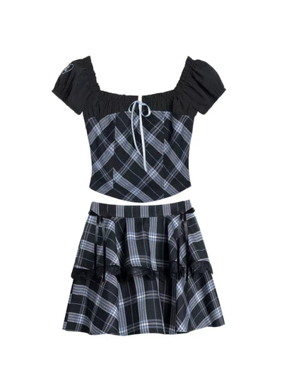College style puff sleeve shirt set【s0000007397】
