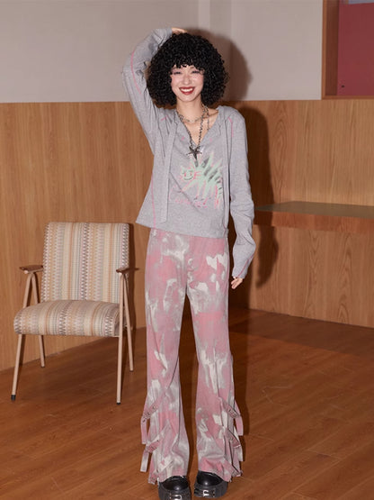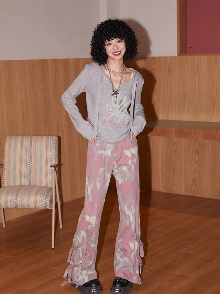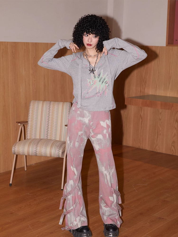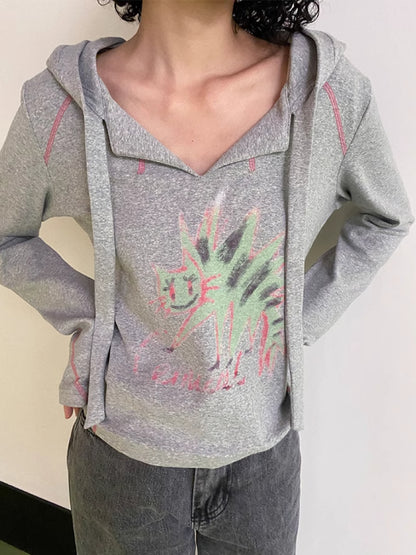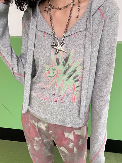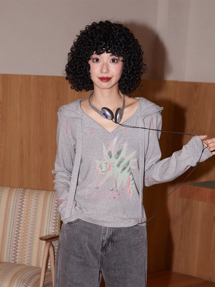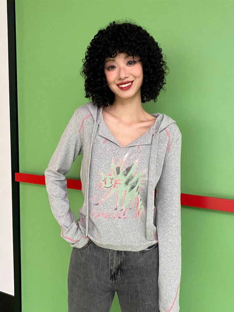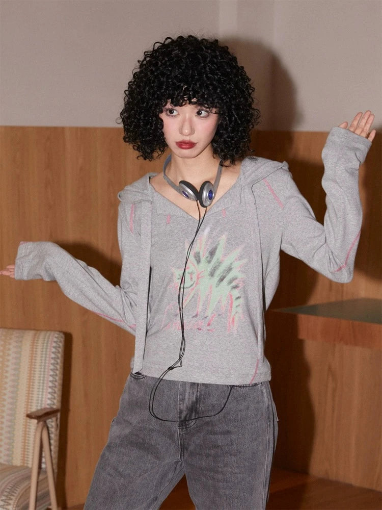Hooded printed loose long sleeve T-shirt【s0000007409】