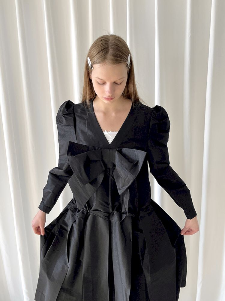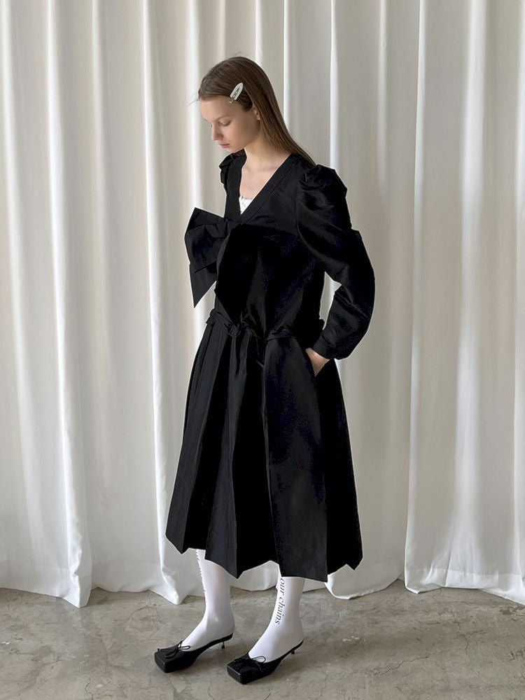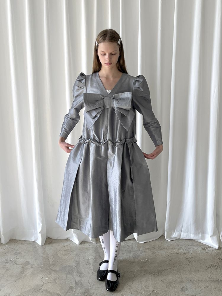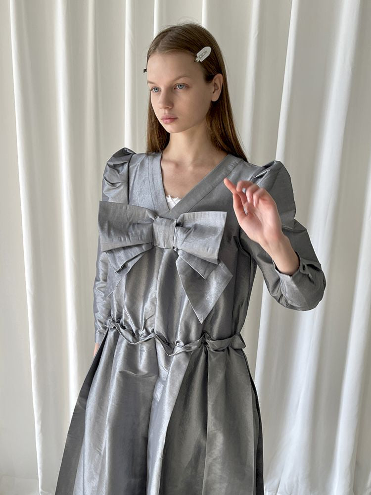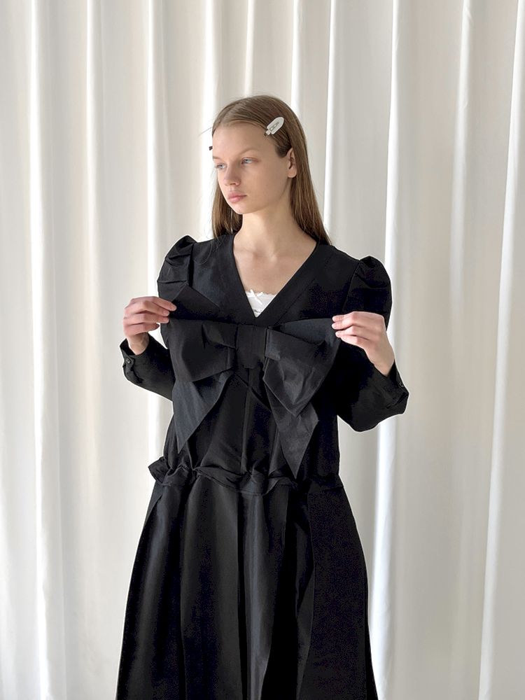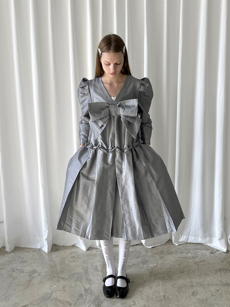 Big Bow Bubble Sleeve Dress【s0000007449】