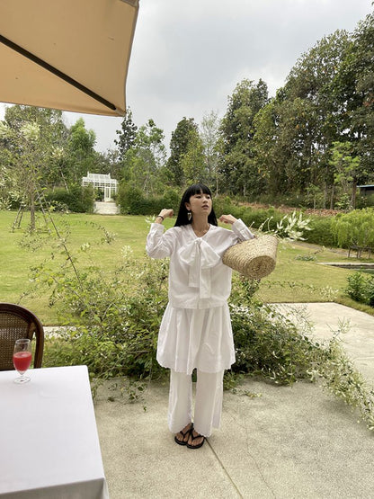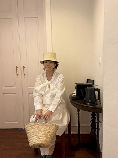 Big Bow Long Sleeve Cotton Shirt【s0000007452】