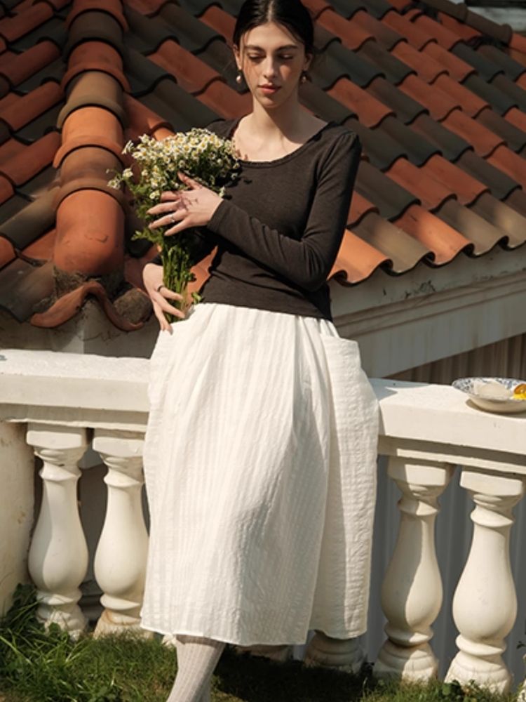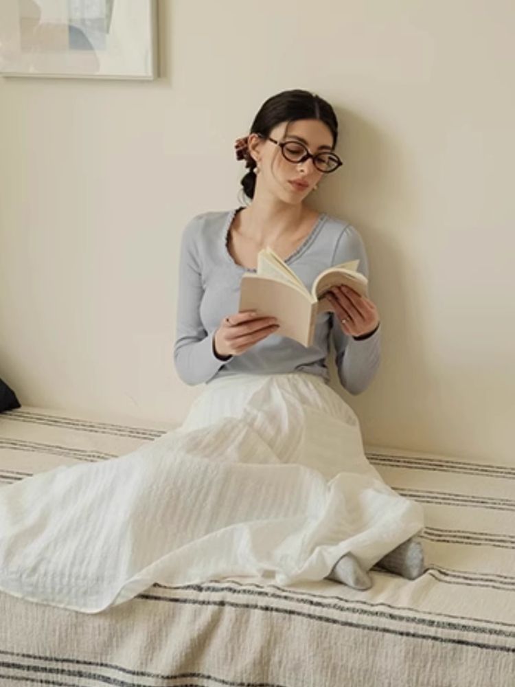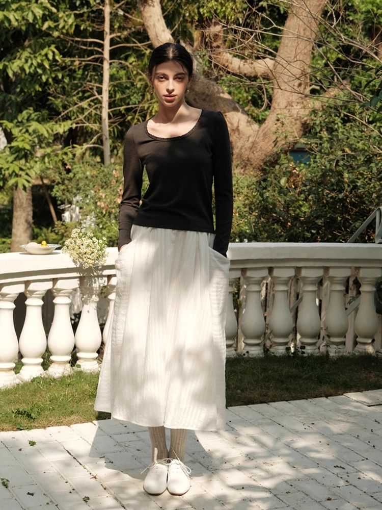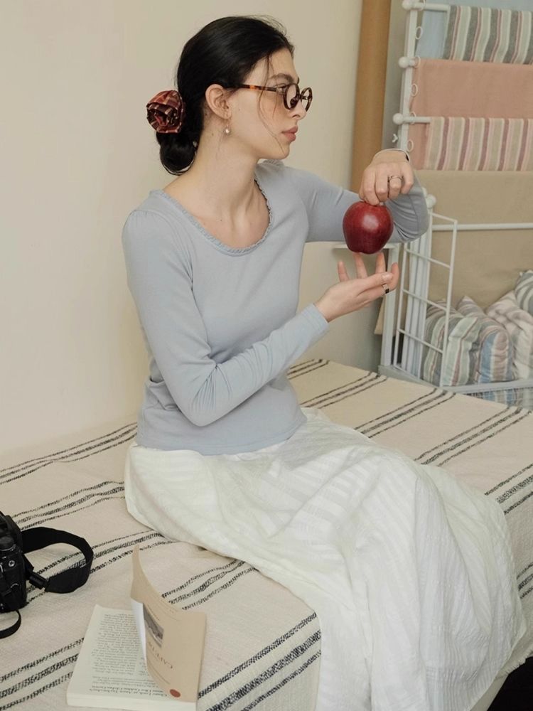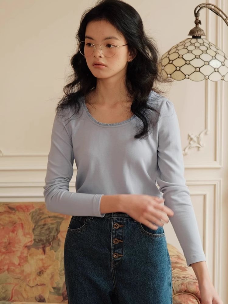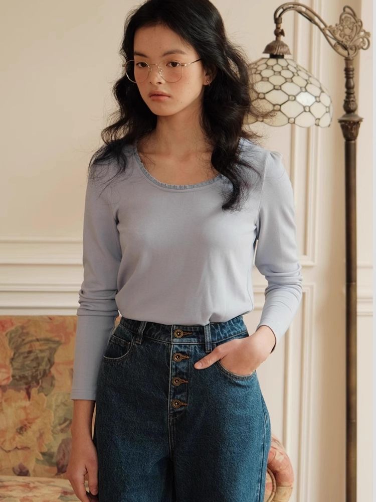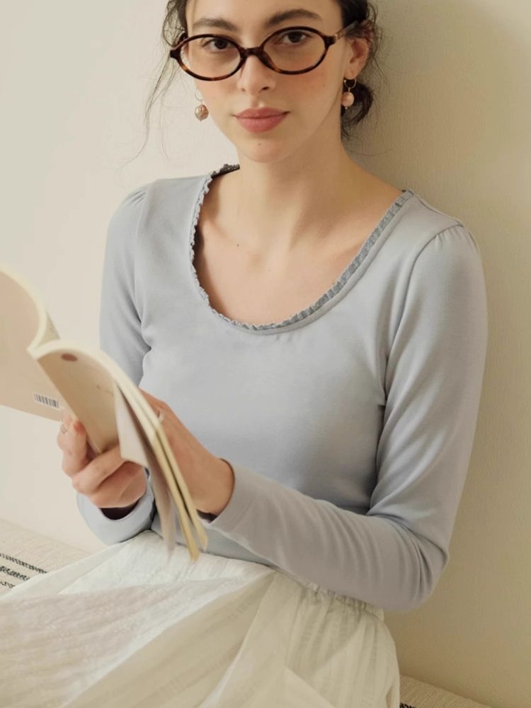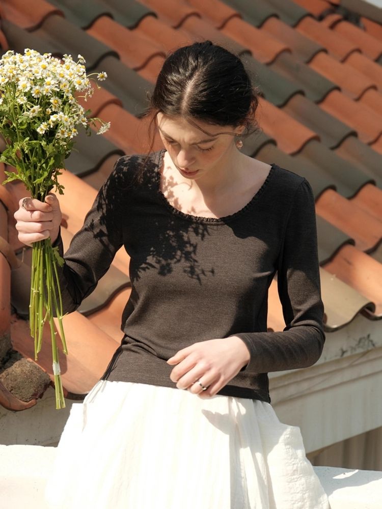 Big U Neck Lace Long Sleeve Top【s0000007495】