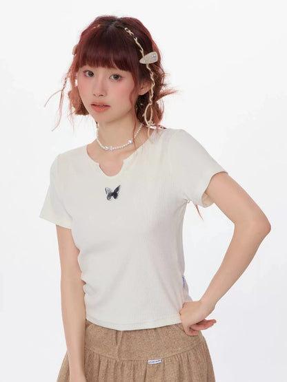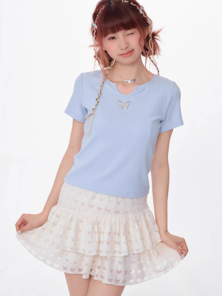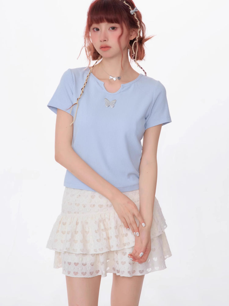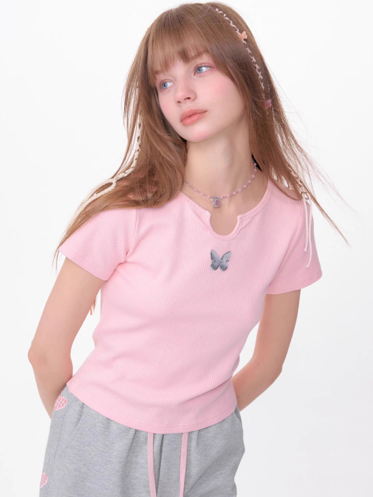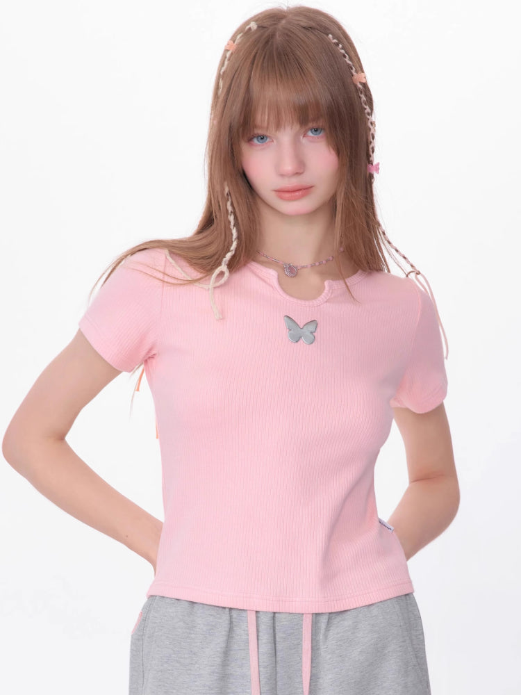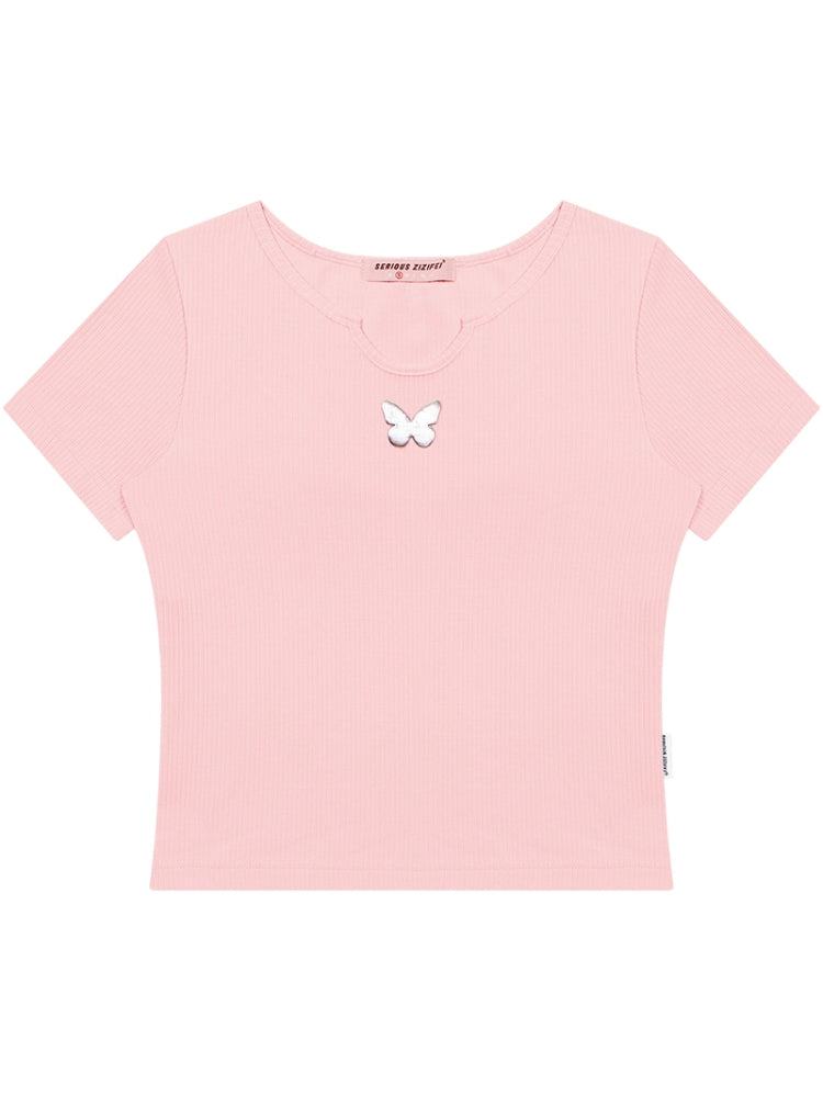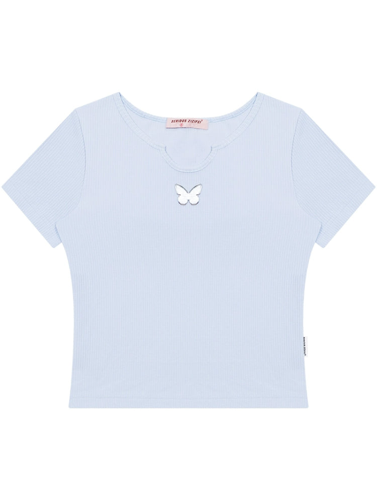 U-neck butterfly short sleeve T-shirt【s0000007536】