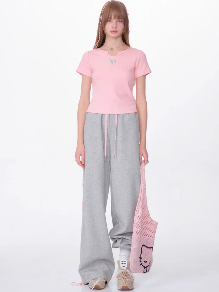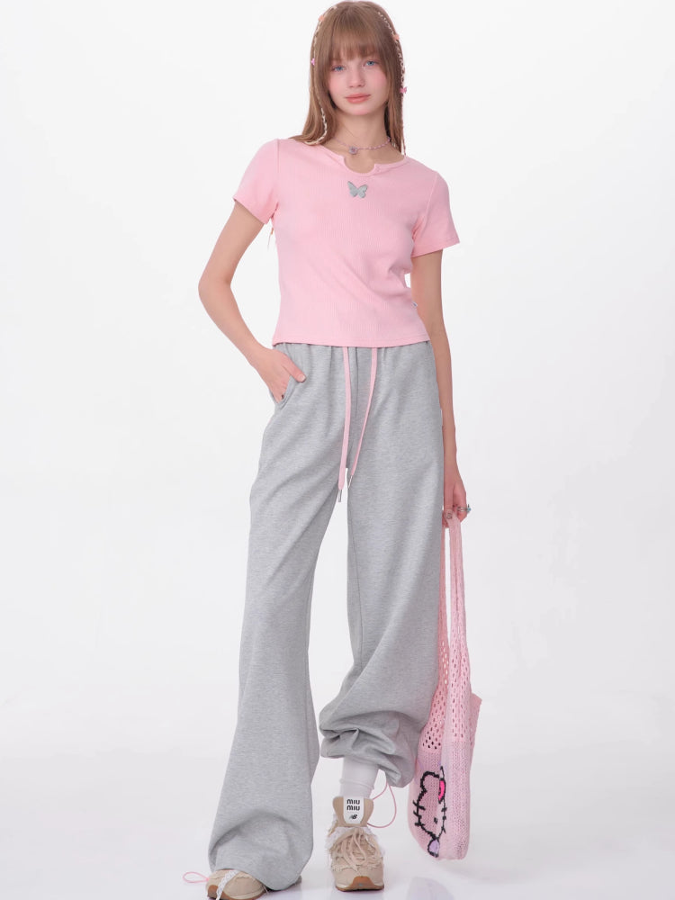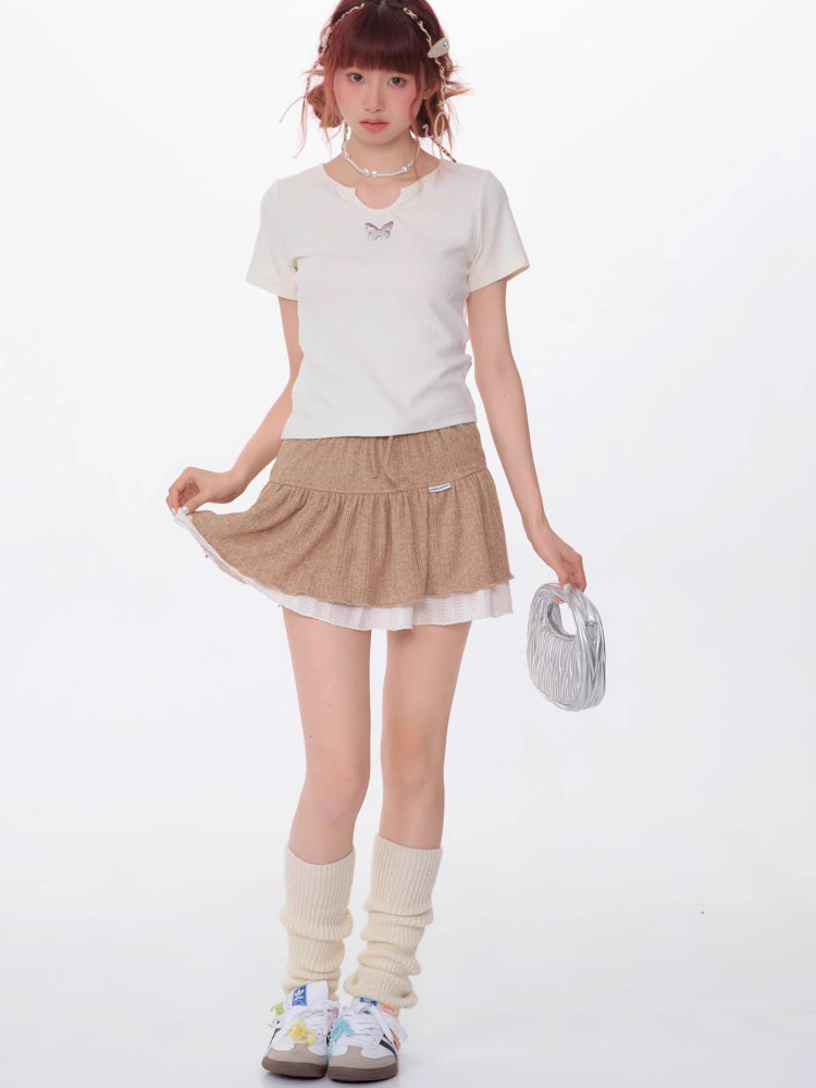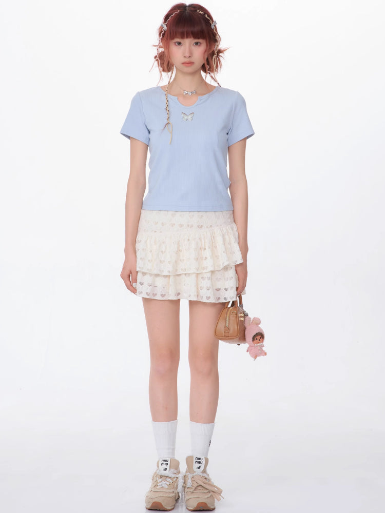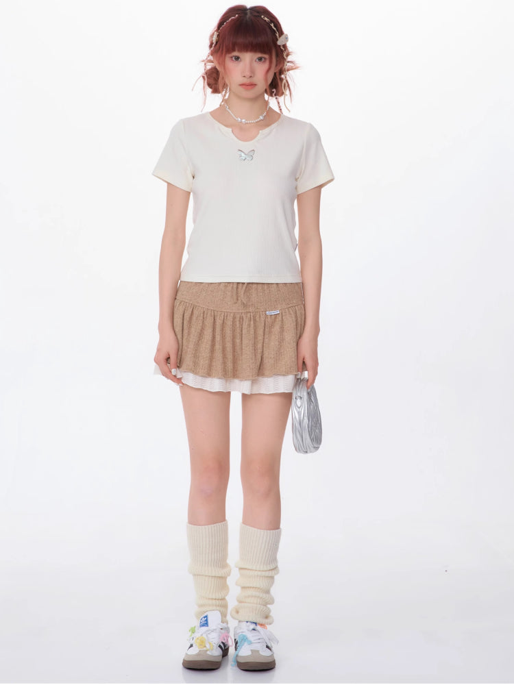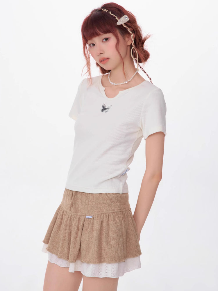 U-neck butterfly short sleeve T-shirt【s0000007536】