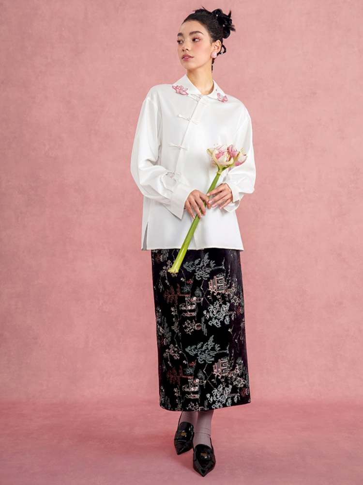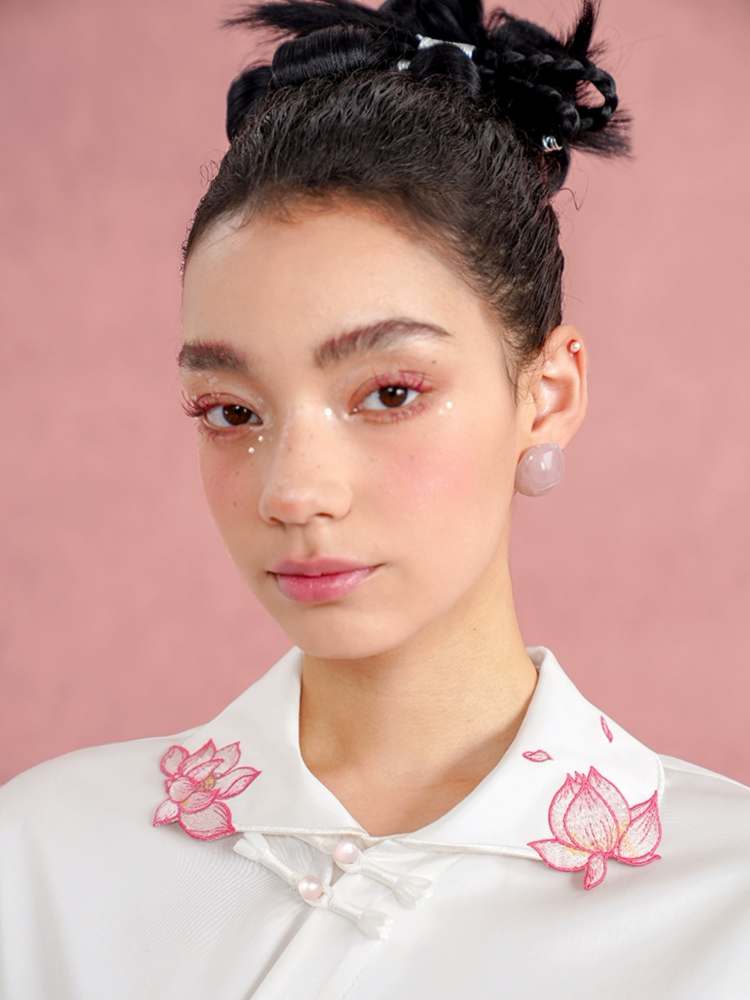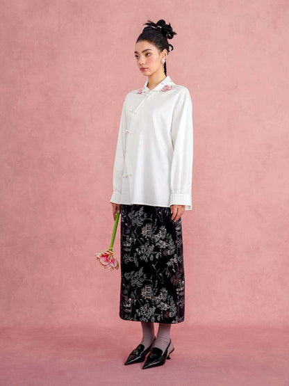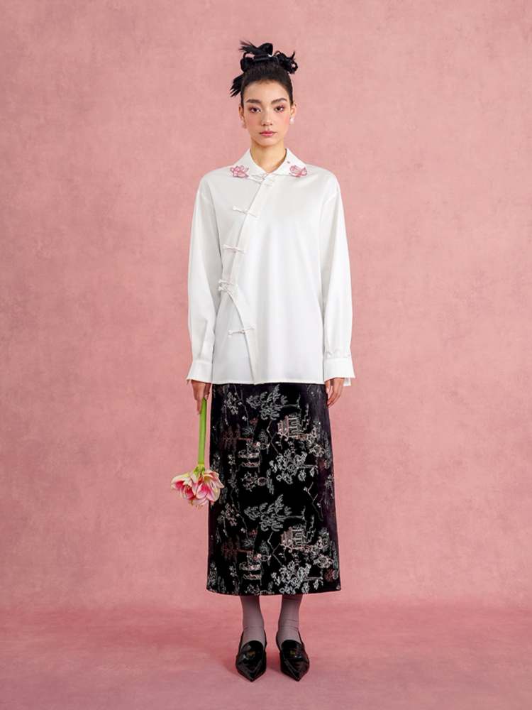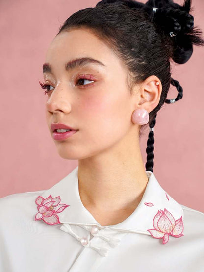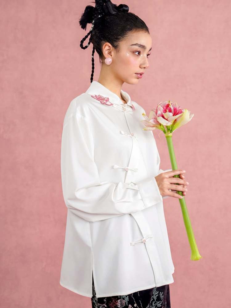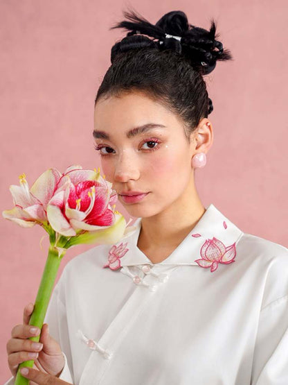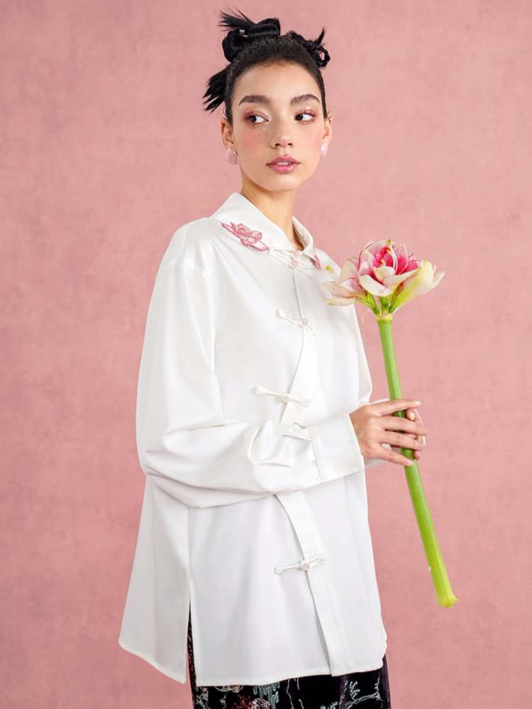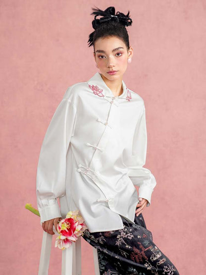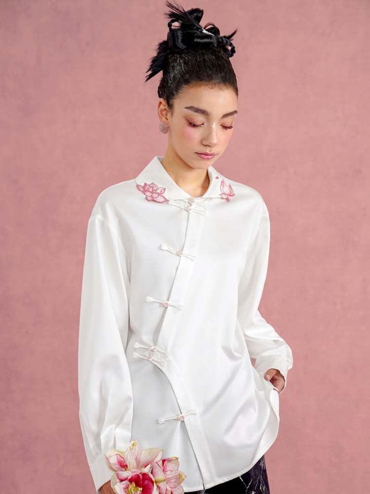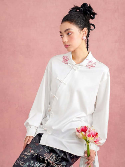 Lotus Flower Embroidery Chinese Blouse【s0000007571】