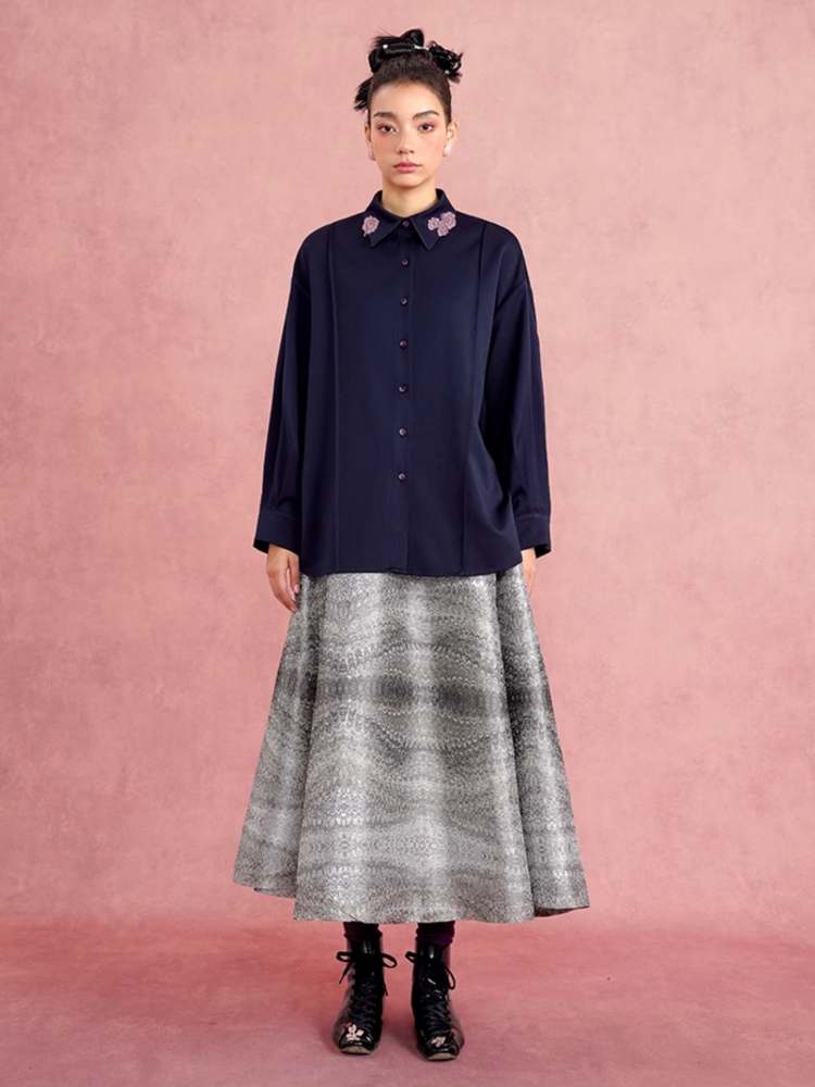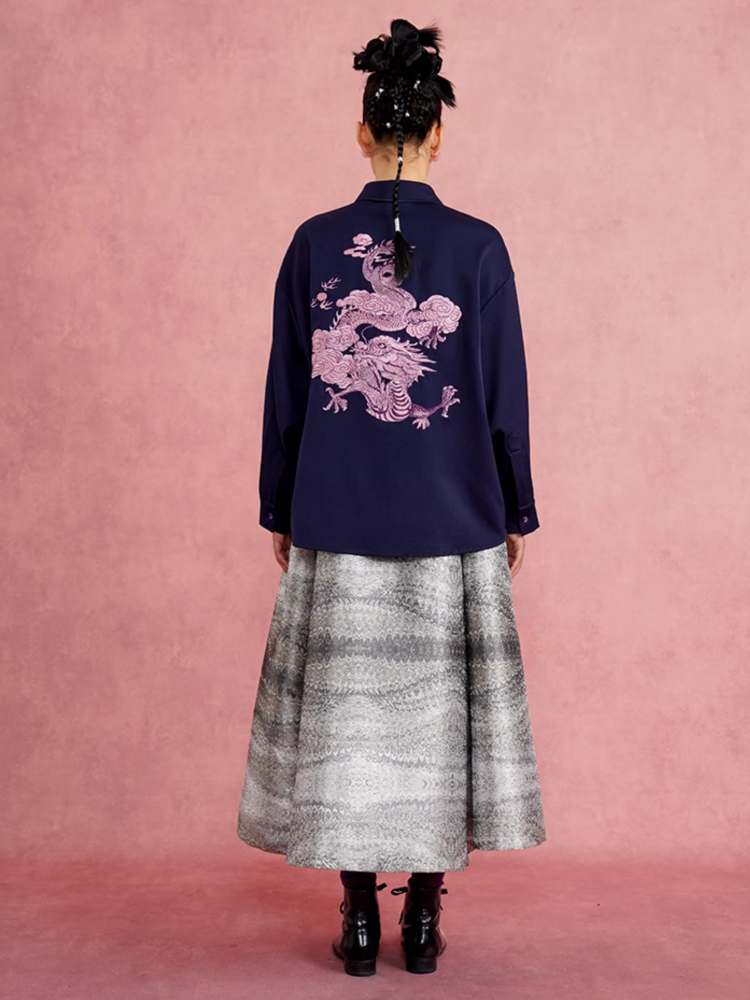 Dragon Cloud & Flower Embroidery Blouse【s0000007572】